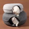 Nido de gato de fieltro, túnel tipo dona, túnel para gatos, túnel para gatos, neumático, semicerrado, extraíble, nido redondo y cálido para gatos.