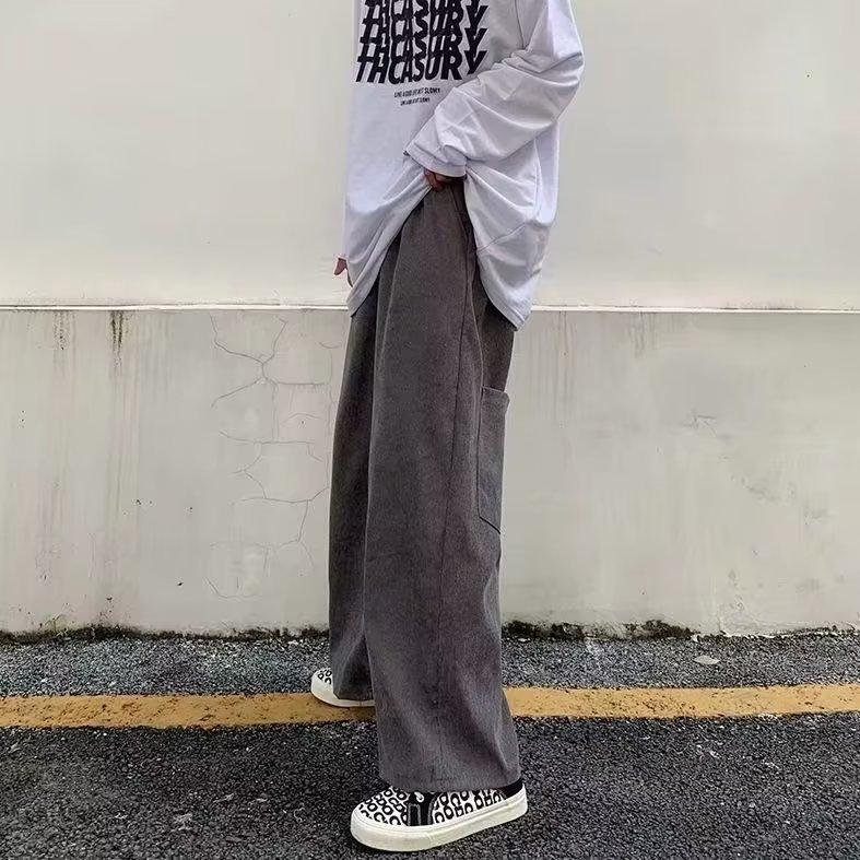 Pantalones Rectos de Color Sólido para Hombre Verano Marca de Moda Sueltos Colgantes con Cordón Casuales Deportivos