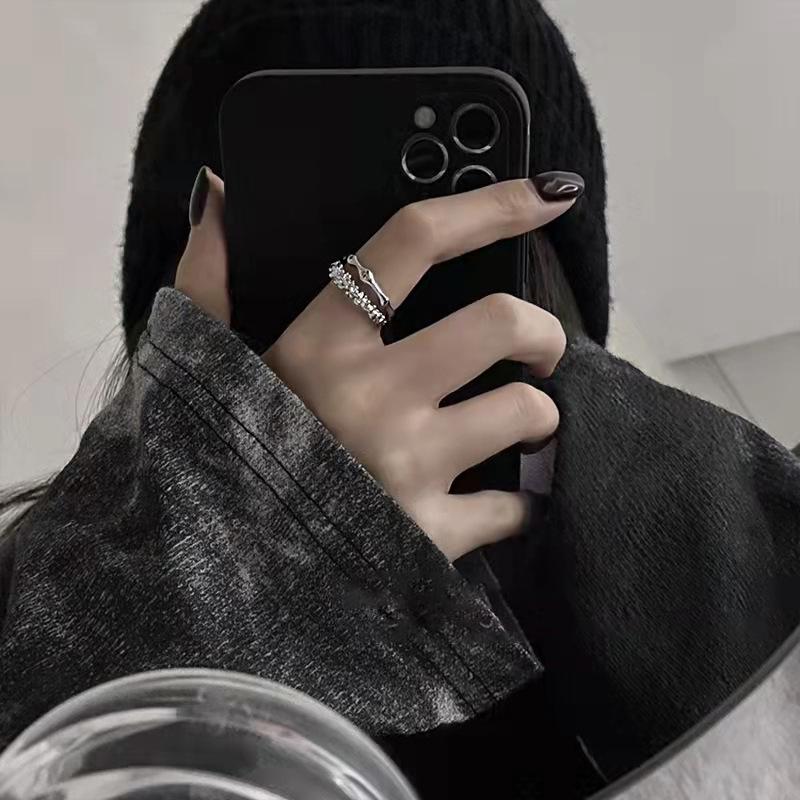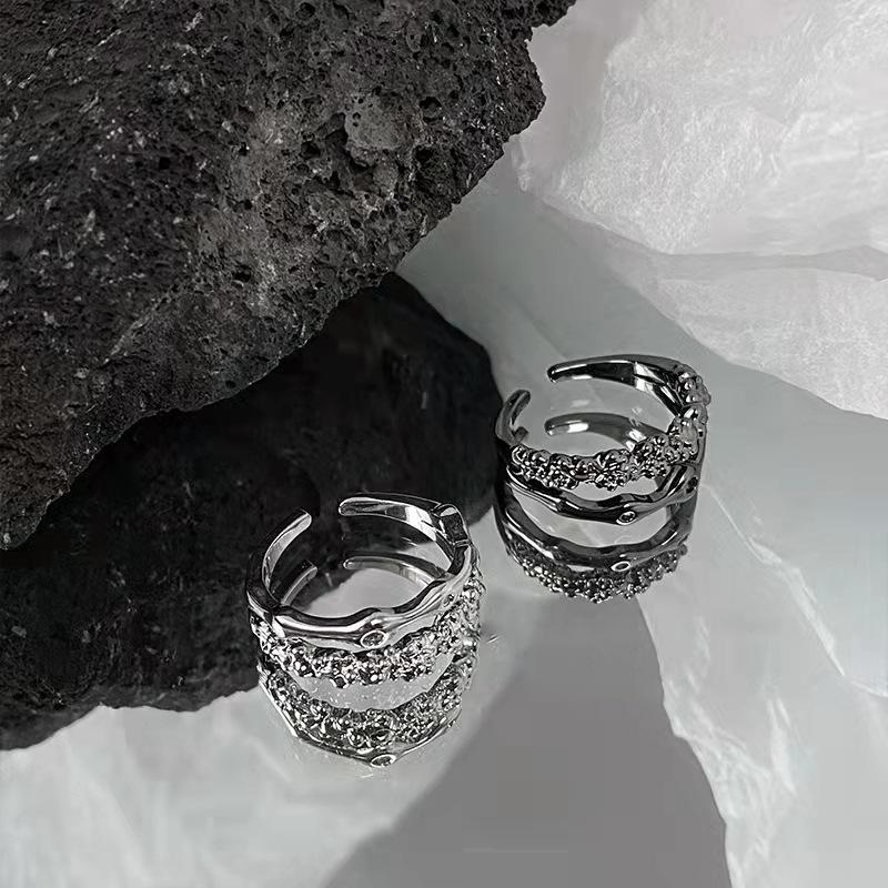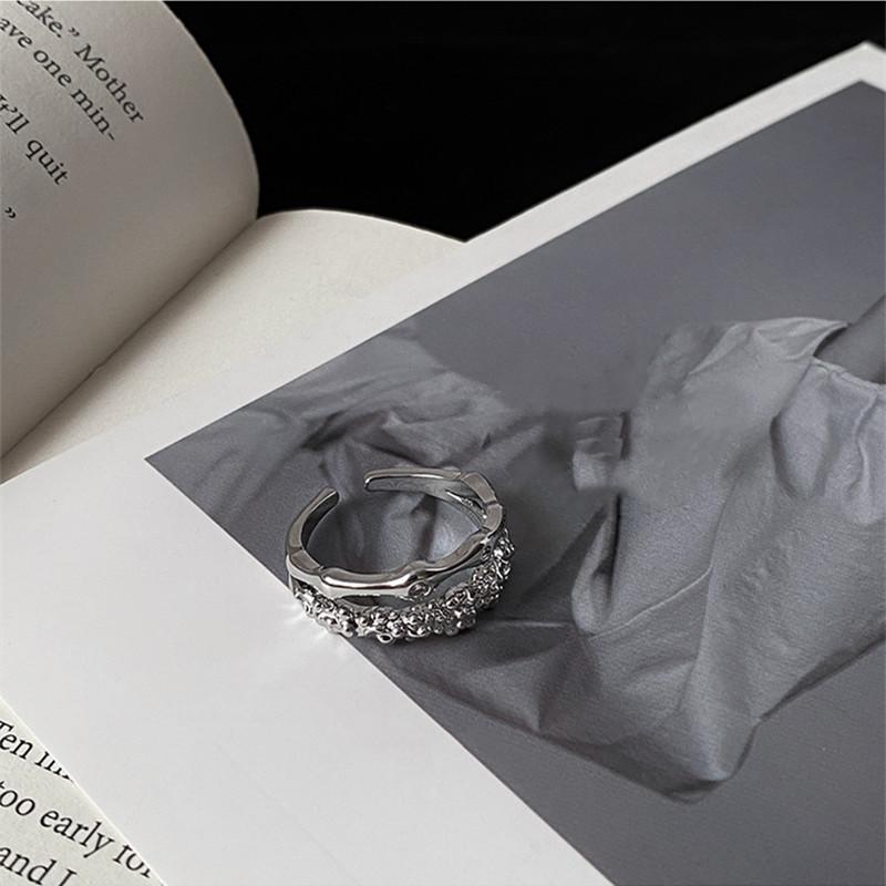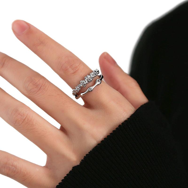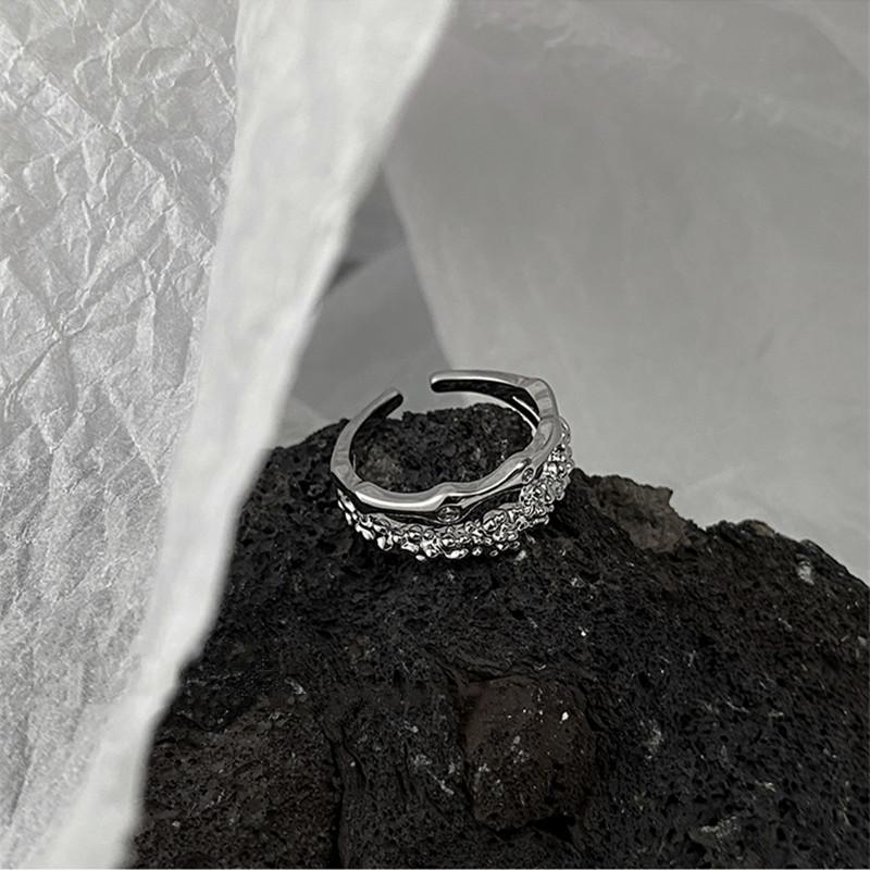 Compra Anillo de dedo índice de moda para mujer, diseño de nicho, doble capa de circonita de alta calidad, estilo frío, textura irregular, moderno y genial. al por mayor en Joom.pro