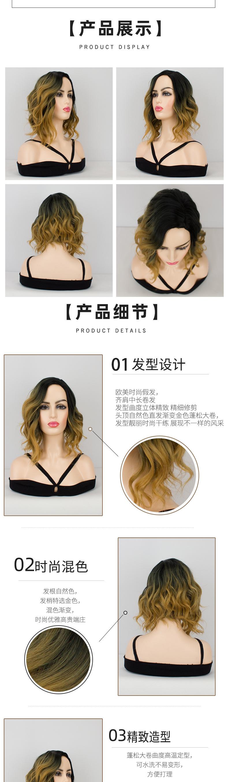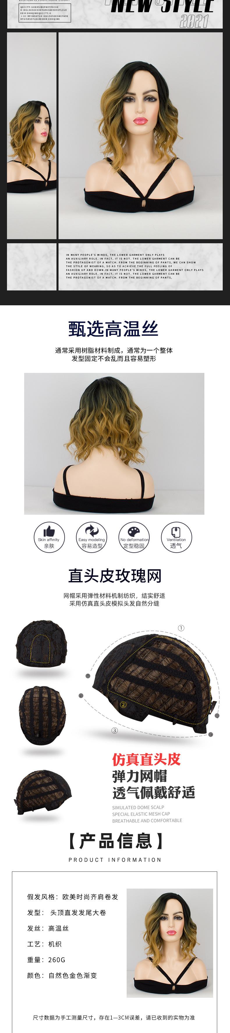Peluca de Moda Europea y Americana Cabello Mediano Largo Ondulado Rizado Esponjoso Natural Elegante Largo Hasta el Hombro Cabello Corto Rizado Peluca Degradada
