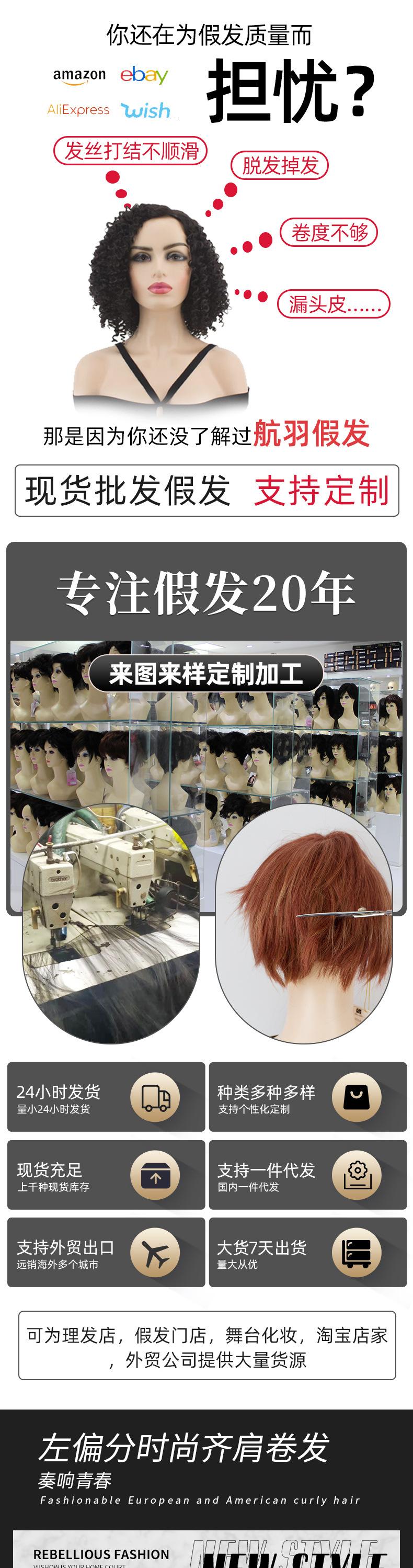 Fashionable shoulder-length fluffy curly hair left partial oblique curly bangs