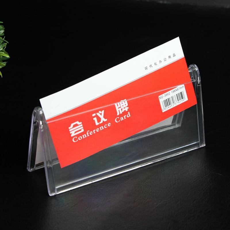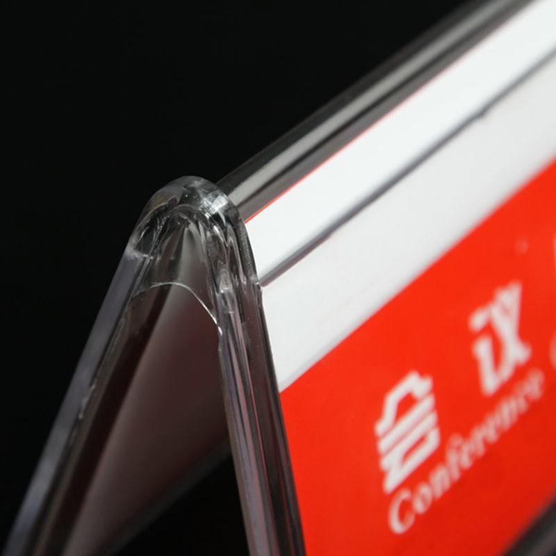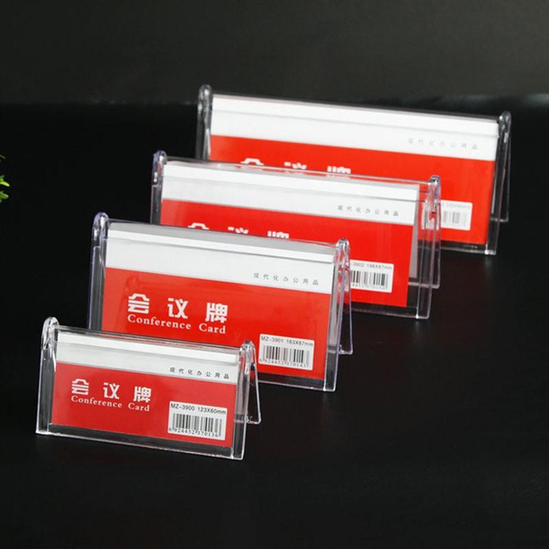 Tarjeta de conferencia triangular, tarjeta de mesa transparente, tarjeta de mesa de plástico, tarjeta de asiento en forma de V, nombre de marca famosa, tarjeta de visualización del nombre del invitado