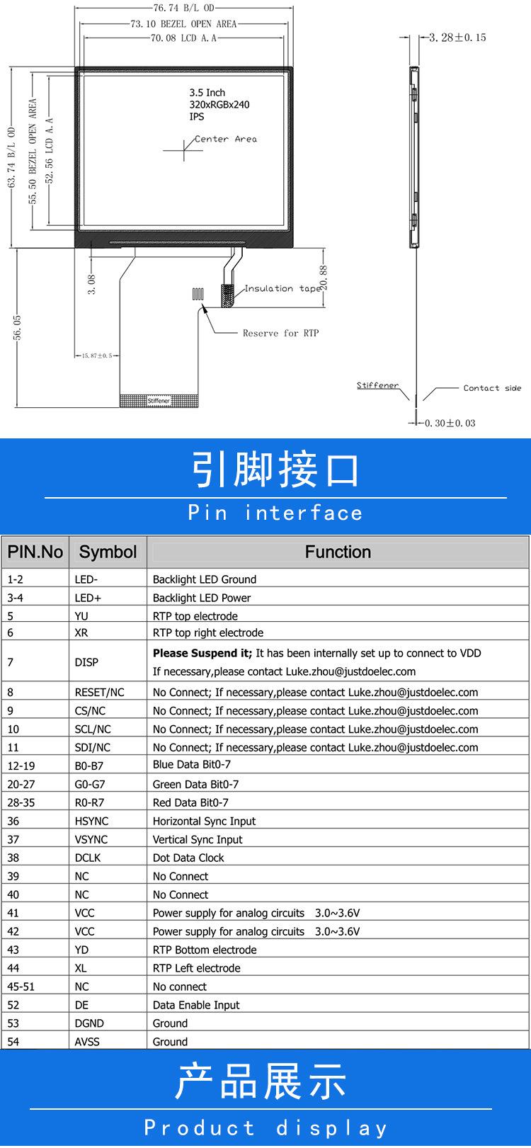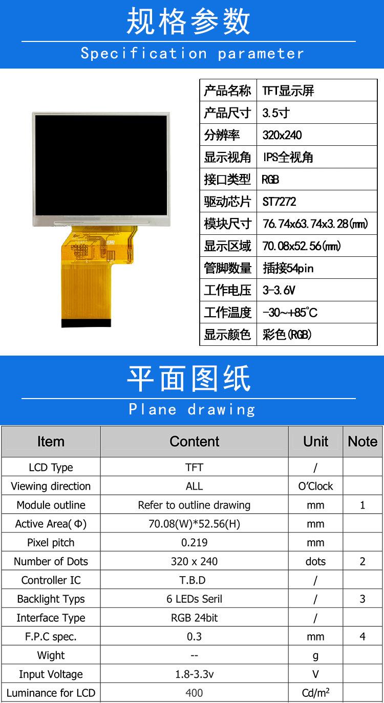 Pantalla a Color de 3.5 Pulgadas 320*240 Plug-In 54 Pines Ángulo de Visión Completo Tft Pantalla Lcd de Tamaño Pequeño Interfaz Rgb