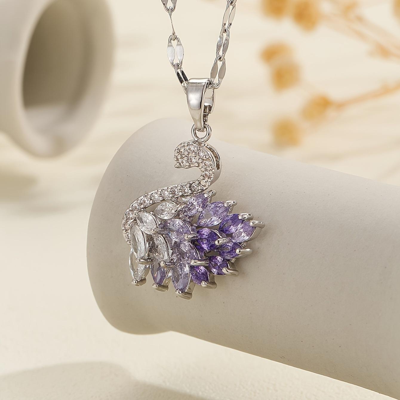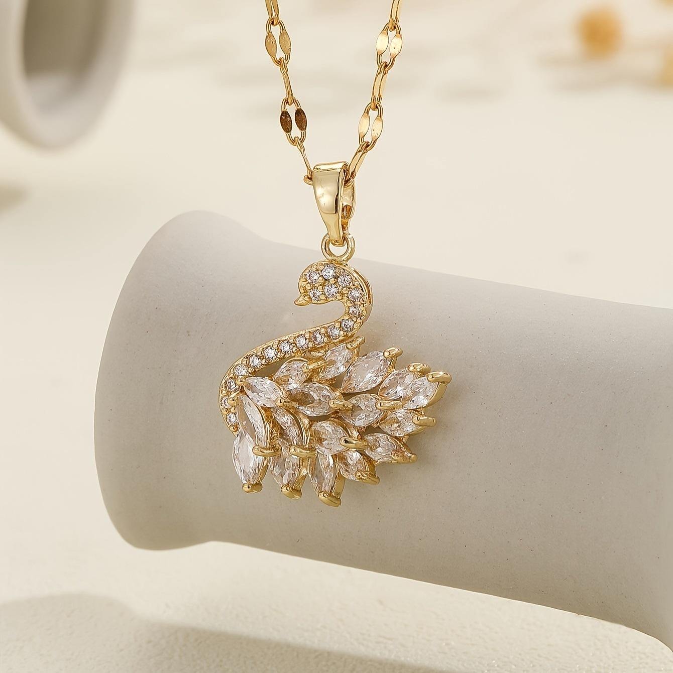 Collar con degradado de color transfronterizo para mujer, cadena de clavícula Mori de verano, collar con cisne y pendientes.