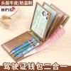 Cartera informal de piel auténtica para hombre, nueva, larga, multitarjeta, de gran capacidad, para carnet de conducir, ligera, de lujo