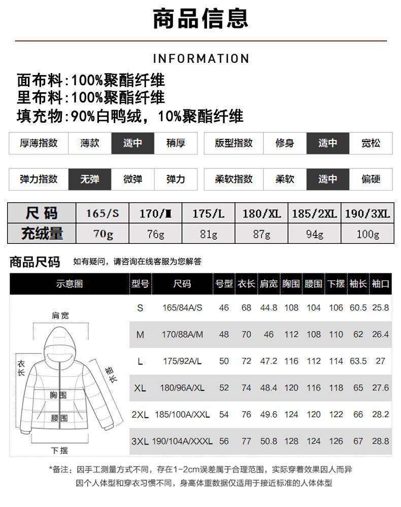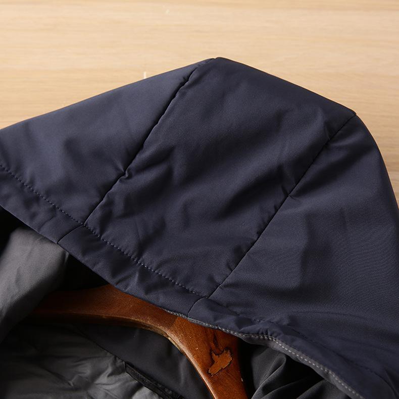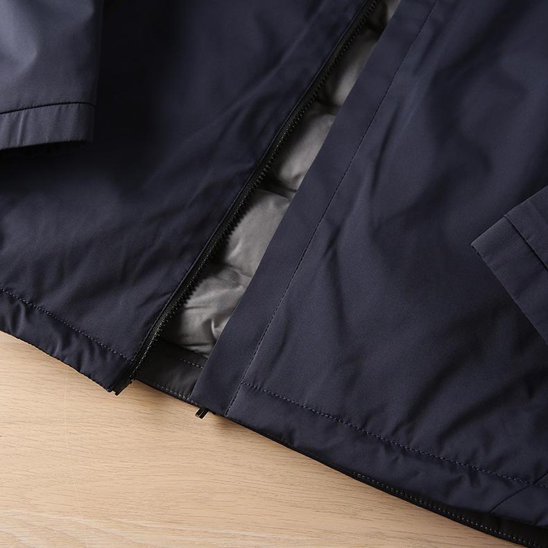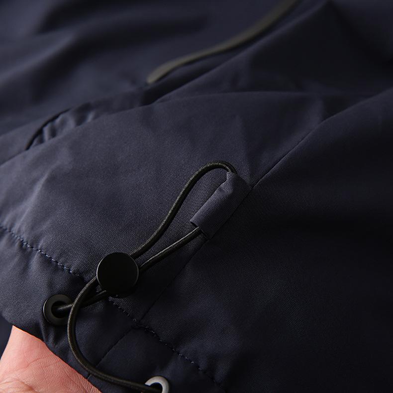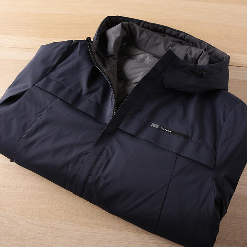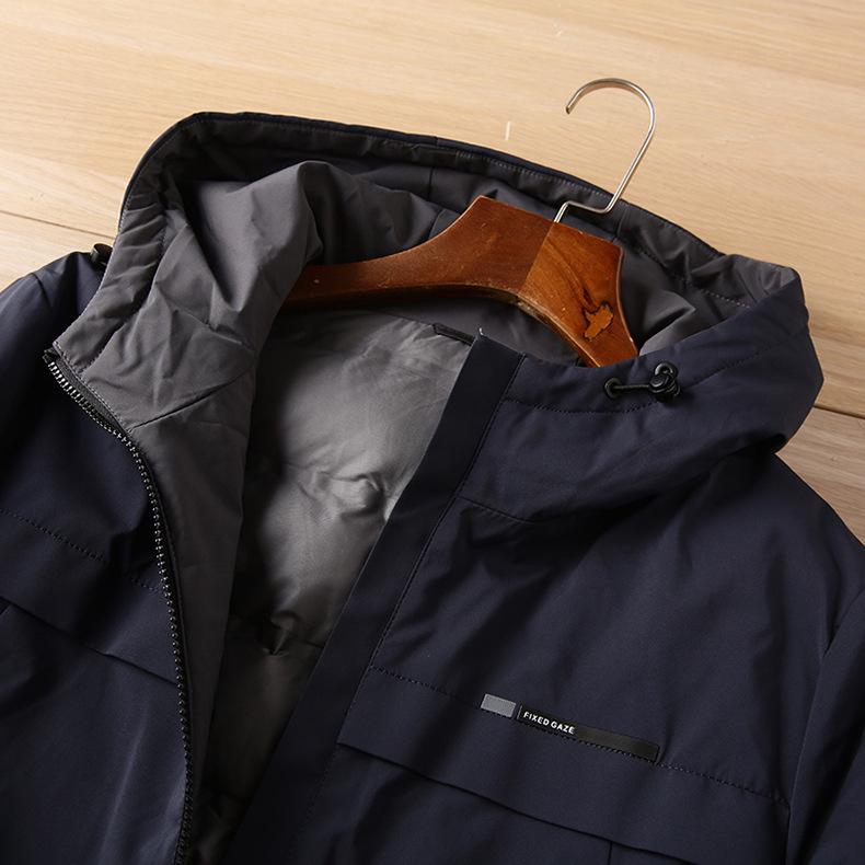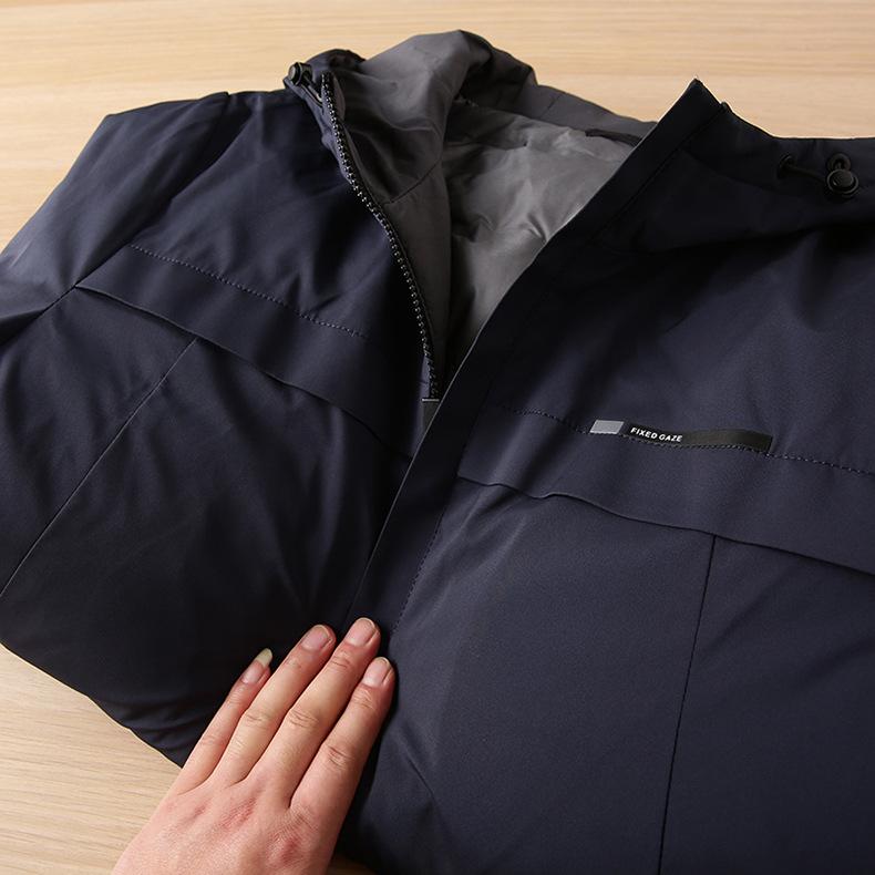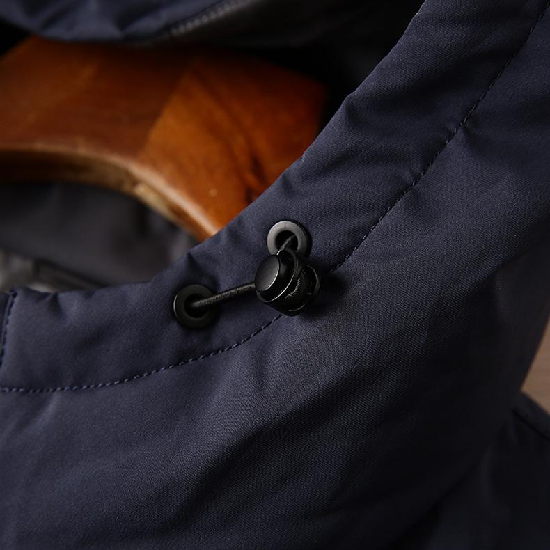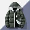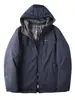 Chaqueta de plumón de tela de tres capas para hombre, de invierno, de color sólido, resistente al viento, cálida, con capucha y cordón ajustable, 4D092