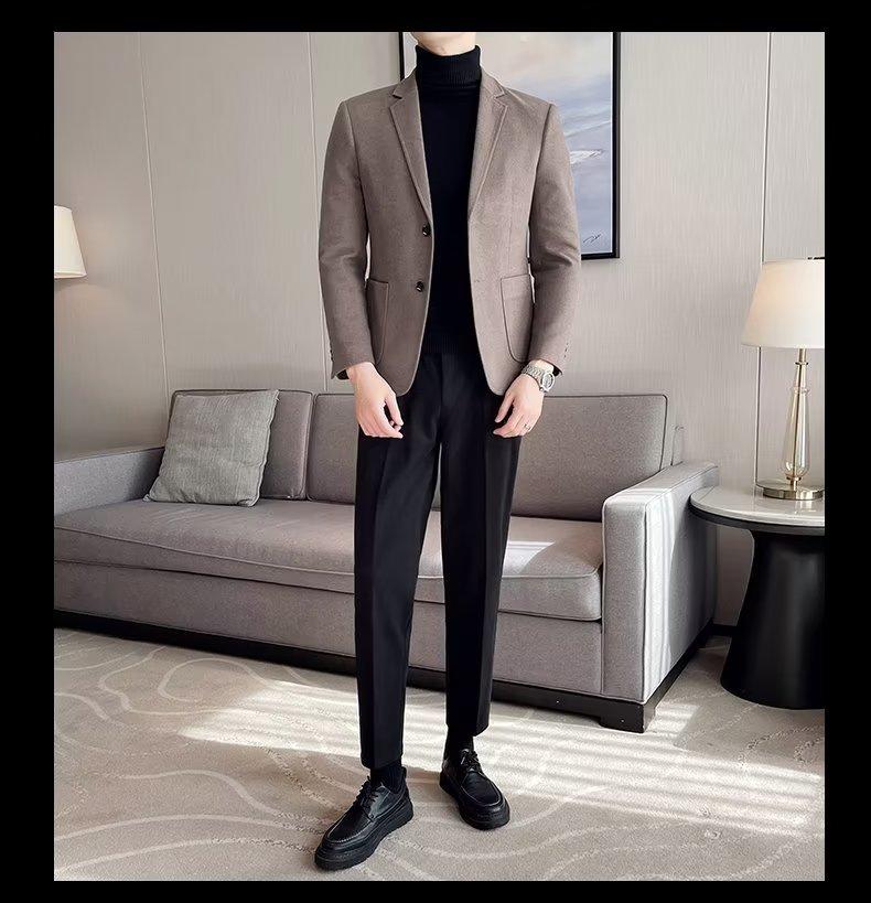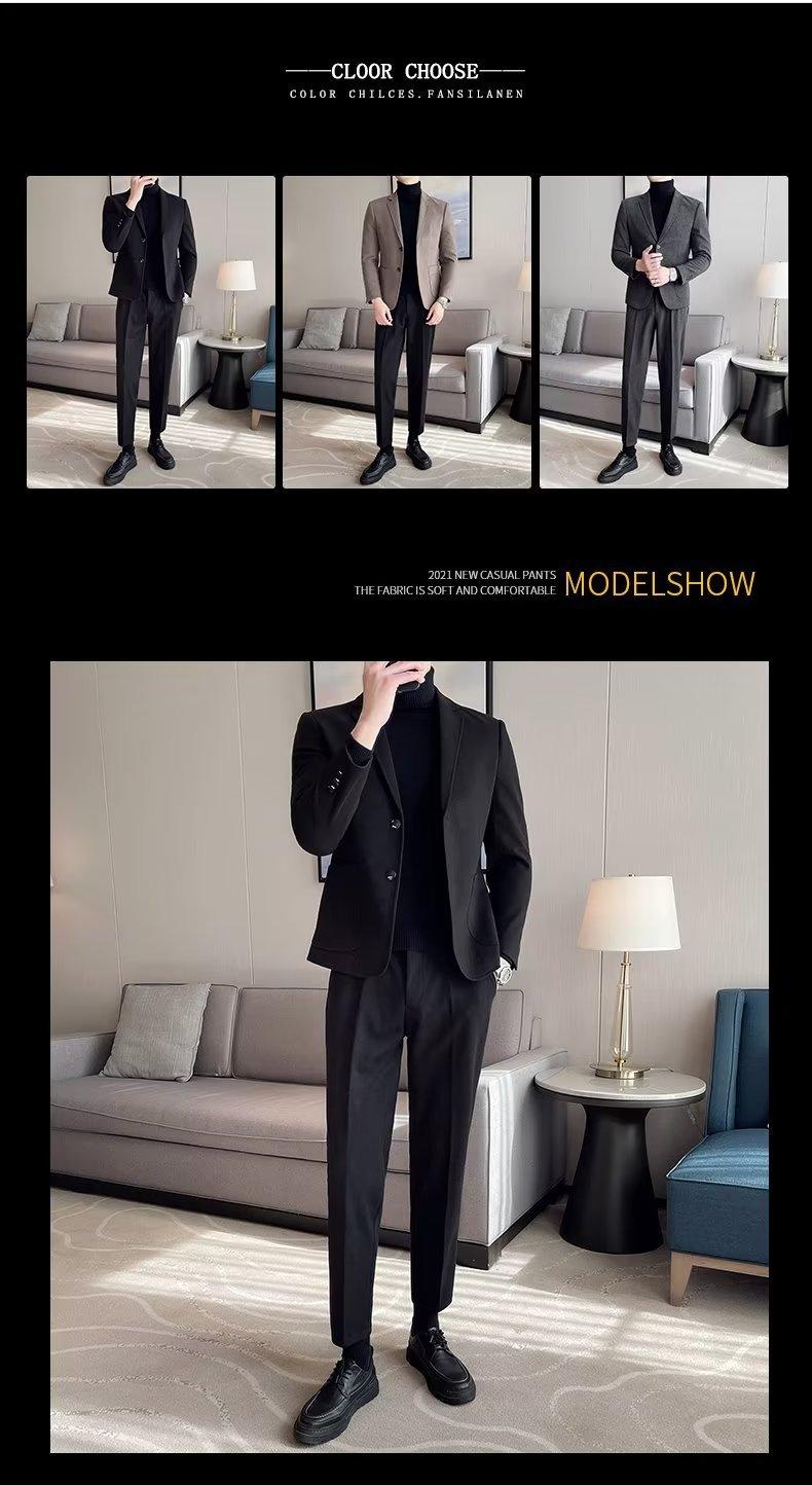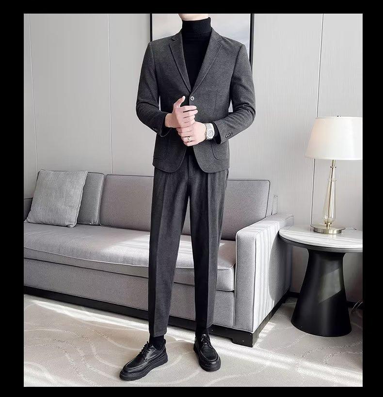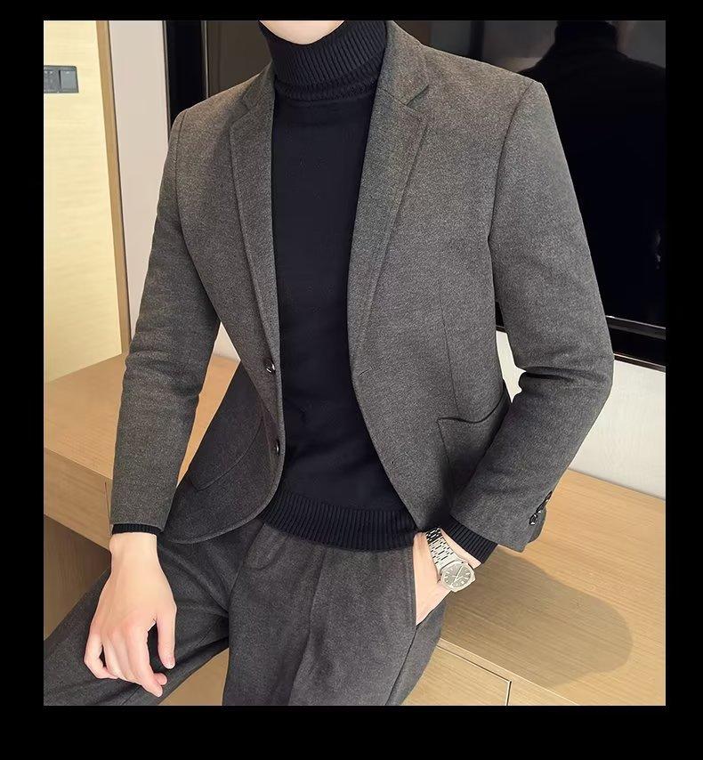 Traje de invierno nuevo con colgante suelto para hombre, estilo coreano, moderno, atractivo, informal, ligero, estilo maduro, traje pequeño, conjunto de tres piezas