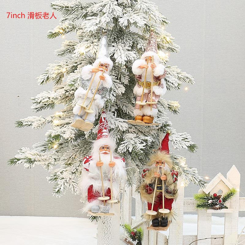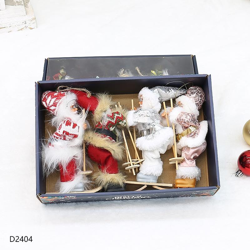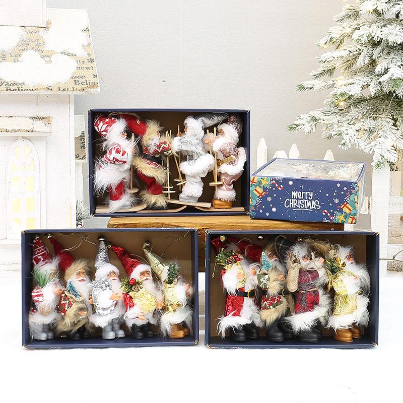 Decoraciones Navideñas Colgante para Árbol de Navidad Caja de Color Set de Papá Noel Pequeña Muñeca de Papá Noel Esquiando