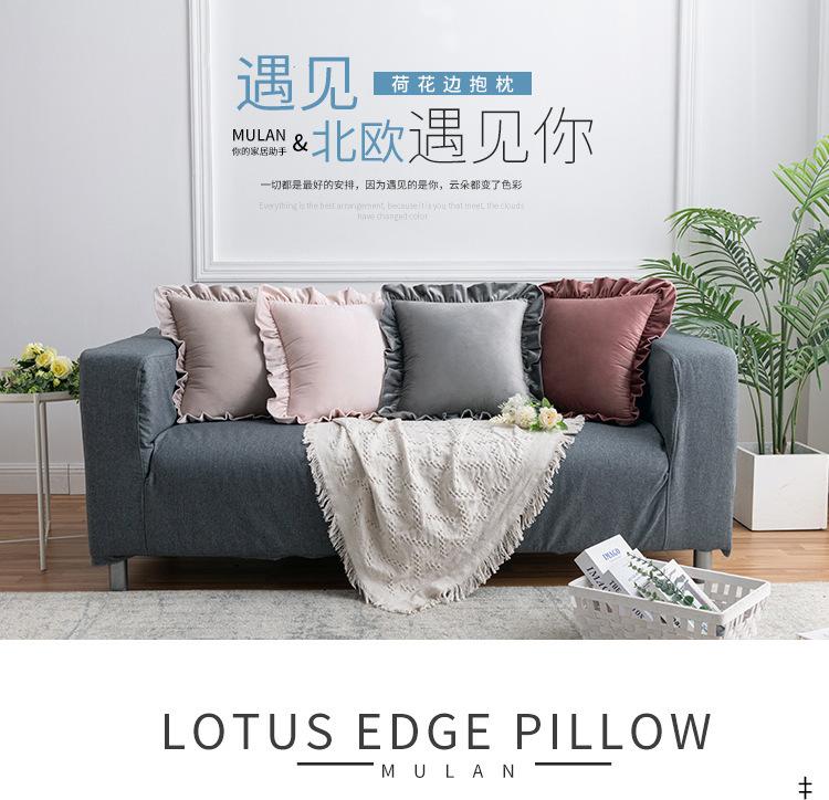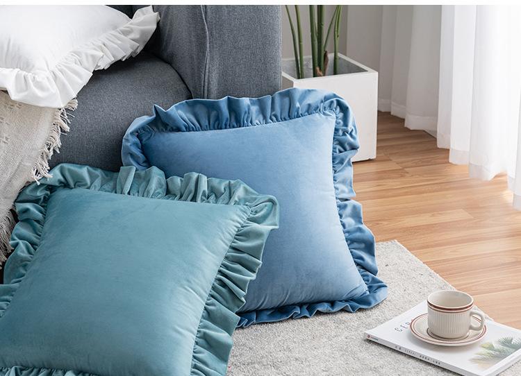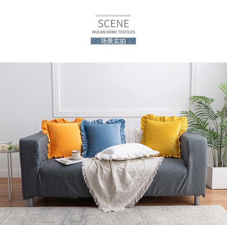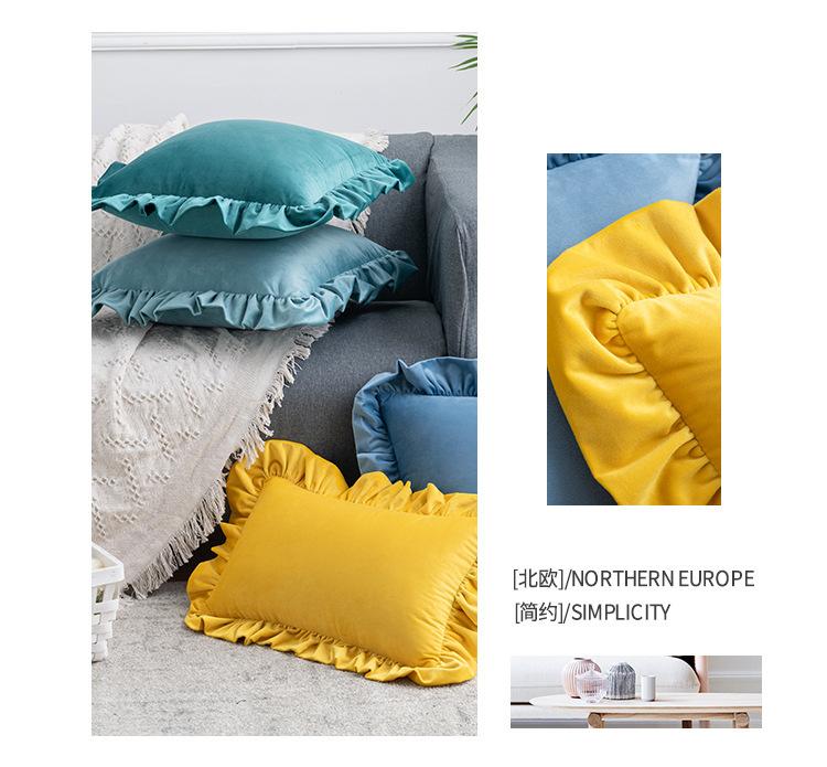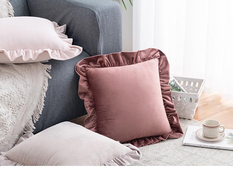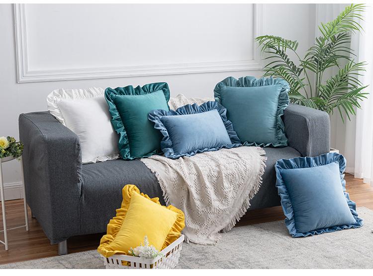 Funda de almohada de terciopelo sencilla de color sólido con volantes estilo ins decoración para el hogar sofá mesita de noche almohada lumbar almohada para mirador