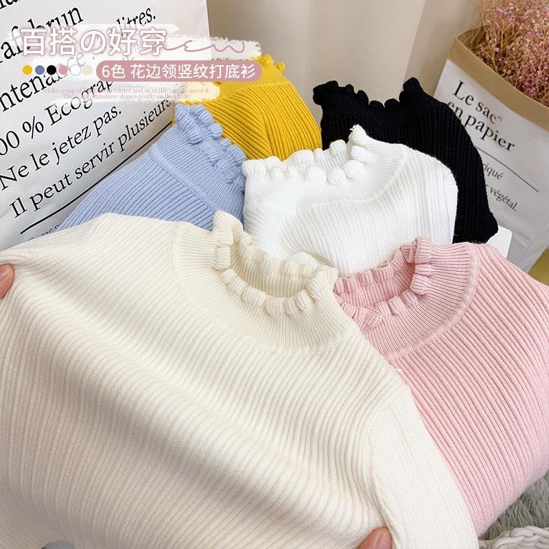 Suéter para niña estilo occidental, otoño e invierno 2024, con borde de orejas de madera, prendas de punto para niña, ropa interior para niña