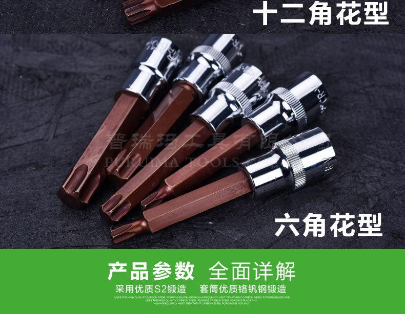 Alargar 1/2 interior llave de carraca de 12 puntas con forma de flor serie T serie H serie M manguito de destornillador de lote a presión 12.5