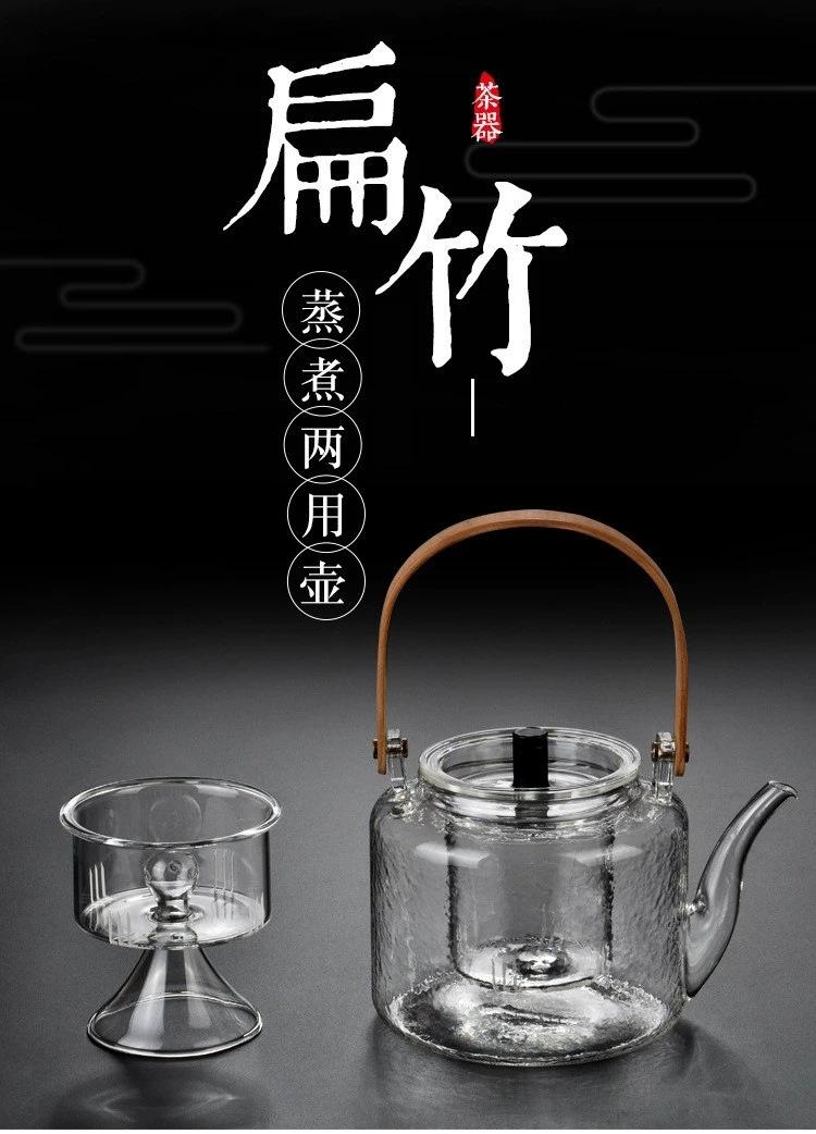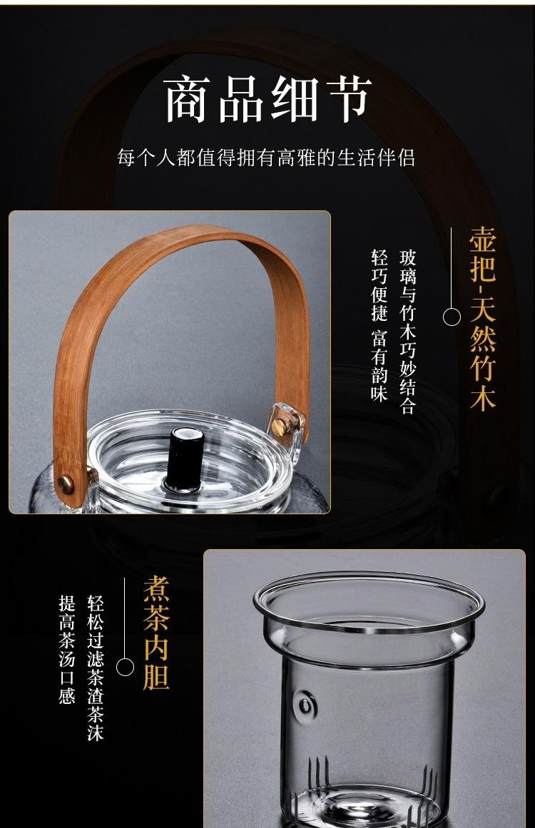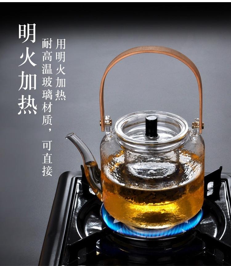 Tetera de vidrio al por mayor mango de bambú mango mango tetera de vidrio tetera tetera de burbujas olla de cerámica eléctrica calentamiento a fuego abierto