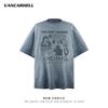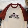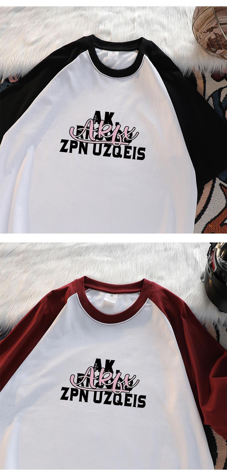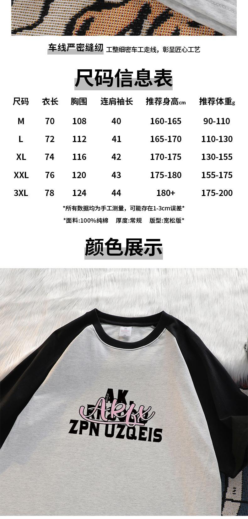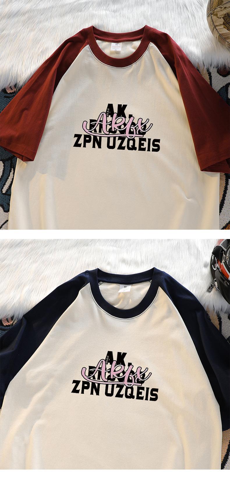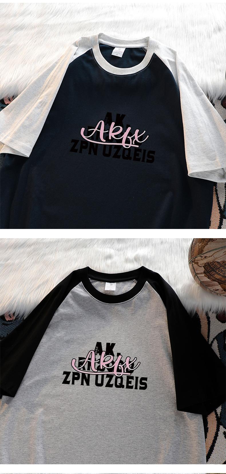Camiseta de manga raglán lavada con color de contraste para hombre, nueva camiseta holgada de verano estilo americano, camiseta de manga corta de marca de moda retro para parejas Q