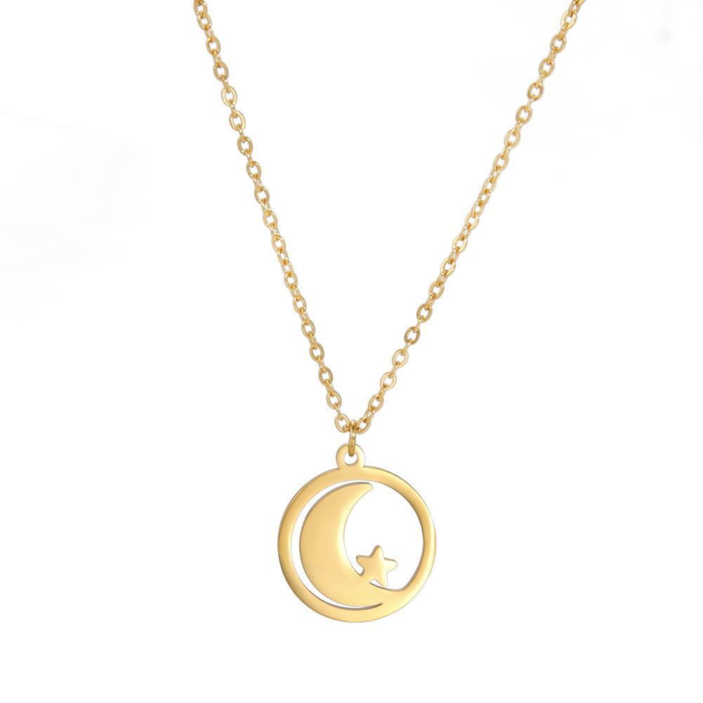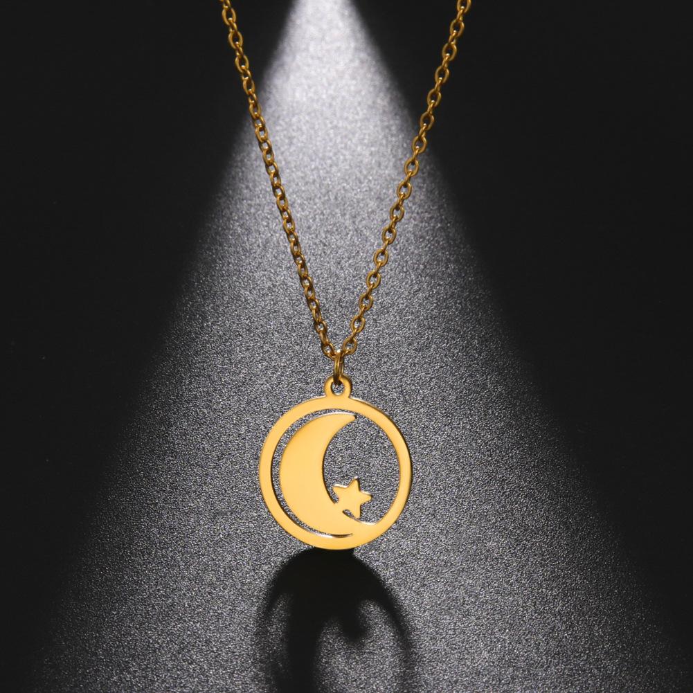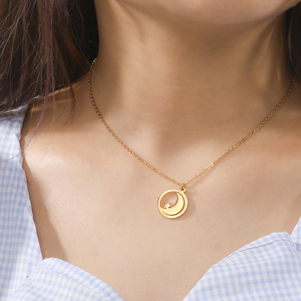 Collar con colgante de estrella y luna de acero inoxidable 304, estilo coreano, popular en Europa y América, con personalidad y tendencia de acero de titanio.