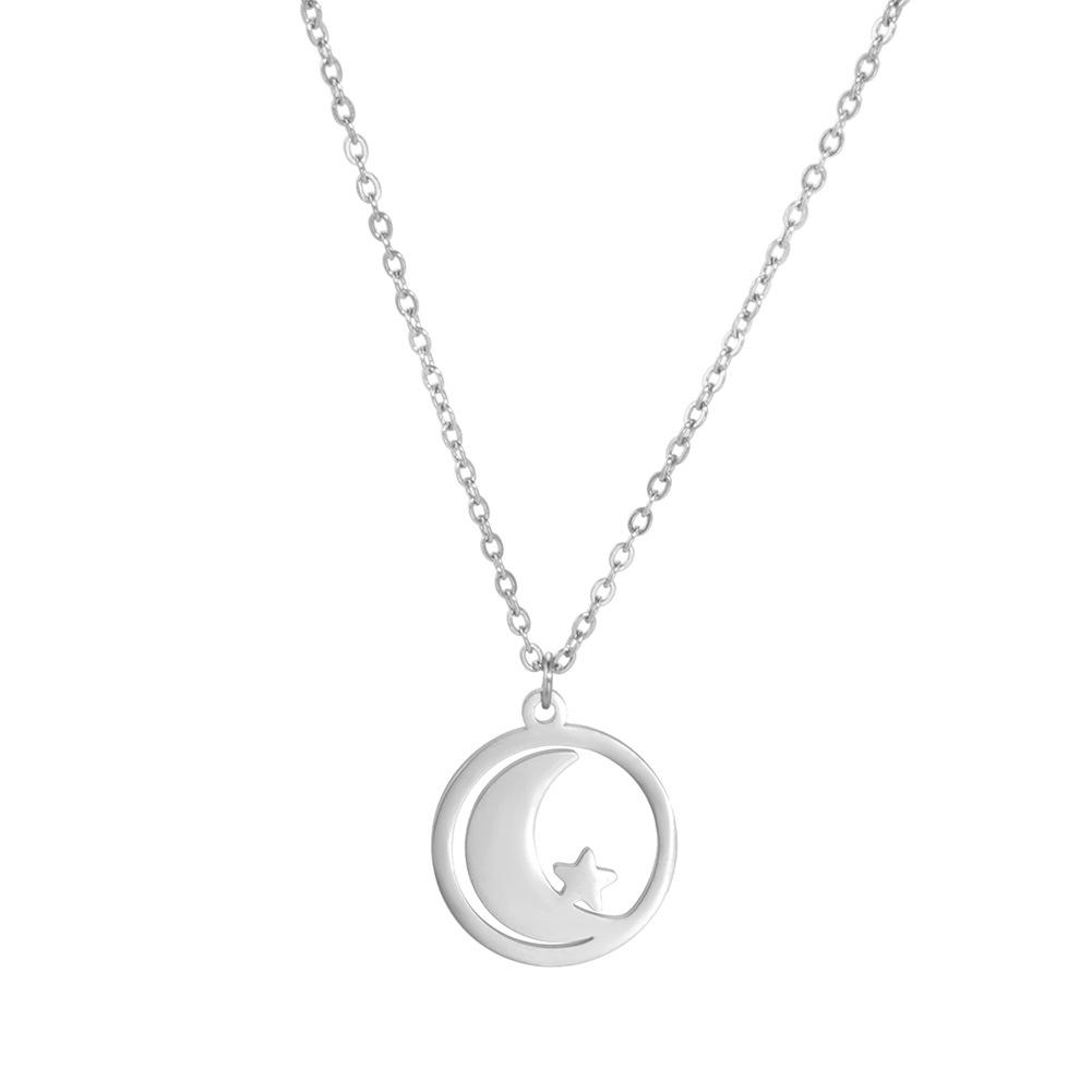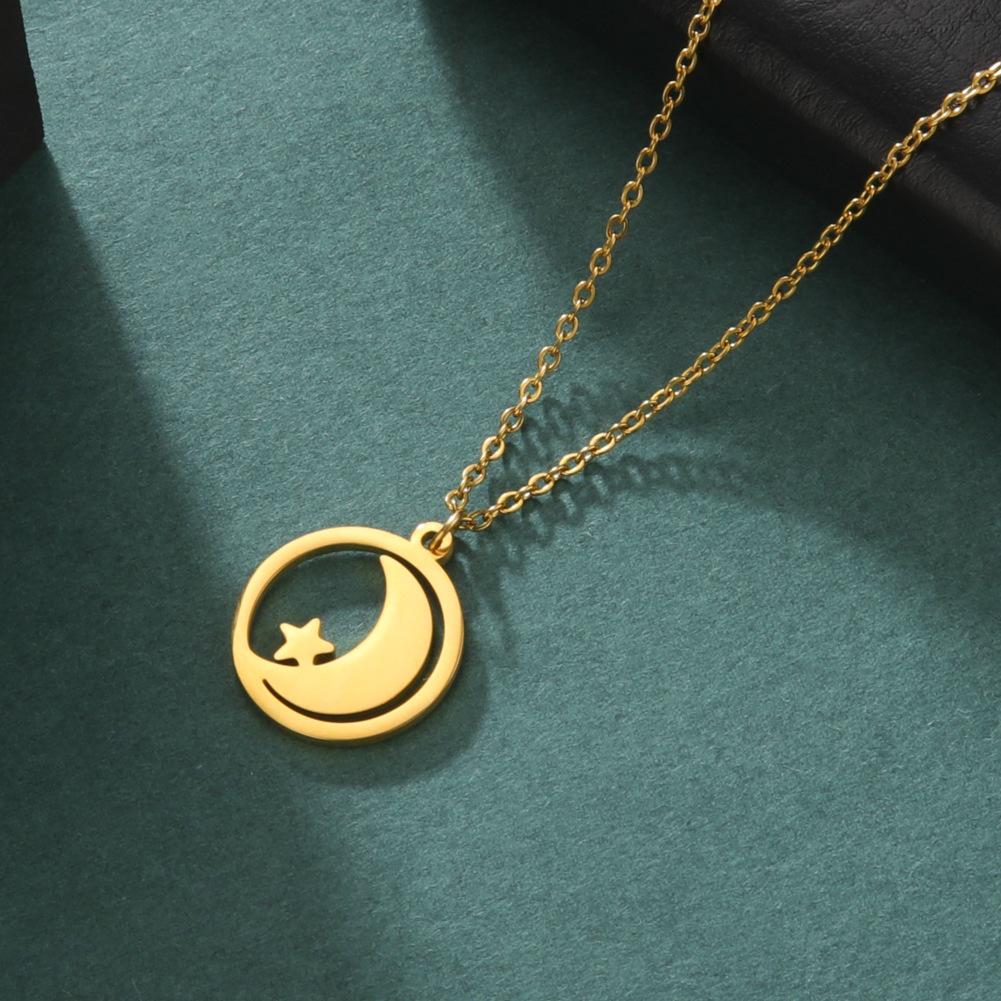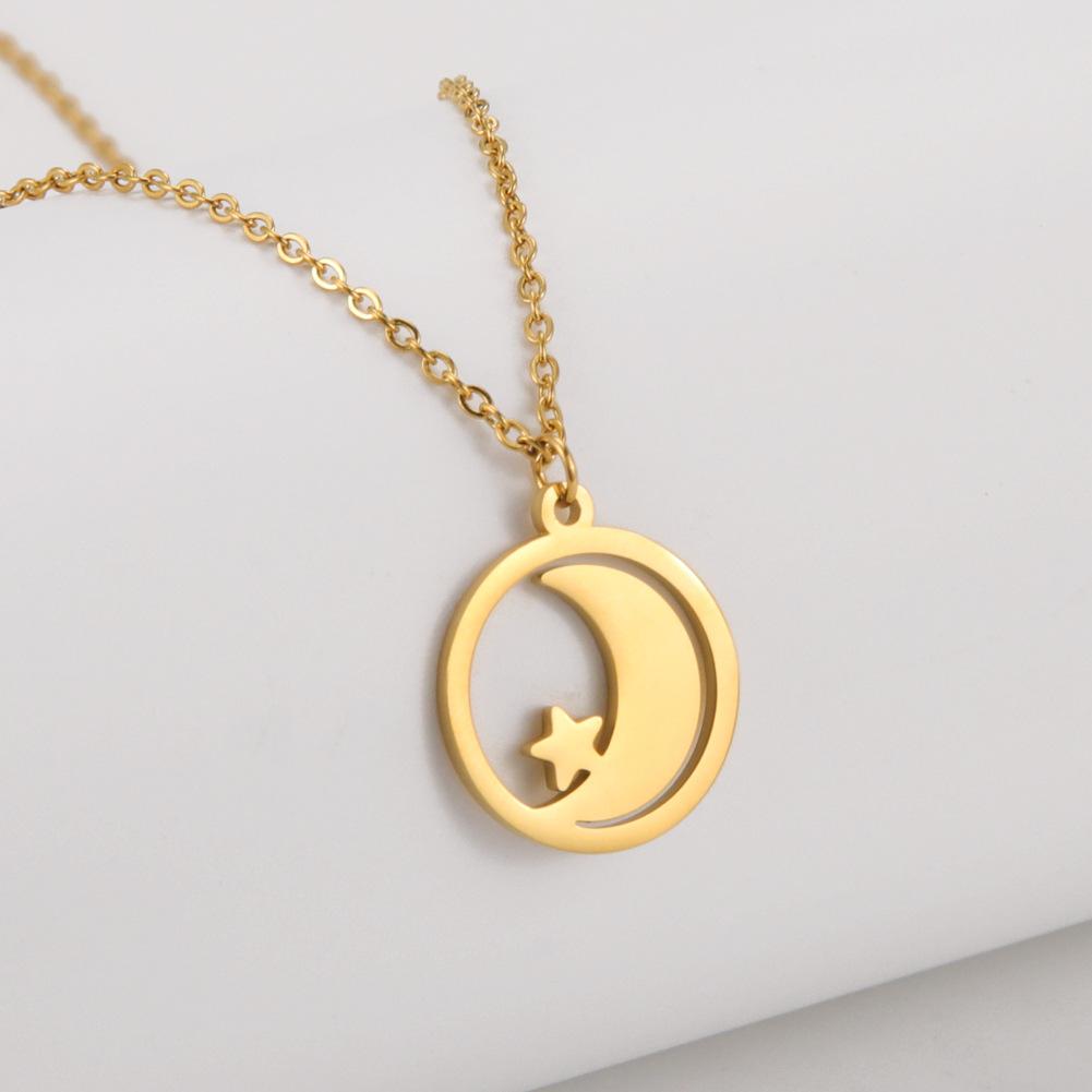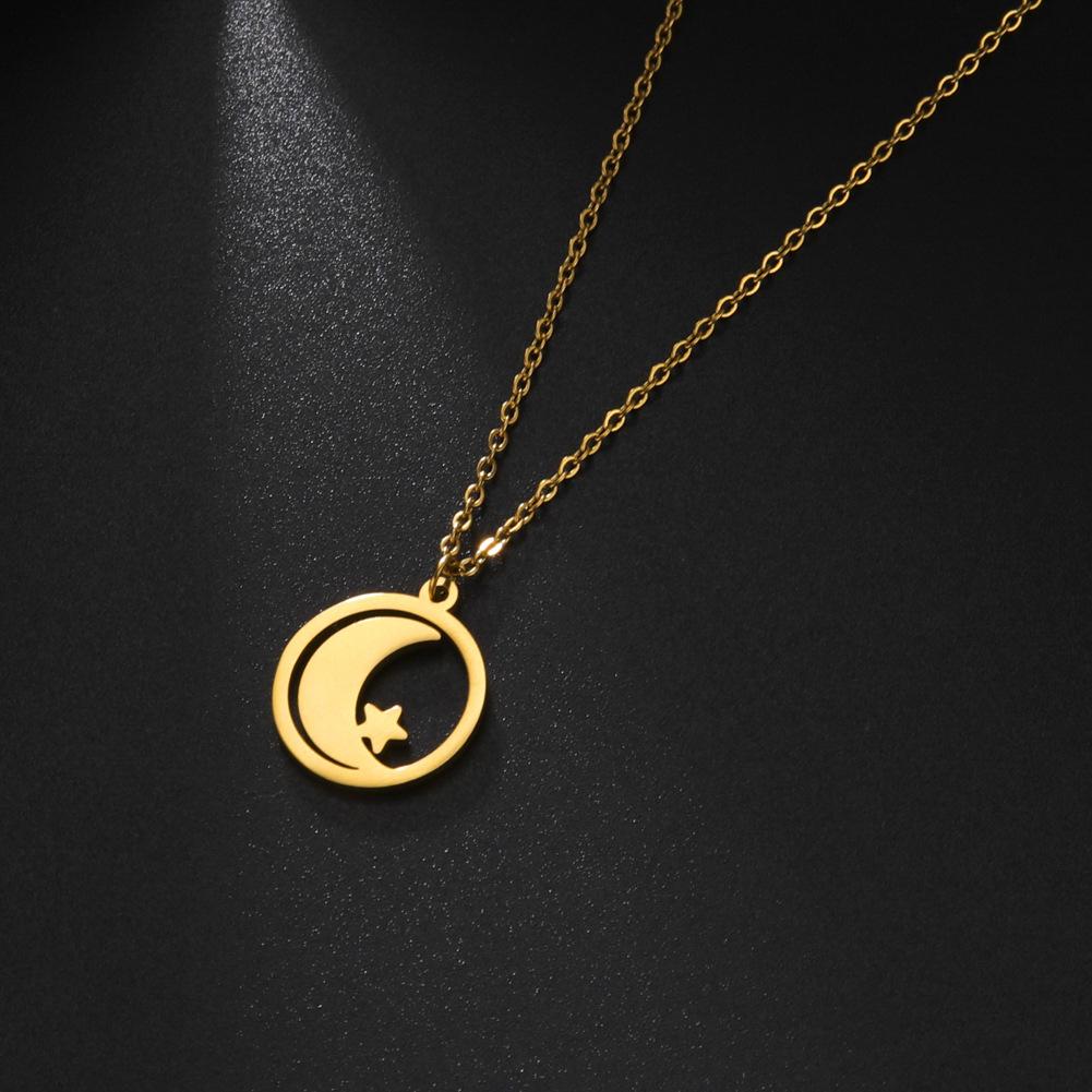 Collar con colgante de estrella y luna de acero inoxidable 304, estilo coreano, popular en Europa y América, con personalidad y tendencia de acero de titanio.