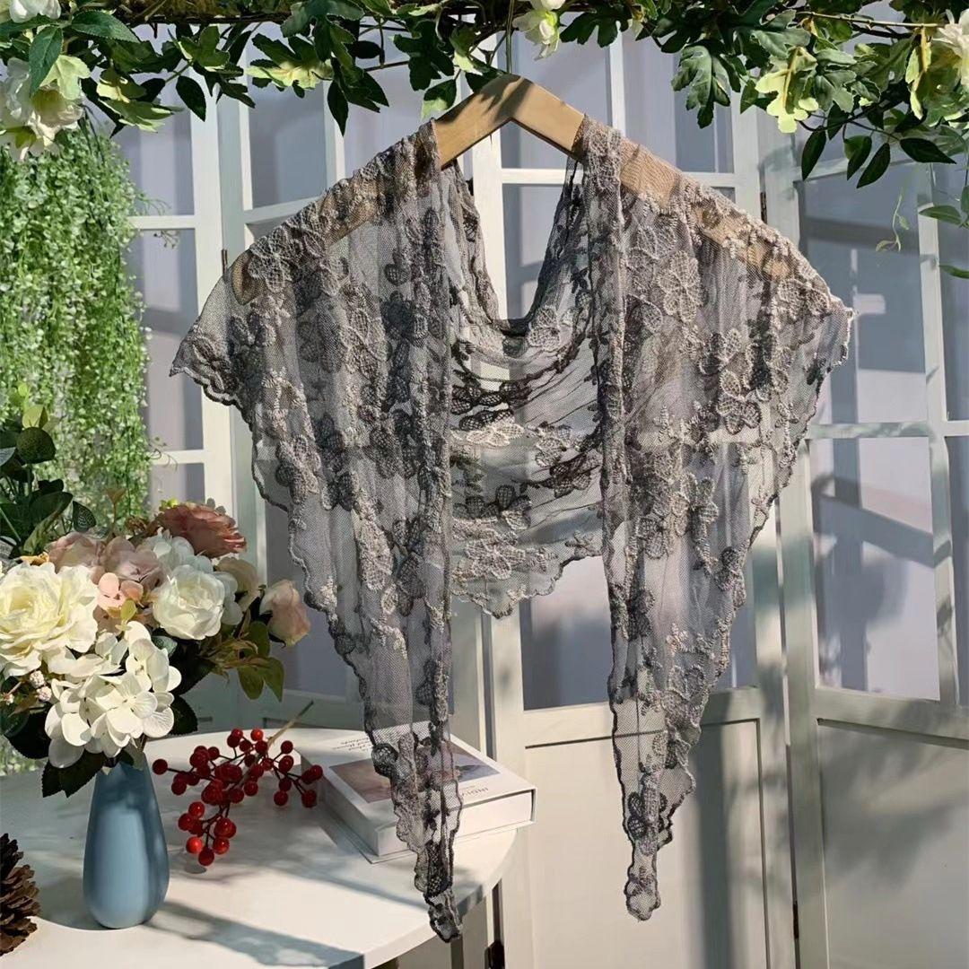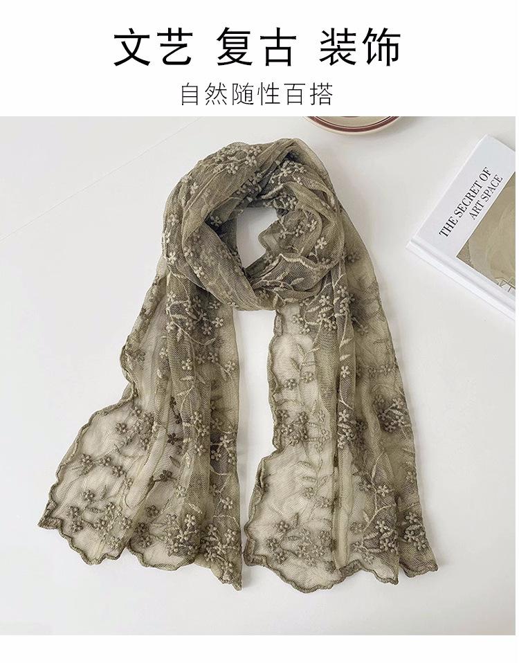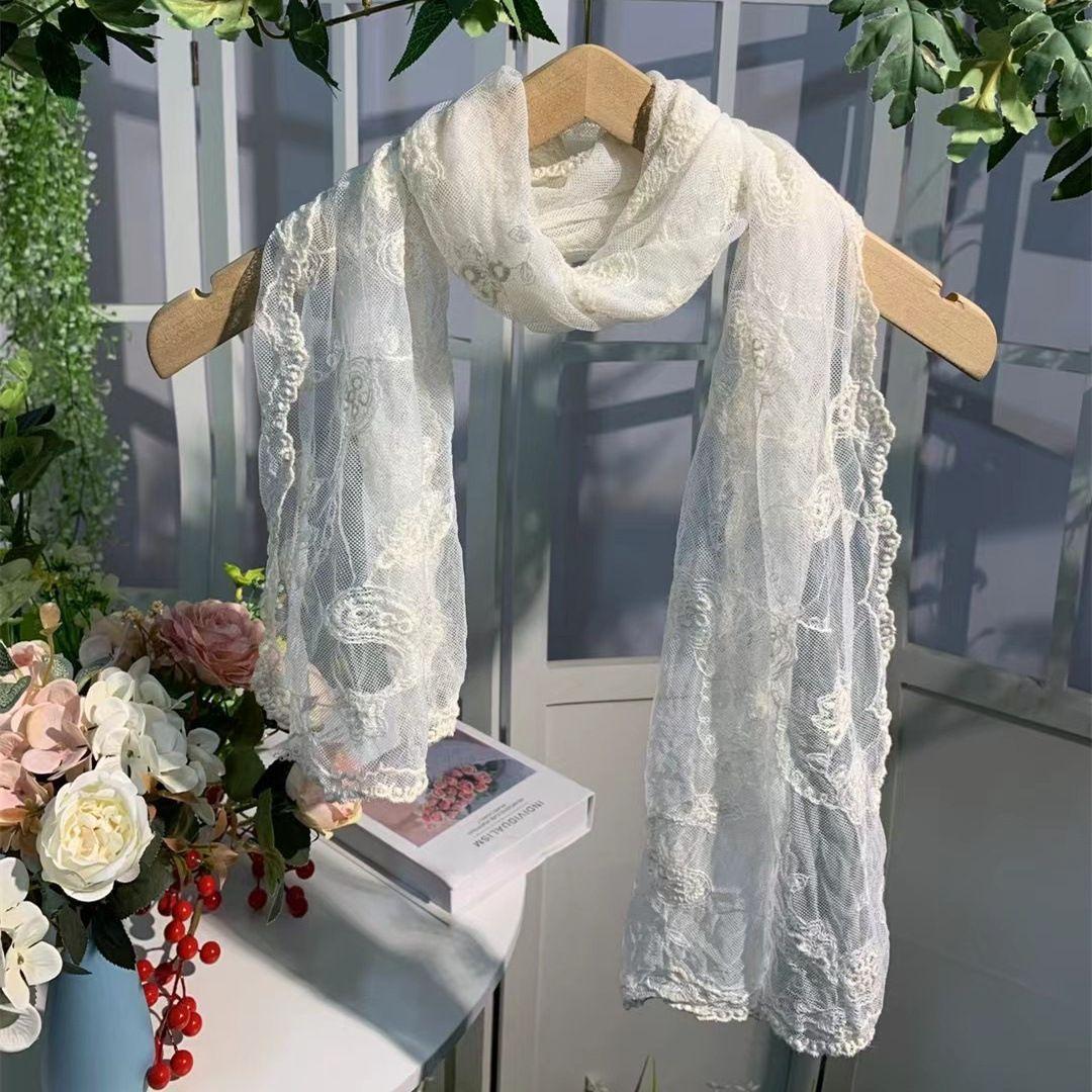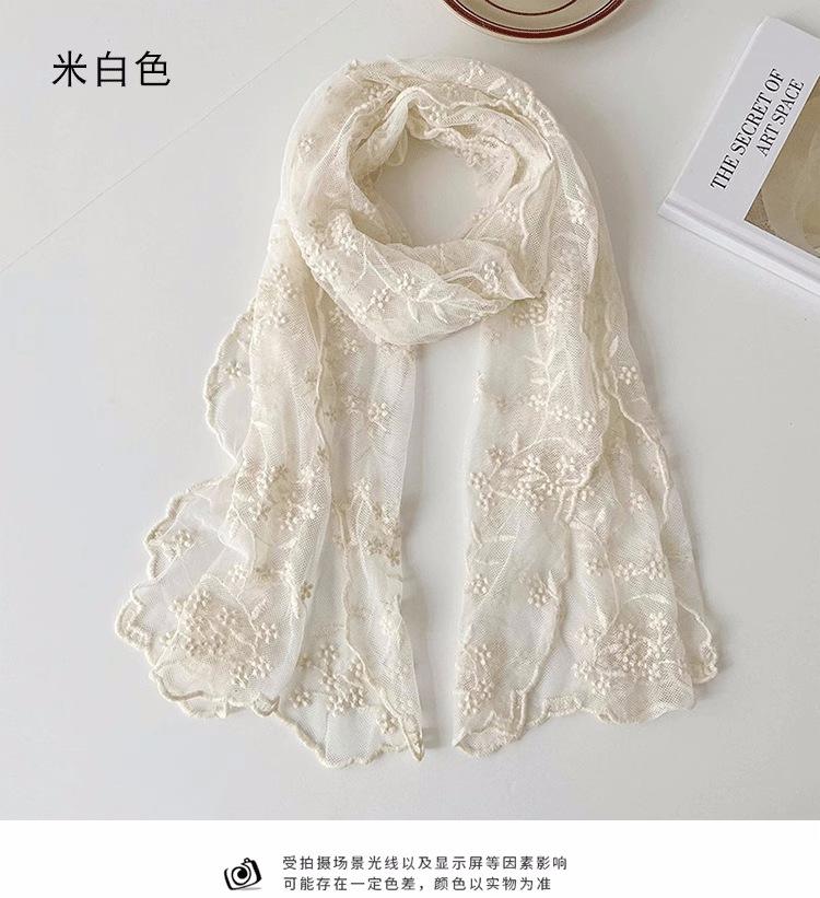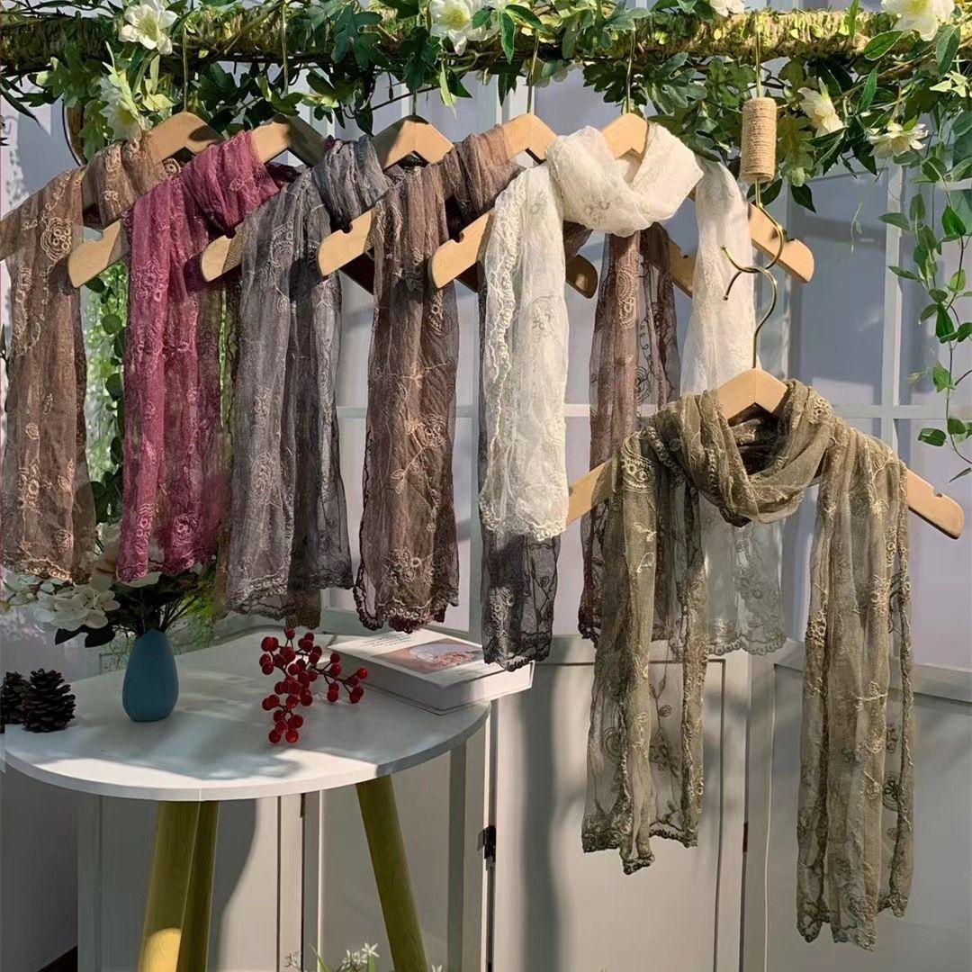 Compra Bufanda chal decorativa versátil retro artística estilo coreano nueva bufanda larga de flores pequeñas bordada con encaje para mujer al por mayor en Joom.pro
