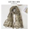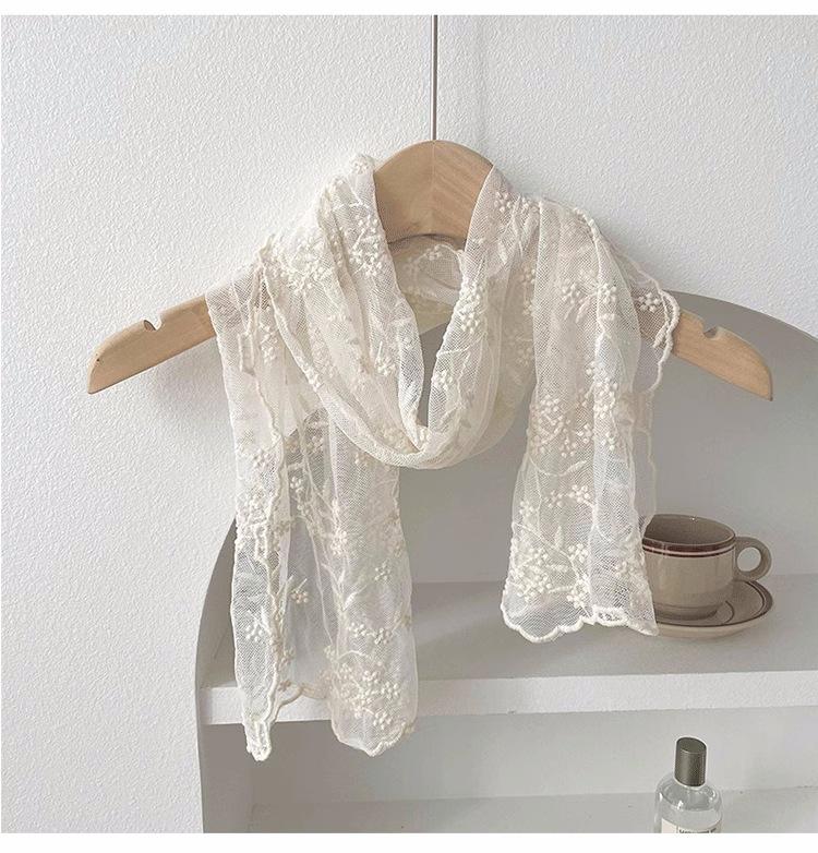 Bufanda chal decorativa versátil retro artística estilo coreano nueva bufanda larga de flores pequeñas bordada con encaje para mujer
