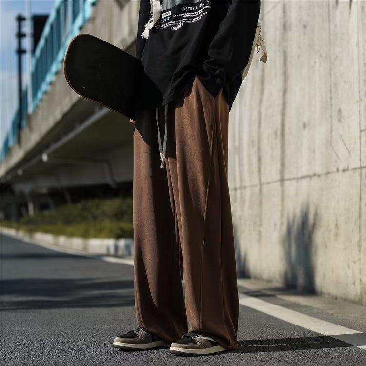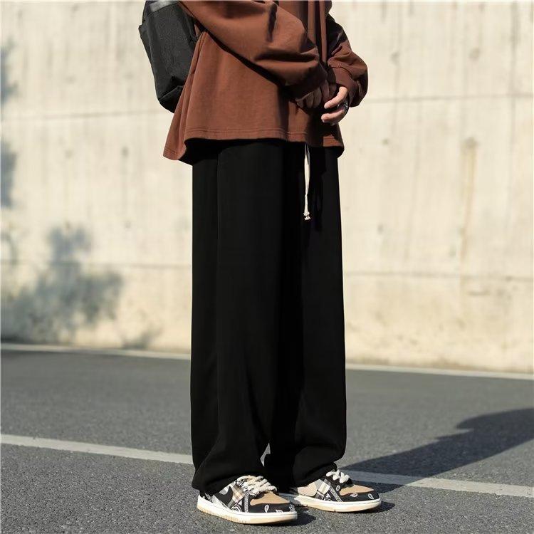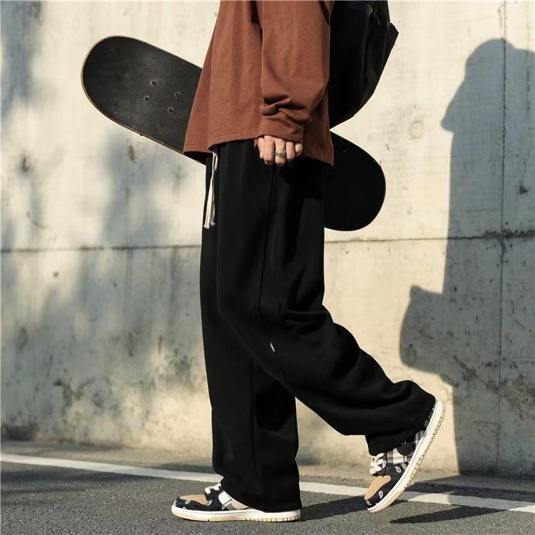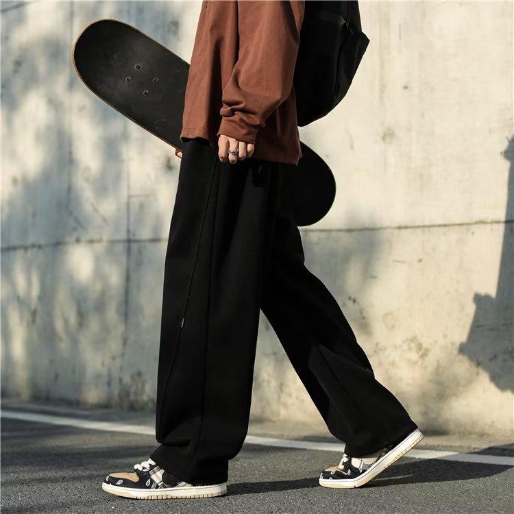 Pantalones deportivos para hombre, de primavera y otoño, de pierna ancha y rectos, holgados, estilo Hong Kong, informales y modernos.