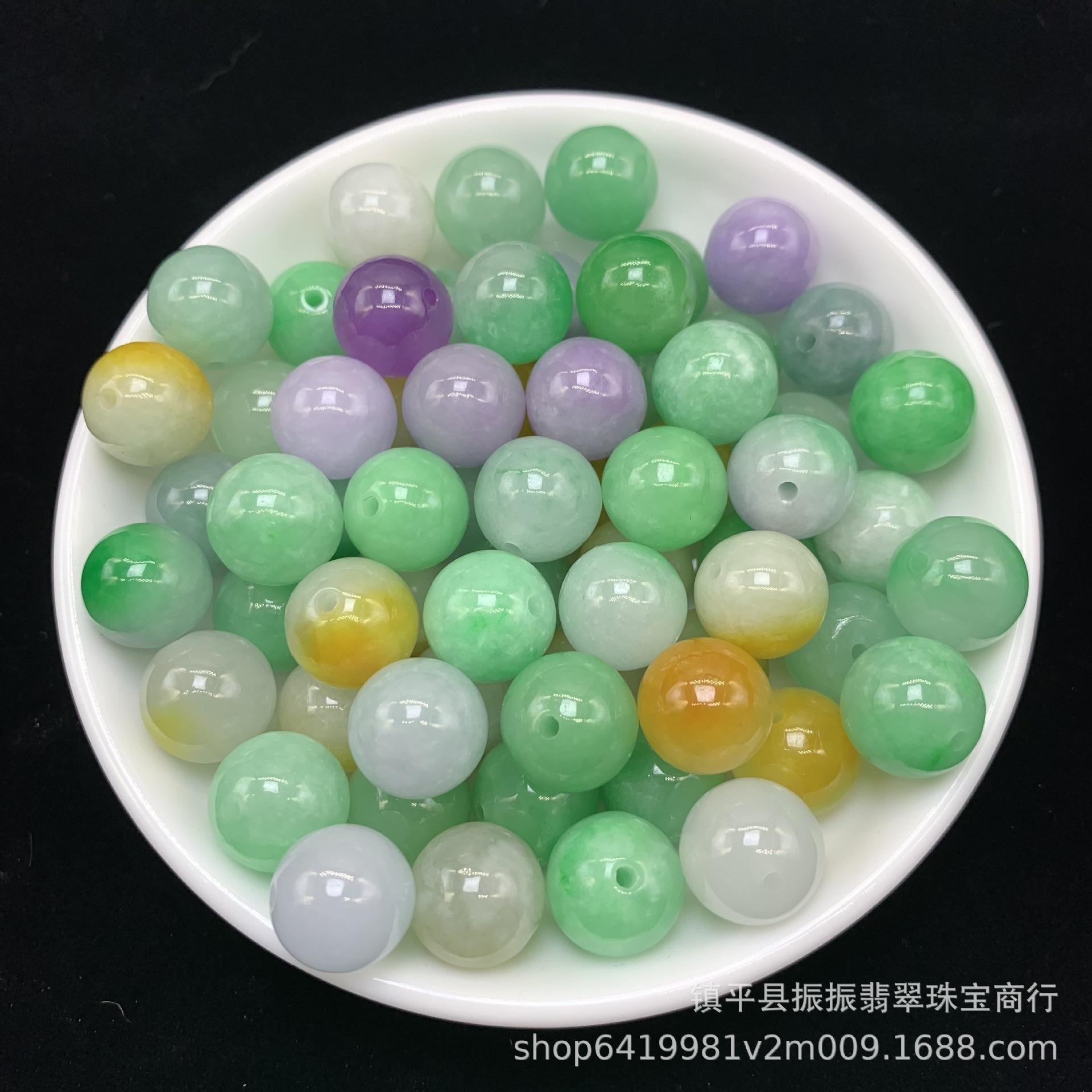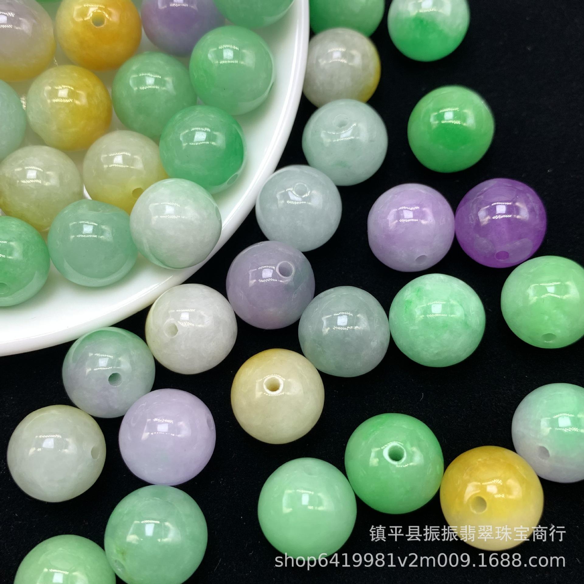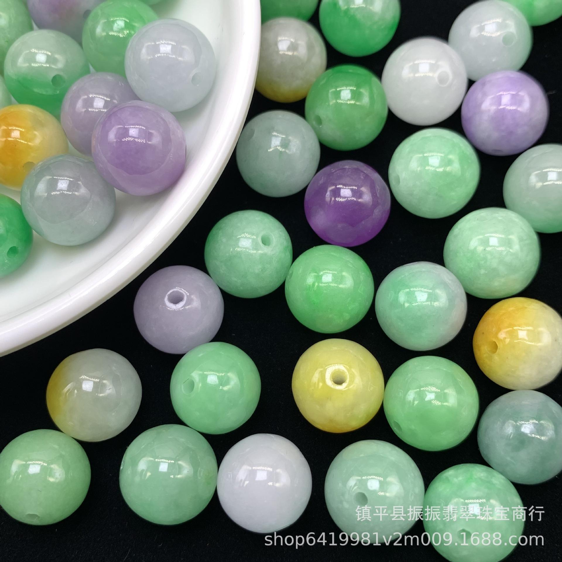 Cuentas redondas sueltas tricolor de jade de hielo de 12 mm, venta al por mayor, joyería de jade Bashan, pulsera, collar, accesorios