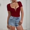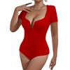 2025 Exportación Transfronteriza Nuevo Mono de Mujer Europeo y Americano Cuello en V Profundo Manga Corta Ajustado Vestido Sexy