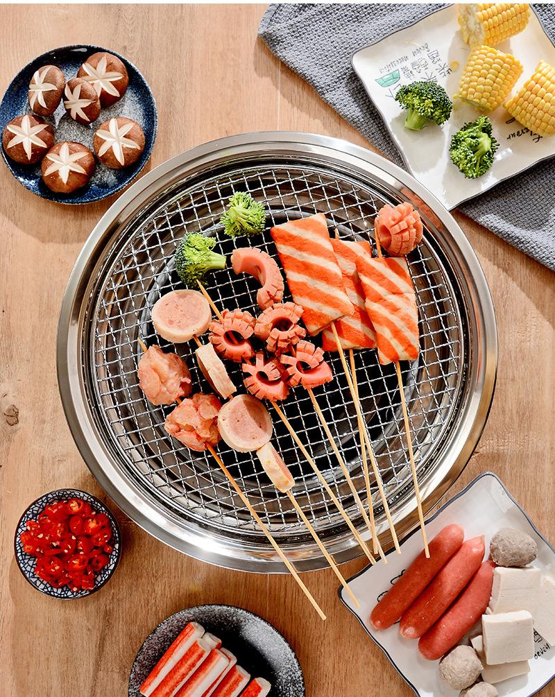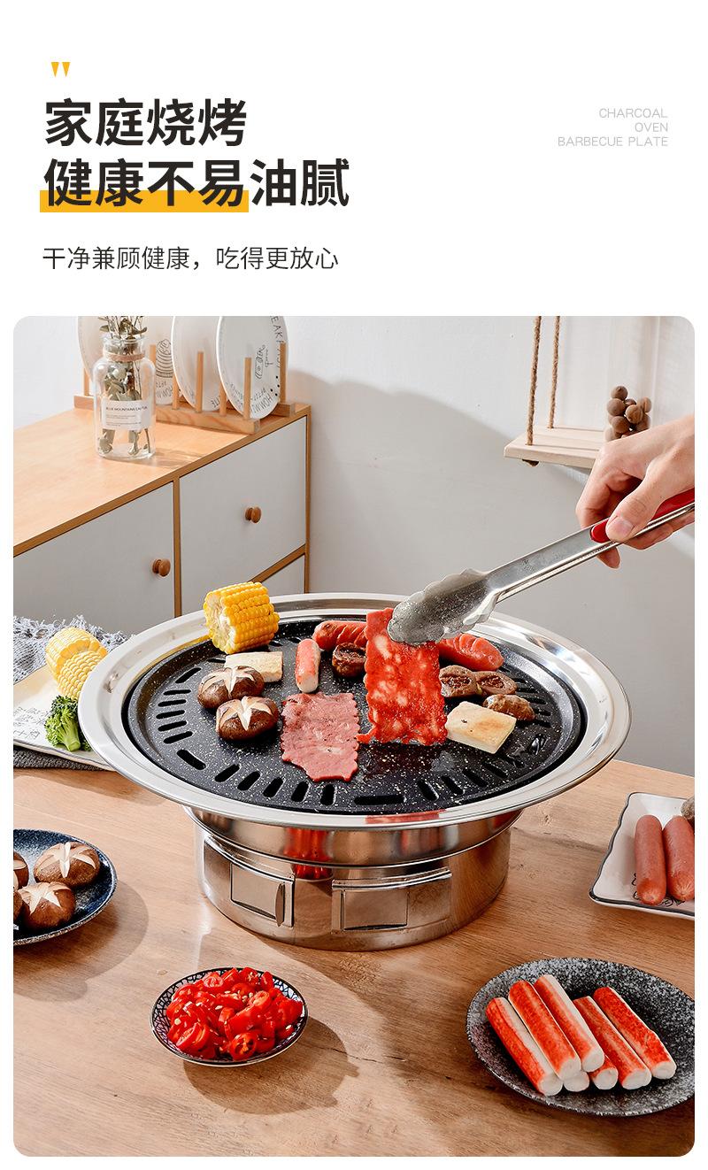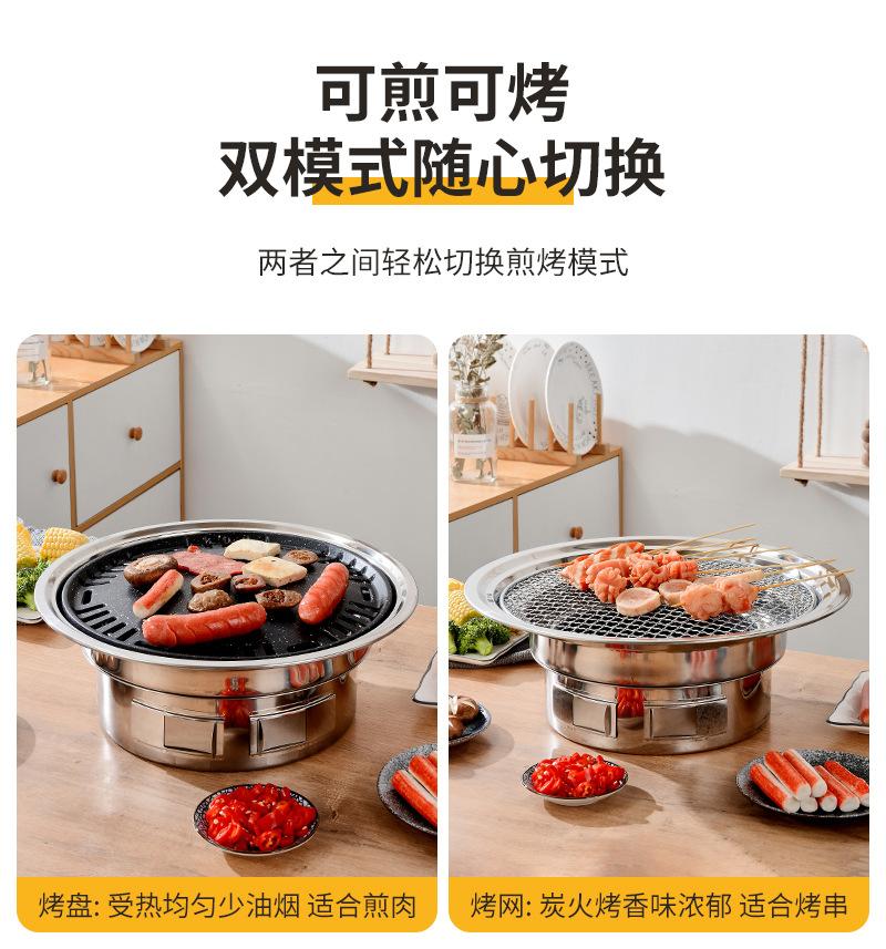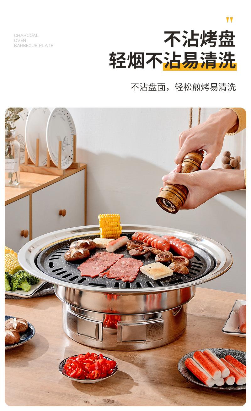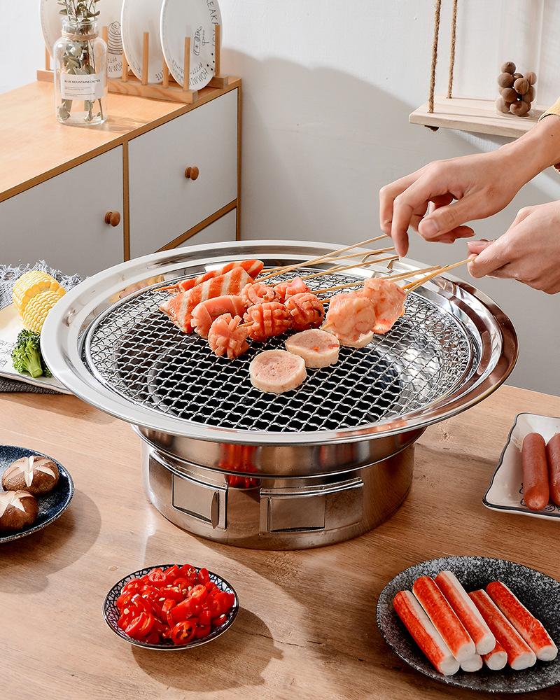 Parrilla de carbón de acero inoxidable estilo coreano, redonda, para uso doméstico, comercial, para exteriores, portátil, parrilla de carbón