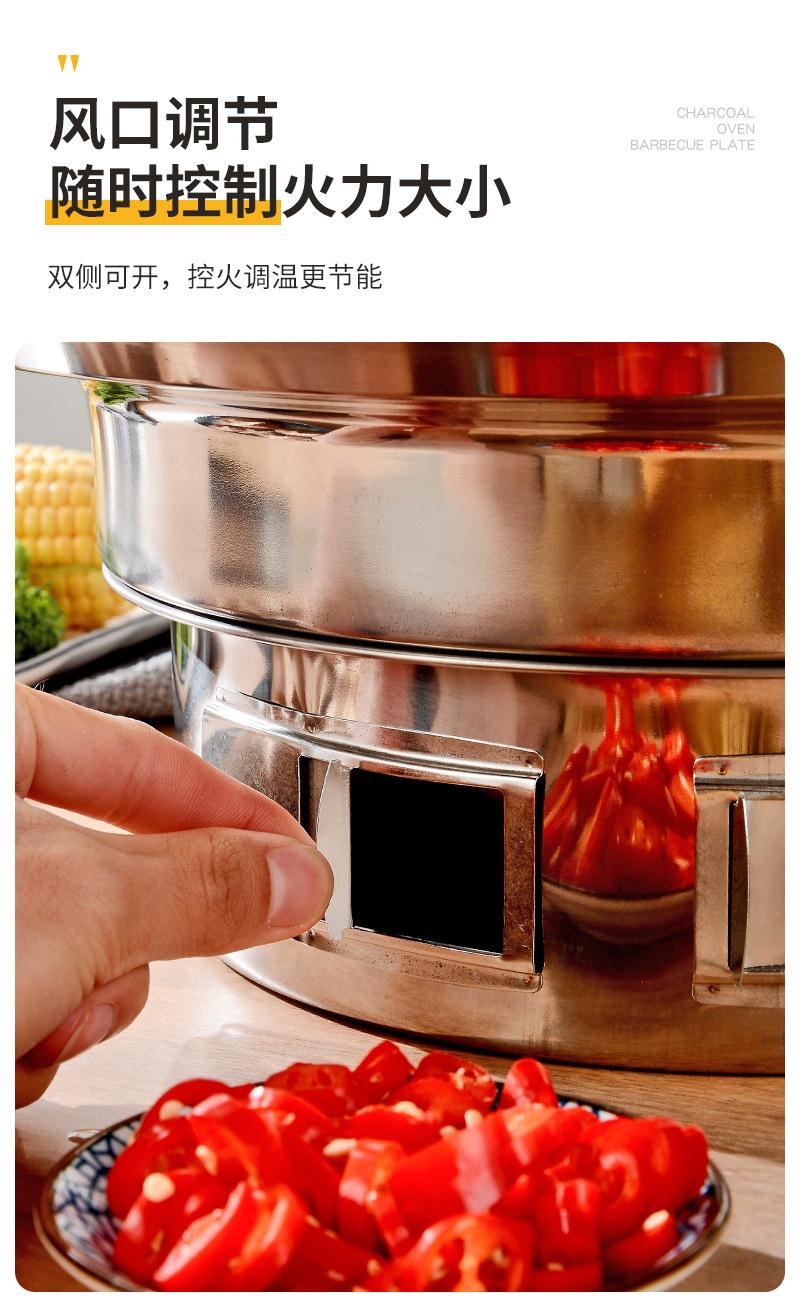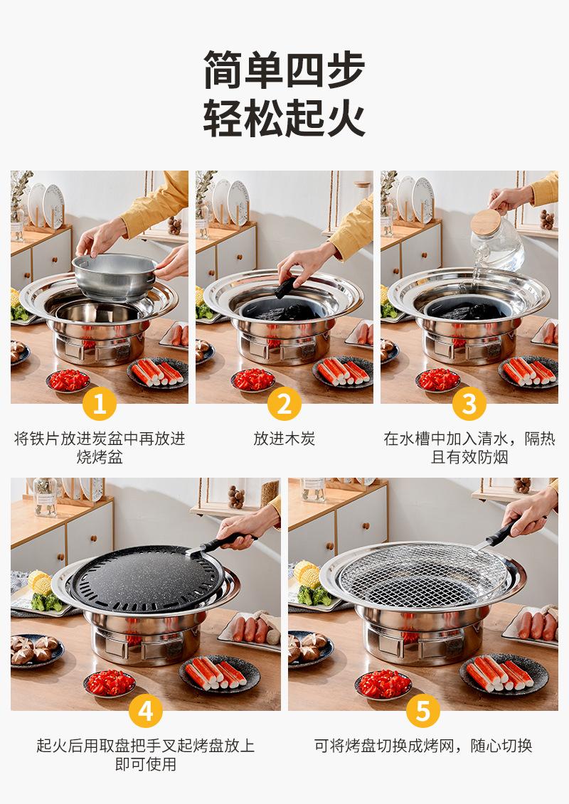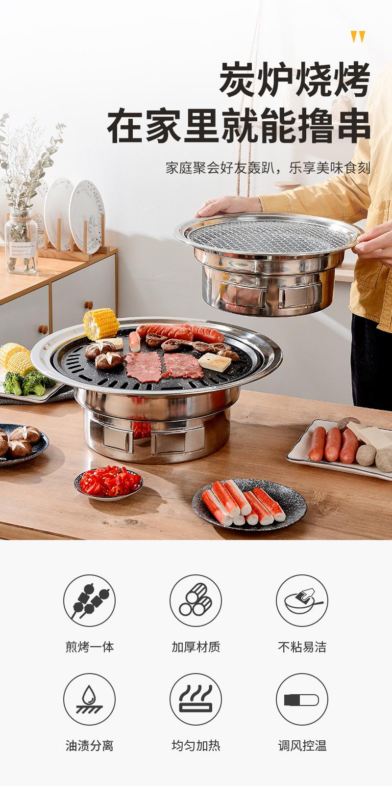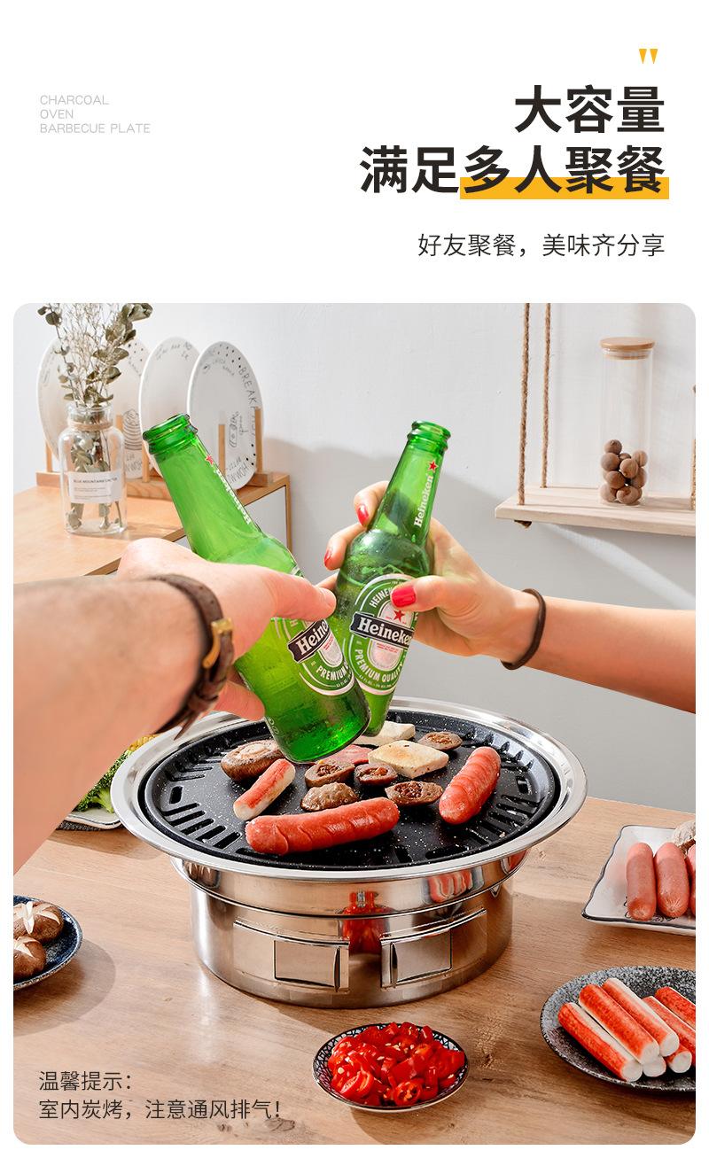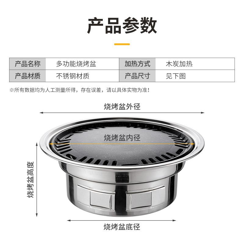 Parrilla de carbón de acero inoxidable estilo coreano, redonda, para uso doméstico, comercial, para exteriores, portátil, parrilla de carbón