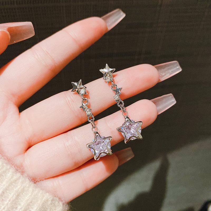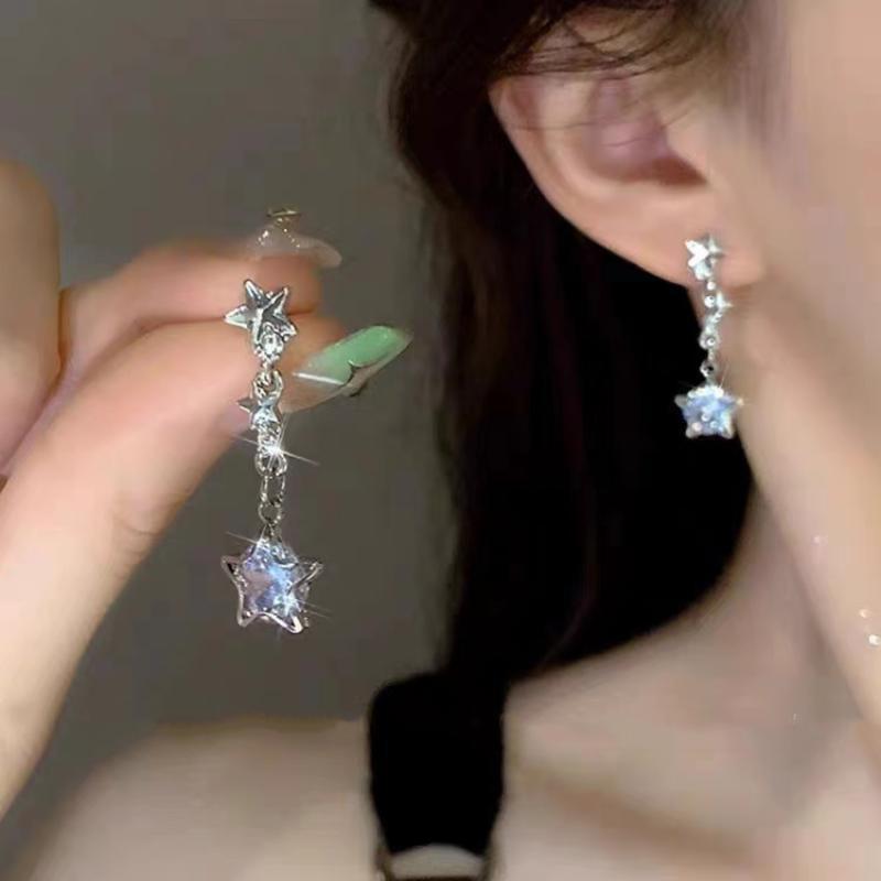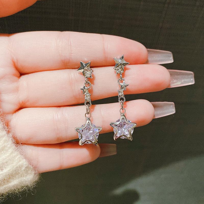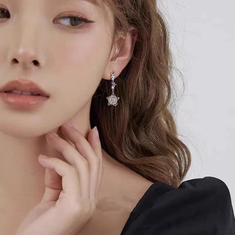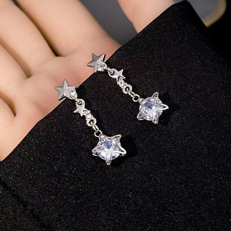 Pendientes de plata S925 con diseño de nicho de aguja y estrella de circón para mujer, ligeros, de lujo, de alta gama, de estilo dulce y moderno, elegantes joyas para las orejas