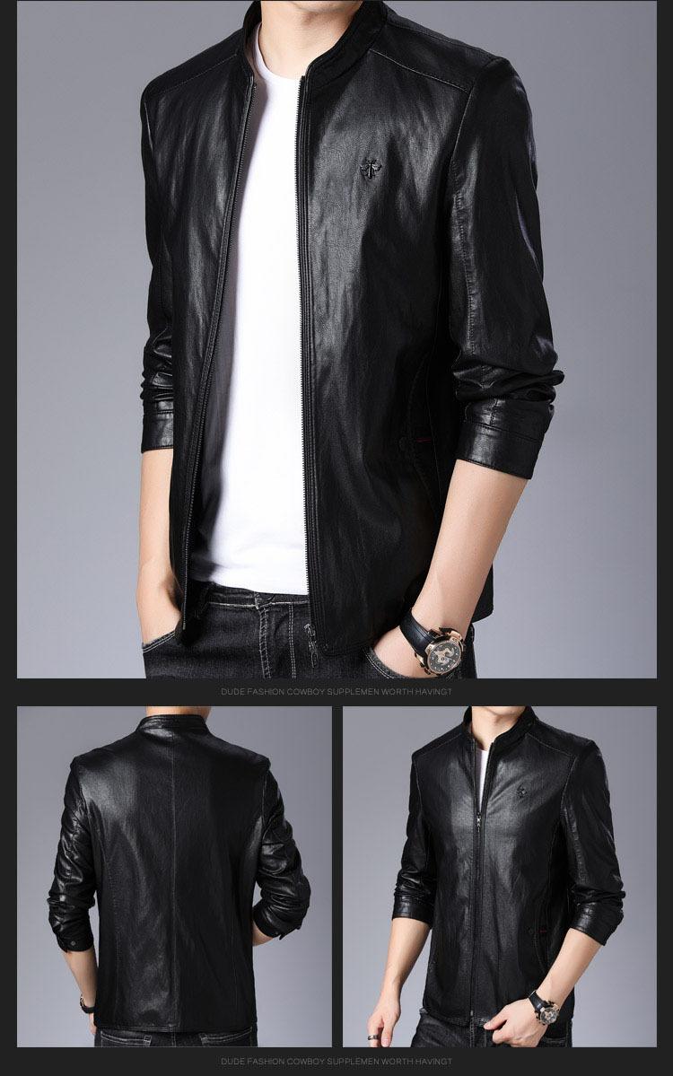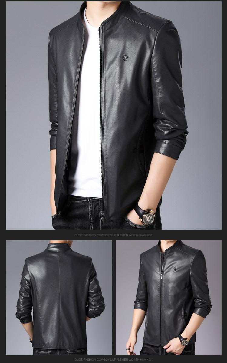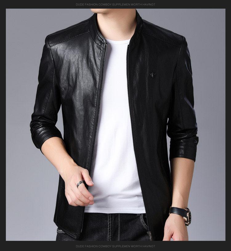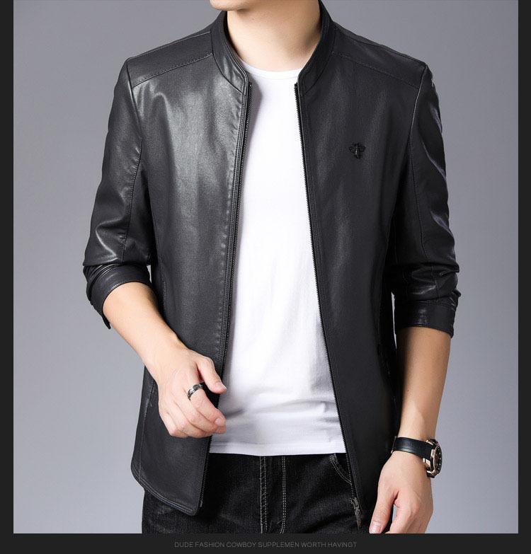 Chaqueta de cuero para hombre Huinute moderna coreana ajustada otoño e invierno cuello alto ropa de motocicleta chaqueta de cuero guapa para hombre