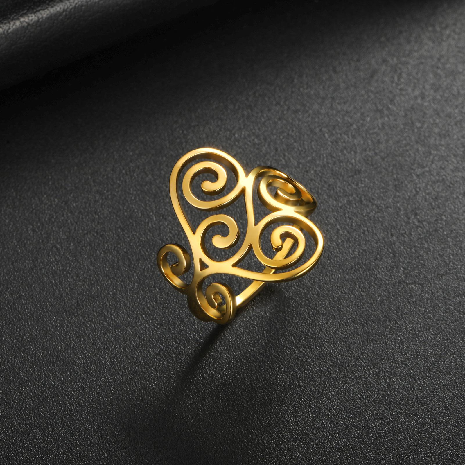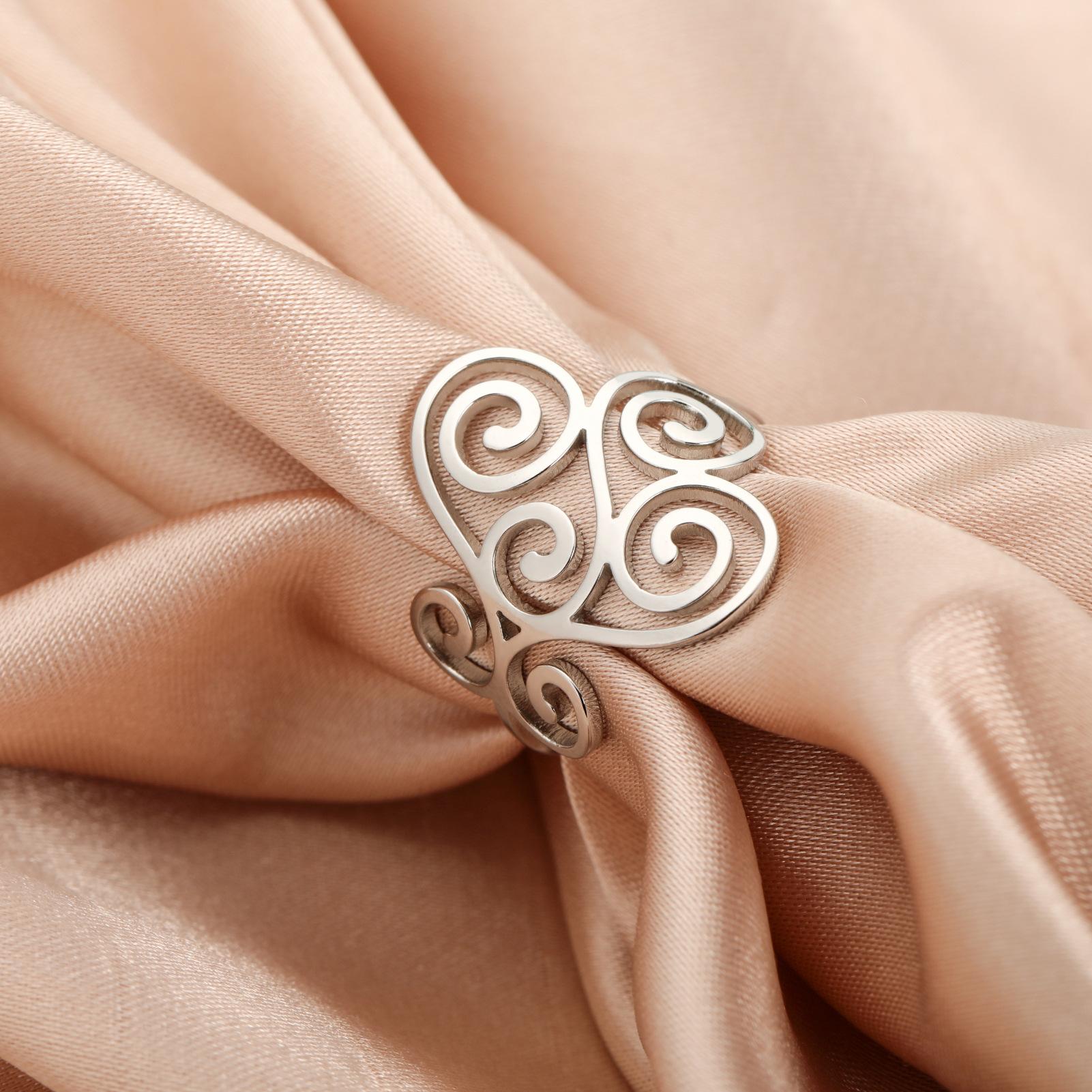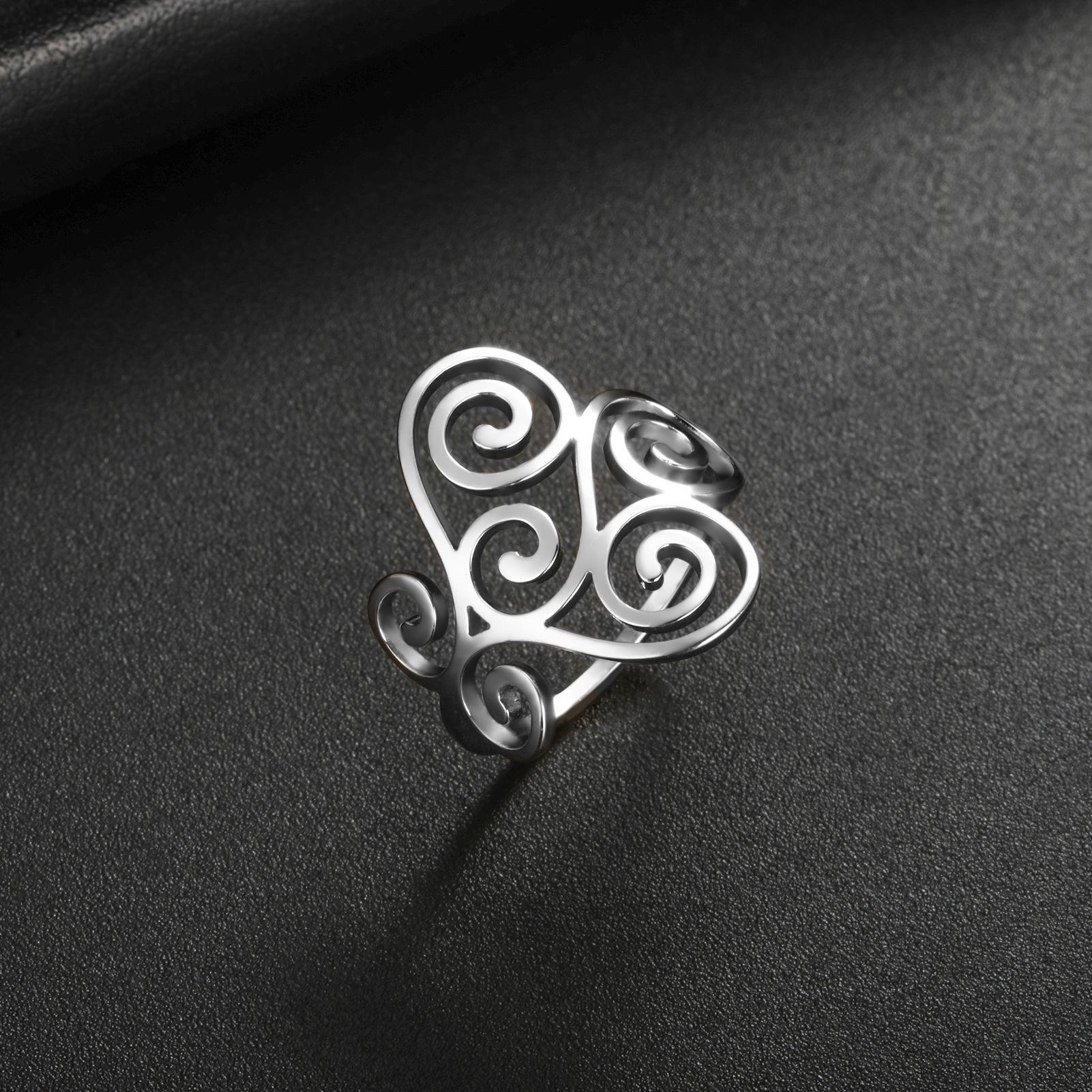 Venta caliente de comercio exterior Nuevo anillo con patrón de flor hueca anillo de acero inoxidable anillo de compromiso regalo de vacaciones para mujer