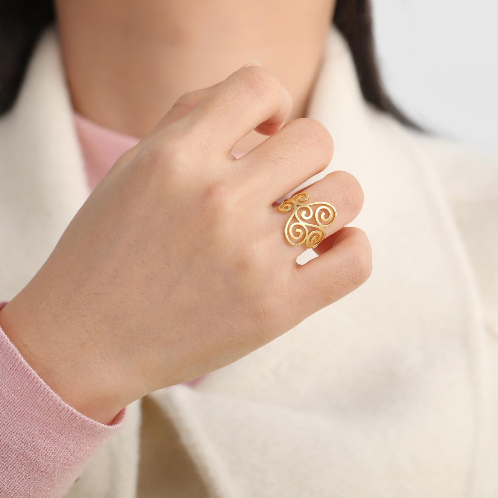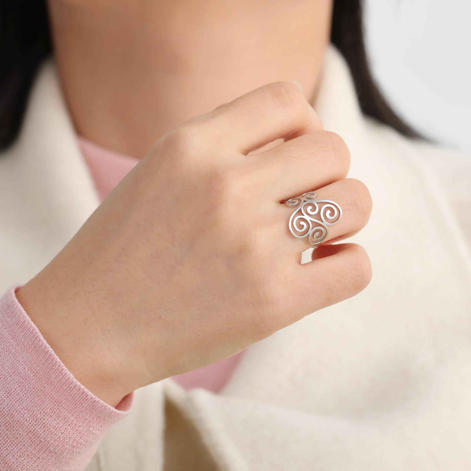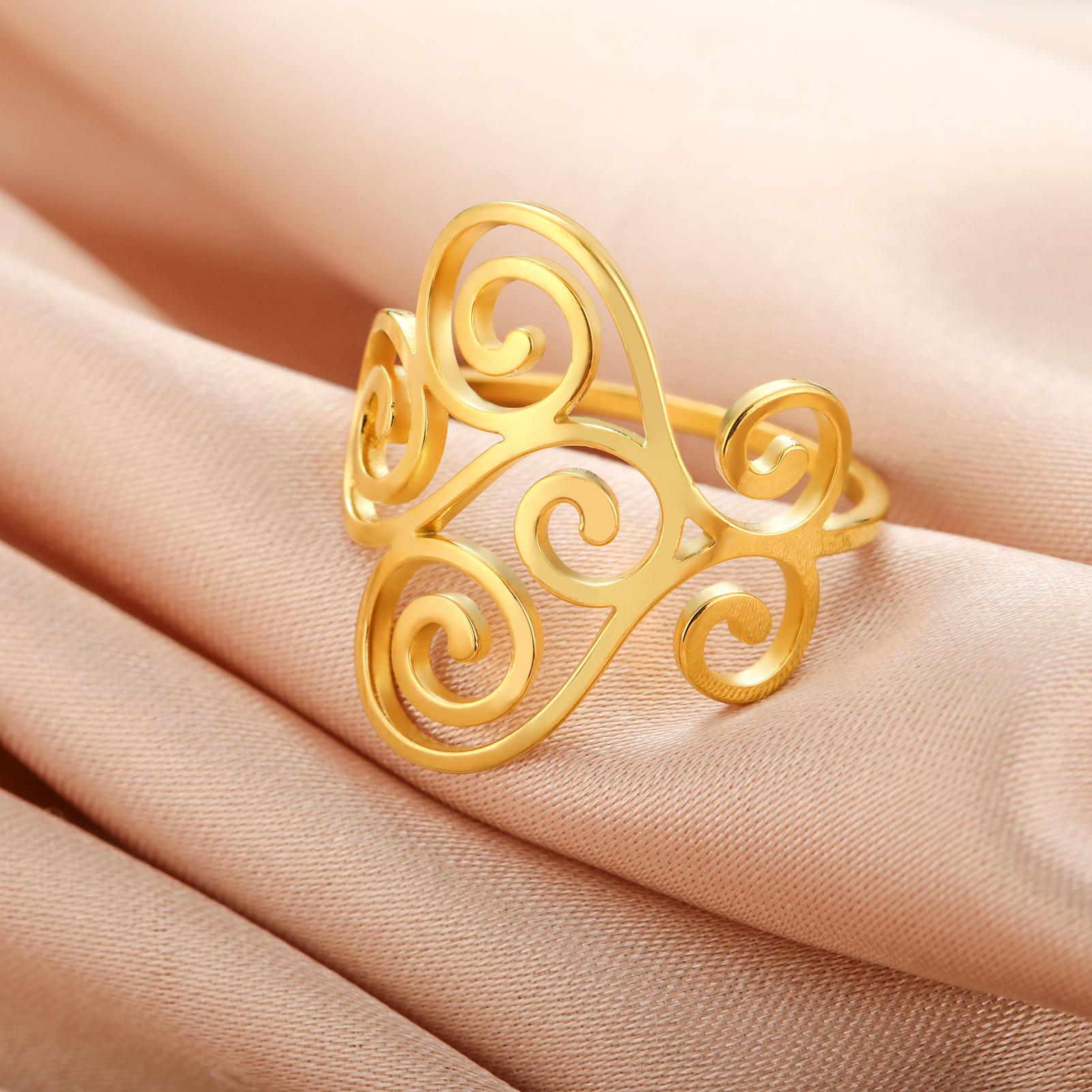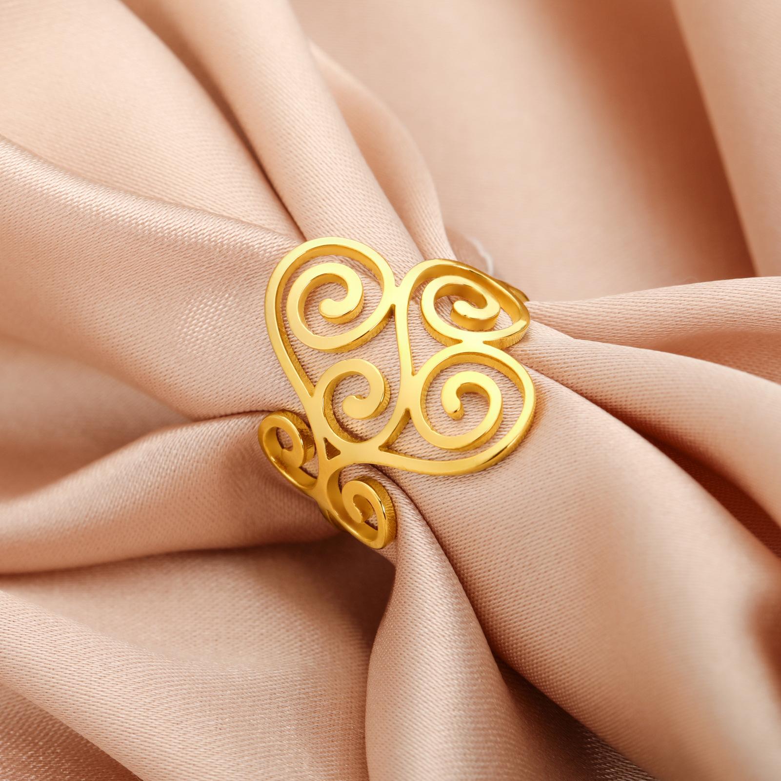Venta caliente de comercio exterior Nuevo anillo con patrón de flor hueca anillo de acero inoxidable anillo de compromiso regalo de vacaciones para mujer