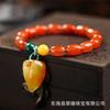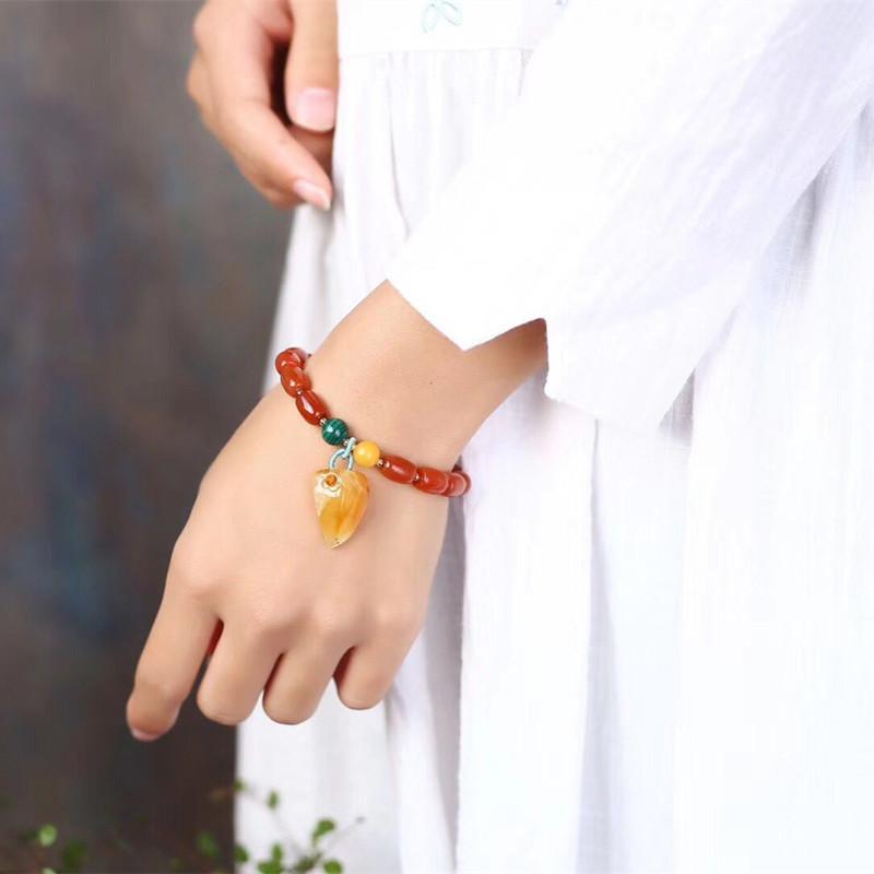 Cristal natural rojo cereza cuentas de barril rojo ágata roja del sur pulsera de una sola vuelta malaquita cera de abeja pulsera de joyería para hombres y mujeres 10×8 mm pulsera, con cuentas malaquita, cera de abeja, adornada con colgante de cera de abeja natural, tamaño 25×17×10 mm, peso total 21.7 gramos