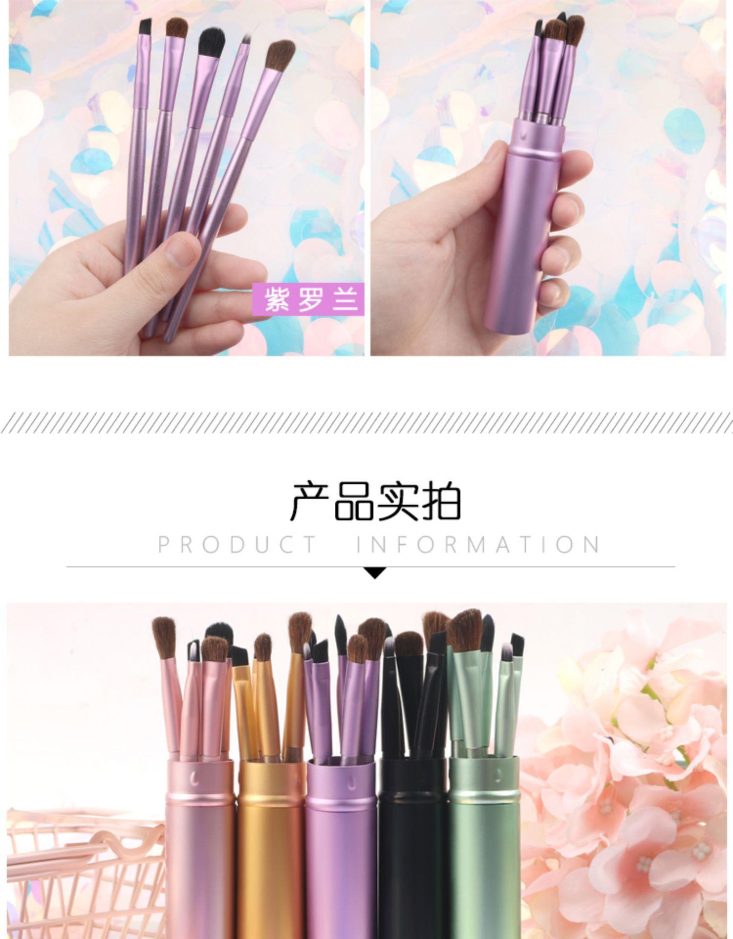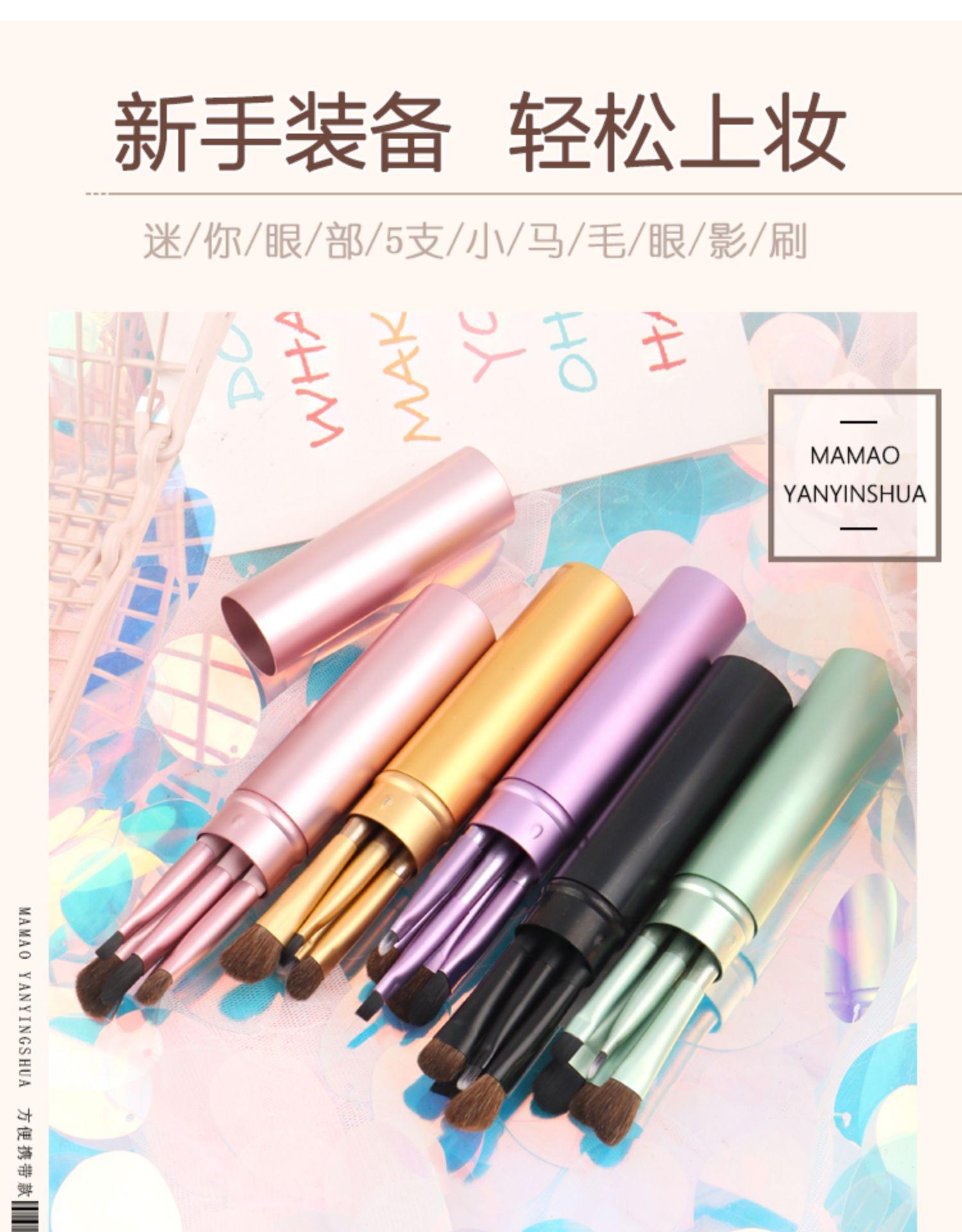 Set de Brochas de Sombra de Ojos de Tubo de Aluminio, Brocha de Maquillaje de Pelo de Pony Animal, Set Completo de Herramientas de Maquillaje, Brocha Cubeta, Brocha para Labios, Brocha para Difuminar Sombra de Nariz
