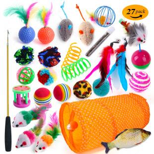 | Juego de juguetes para gatos transfronterizos con campana de papel, bola de resorte con pluma, caña de pescar, divertido palo para gatos, punto morado, punto naranja, túnel para gatos |