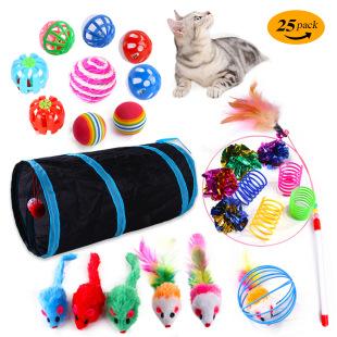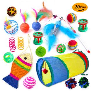 | Juguete para gatos transfronterizo, nuevo, con forma de campana, bola, pluma, palo de gato, peluche, ratón, resorte, túnel para gatos, juego de 22 piezas |