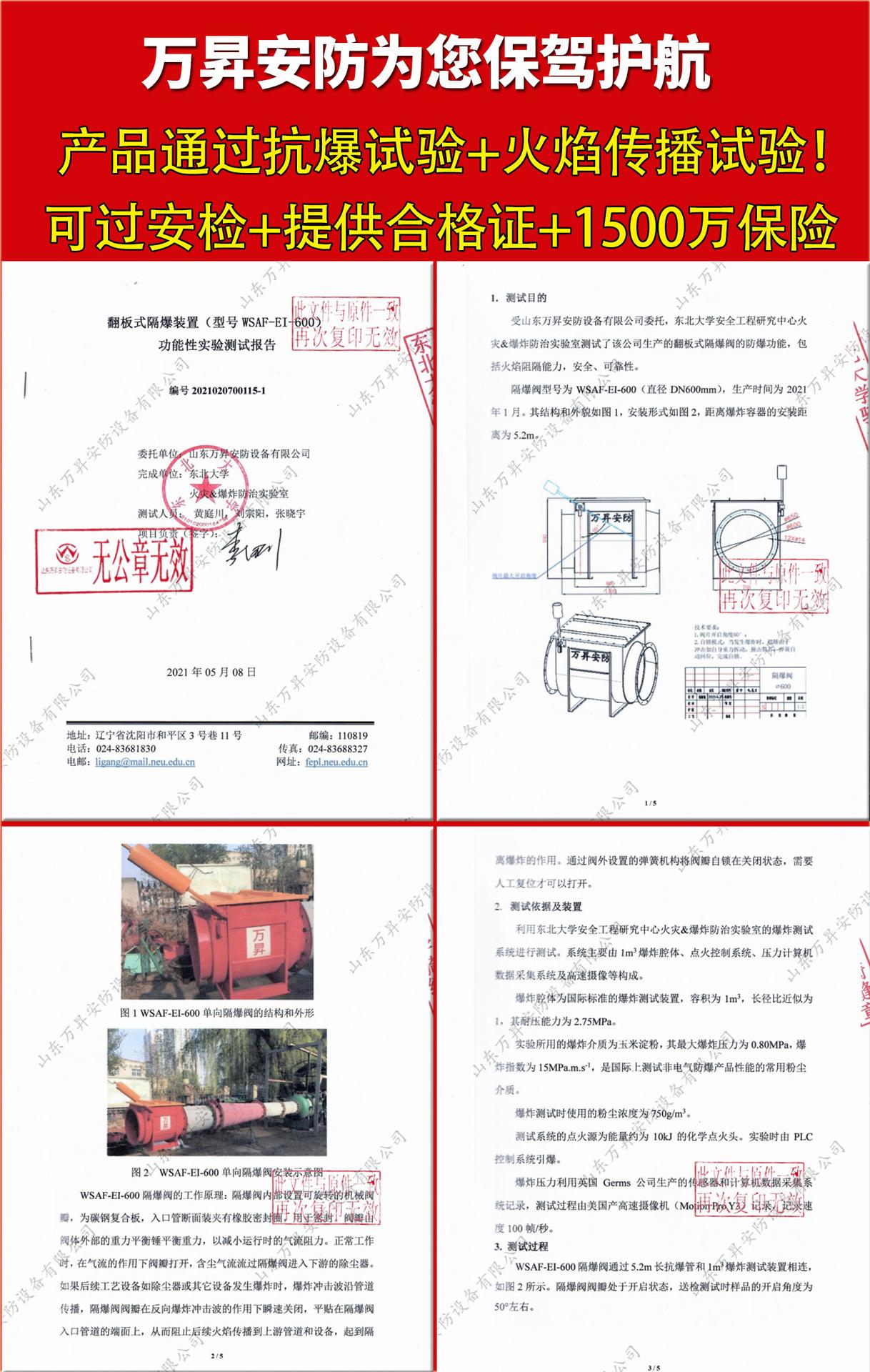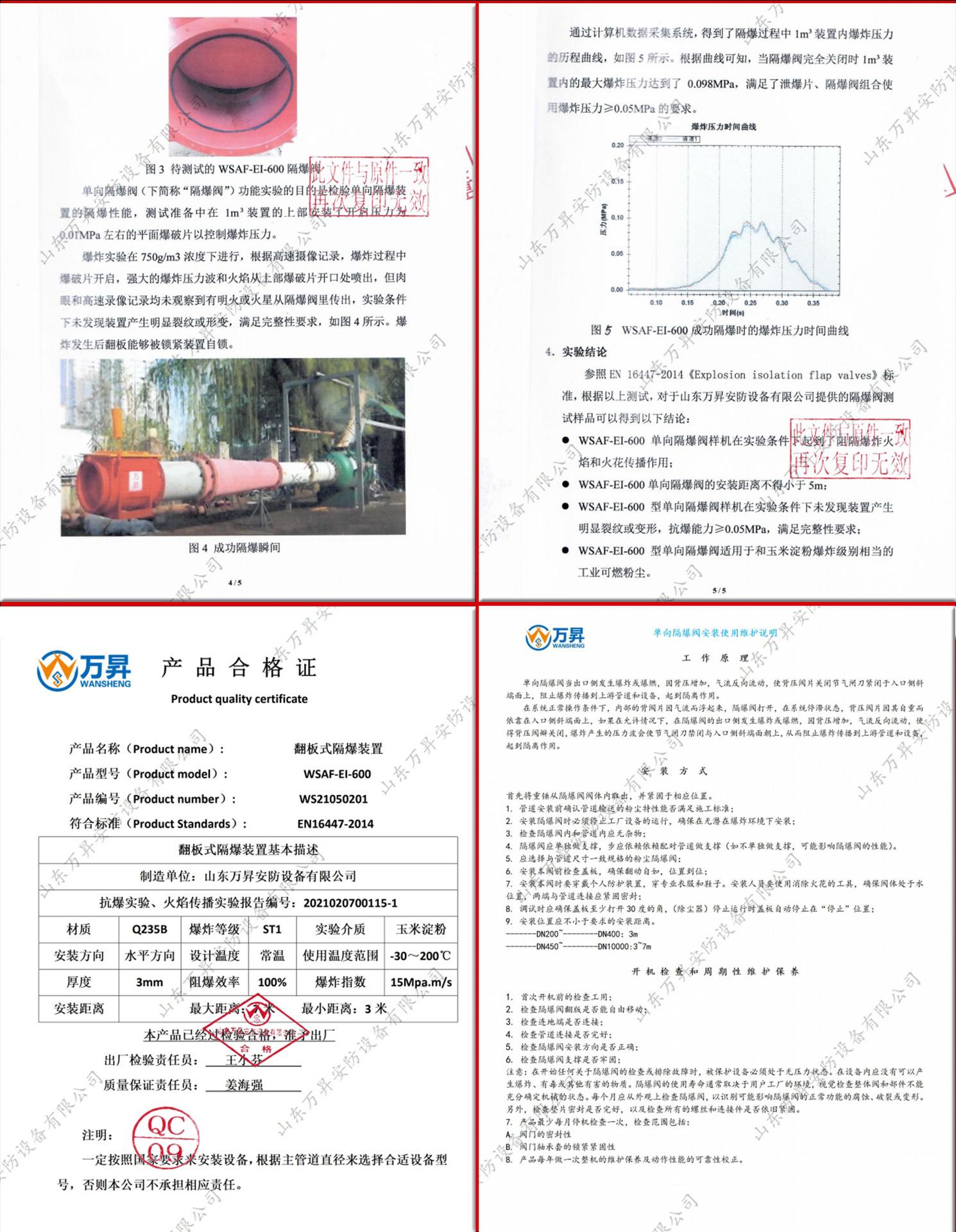 Puede pasar la inspección de seguridad Válvula unidireccional a prueba de explosiones para tubería de colector de polvo marca Wansheng Alivio de explosión de polvo y válvula a prueba de explosiones