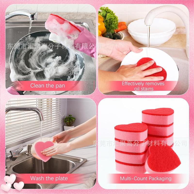 Esponja lavavajillas de limpieza de color, esponja de amor de doble capa, estropajo compuesto para limpieza y lavado de cocina