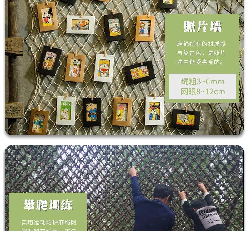 Red de cuerda de cáñamo, venta al por mayor, red de protección para escaleras y balcones para niños, cerca escénica, pared con fotos retro, red decorativa para techo