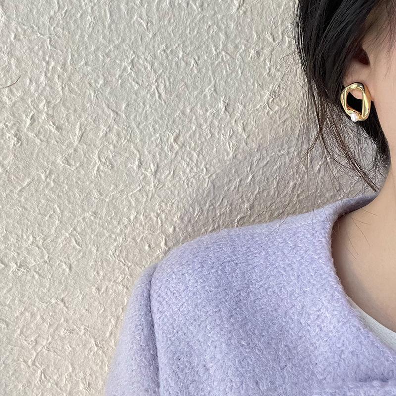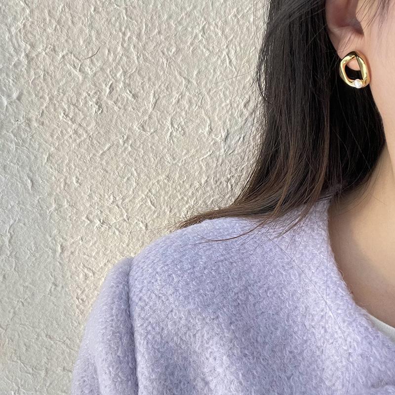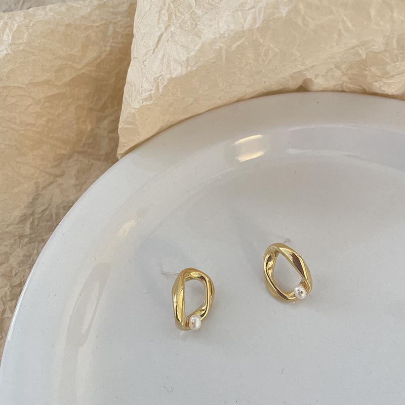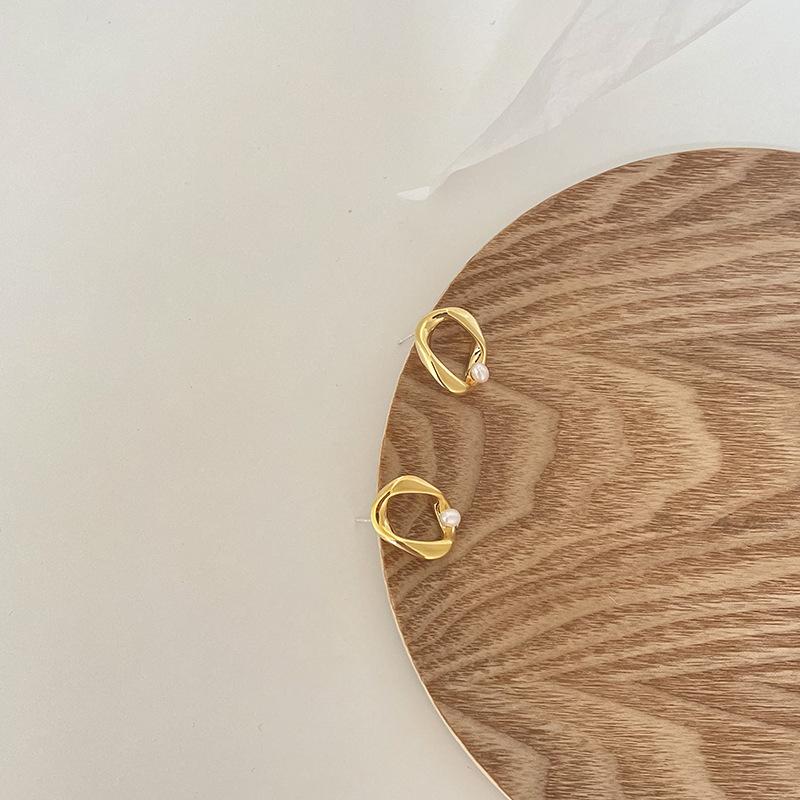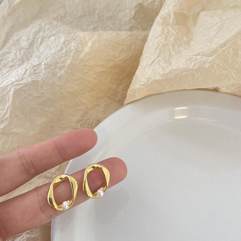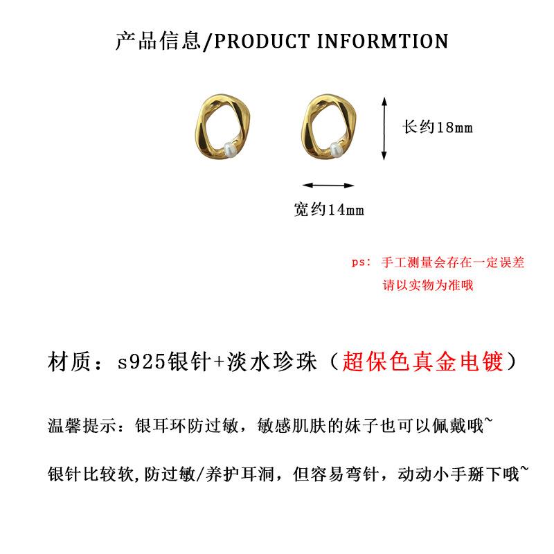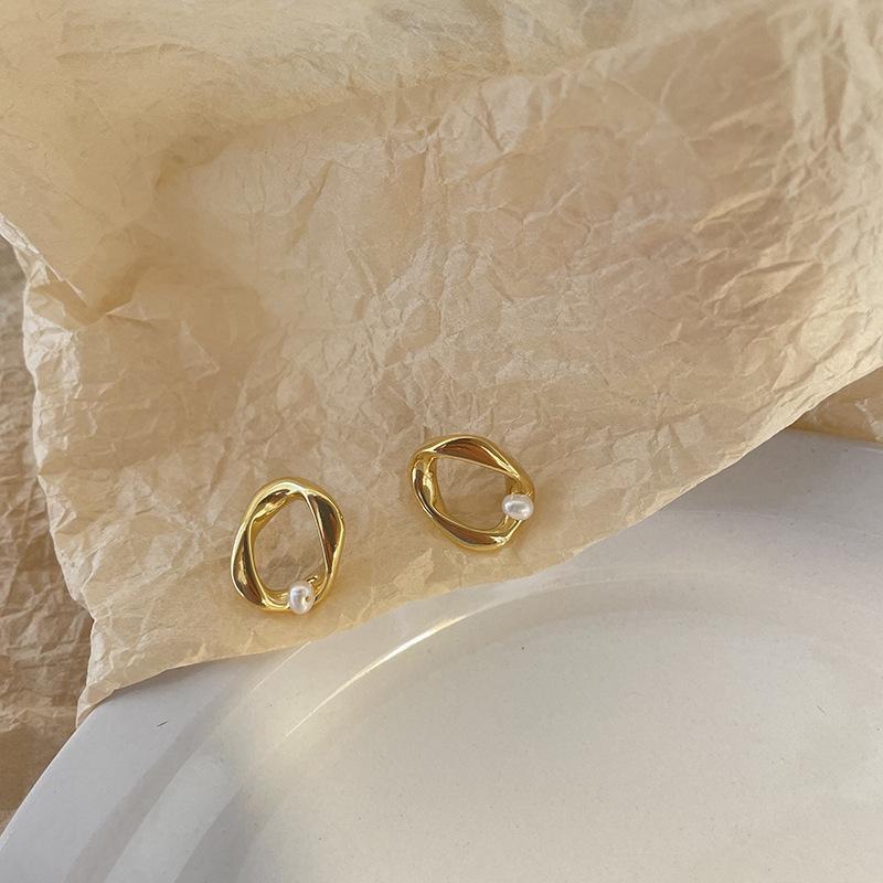 Compra Arete de Aguja de Plata s925 Estilo Coreano ins Personalidad Moda Elegantes Lujo Ligero Irregulares O-word Aretes de Perla de Agua Dulce 074 al por mayor en Joom.pro