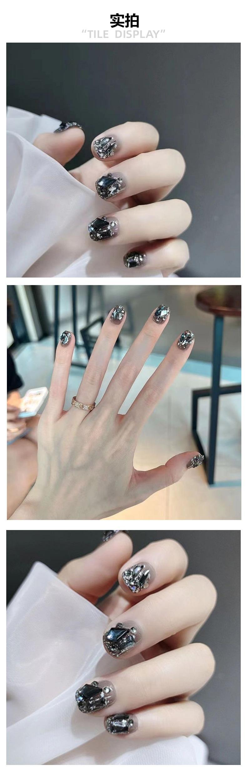 Manicura de principios de otoño, uña postiza, parche de manicura, acabado negro, destello cálido, elfo ligero, lujo, corto, estudiante