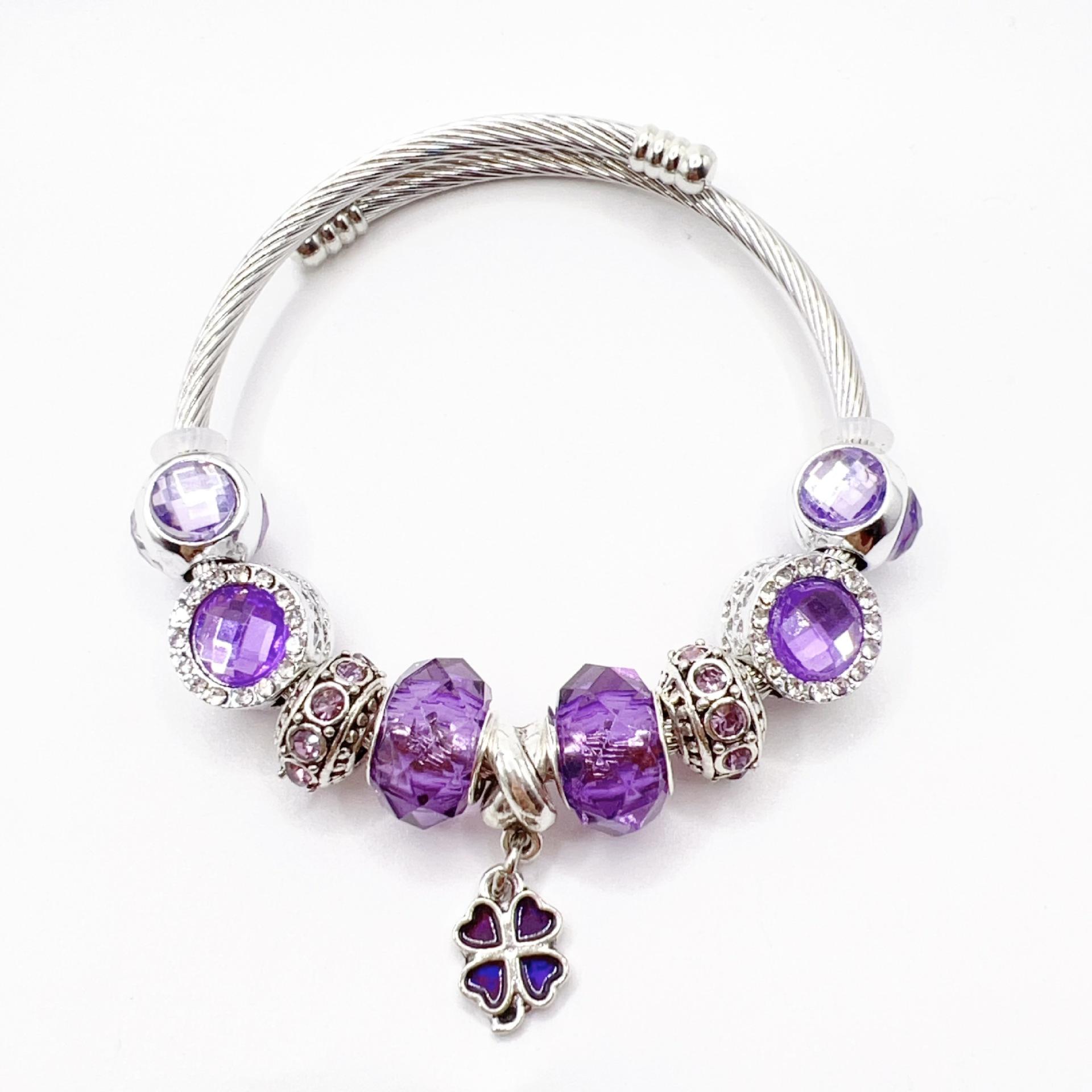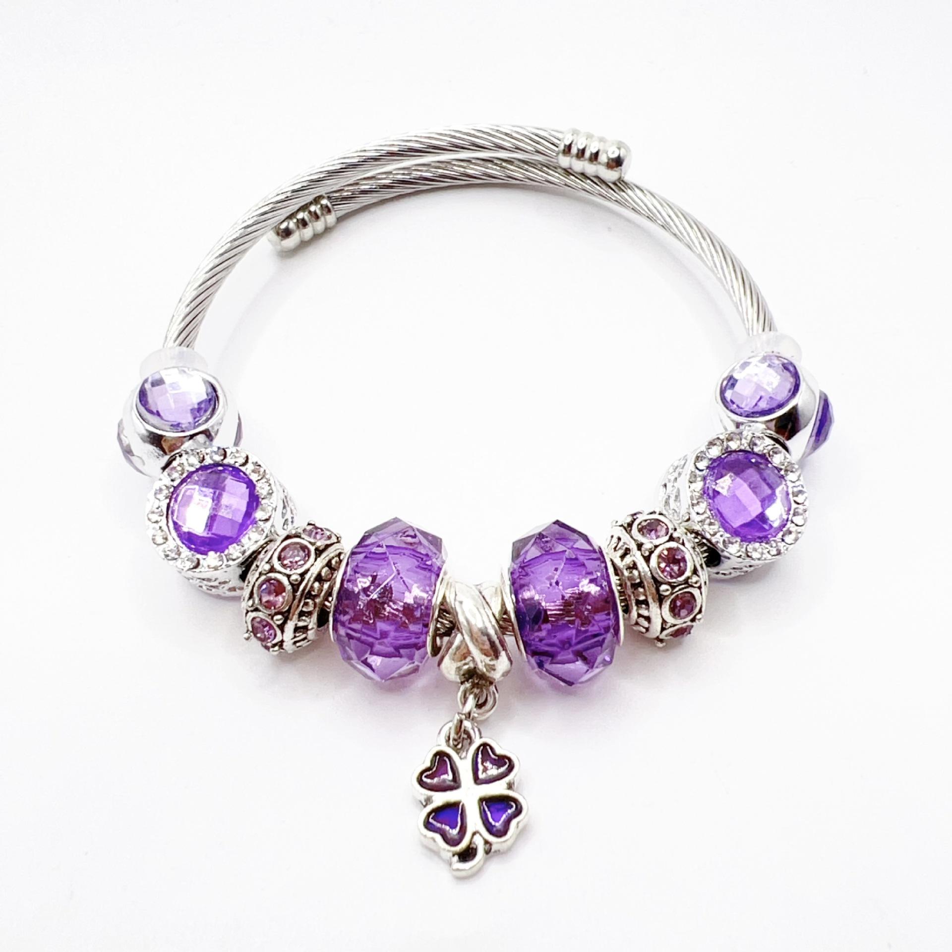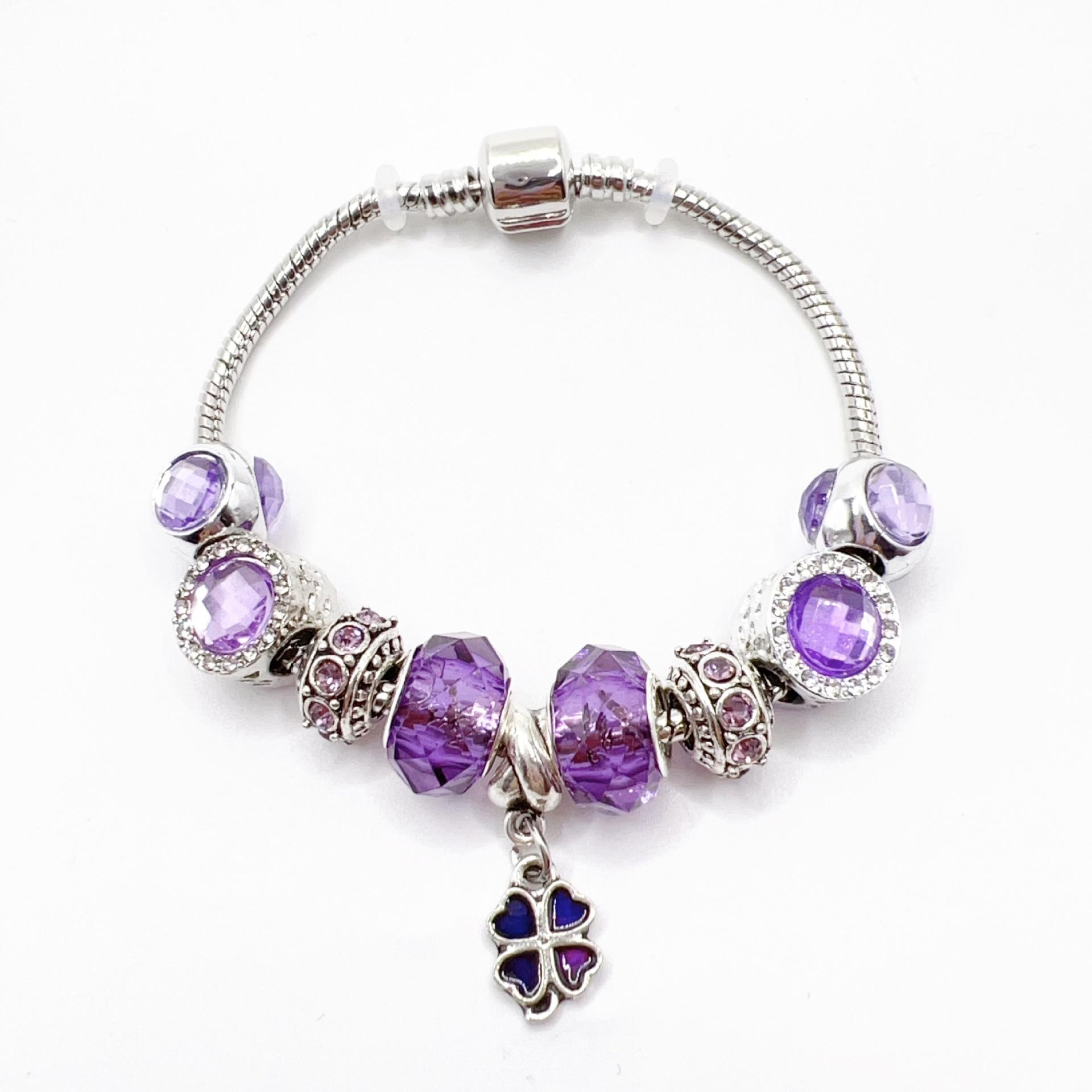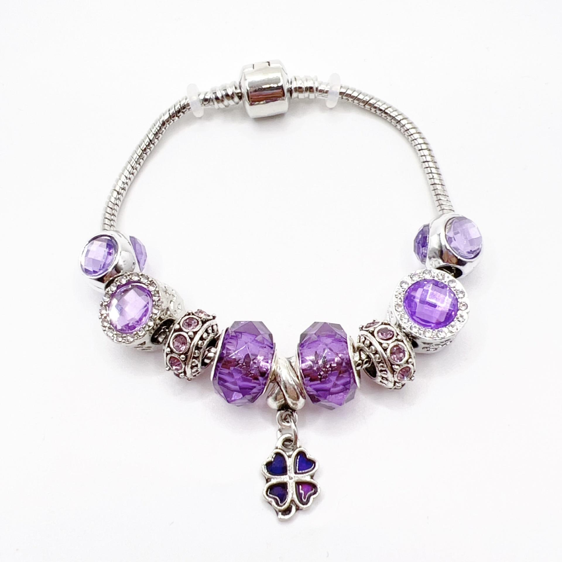 Venta caliente transfronteriza, pequeña pulsera Panjia de trébol de cuatro hojas morado fresco, bricolaje, cuentas de agujeros grandes, fabricantes de pulseras de joyería al por mayor