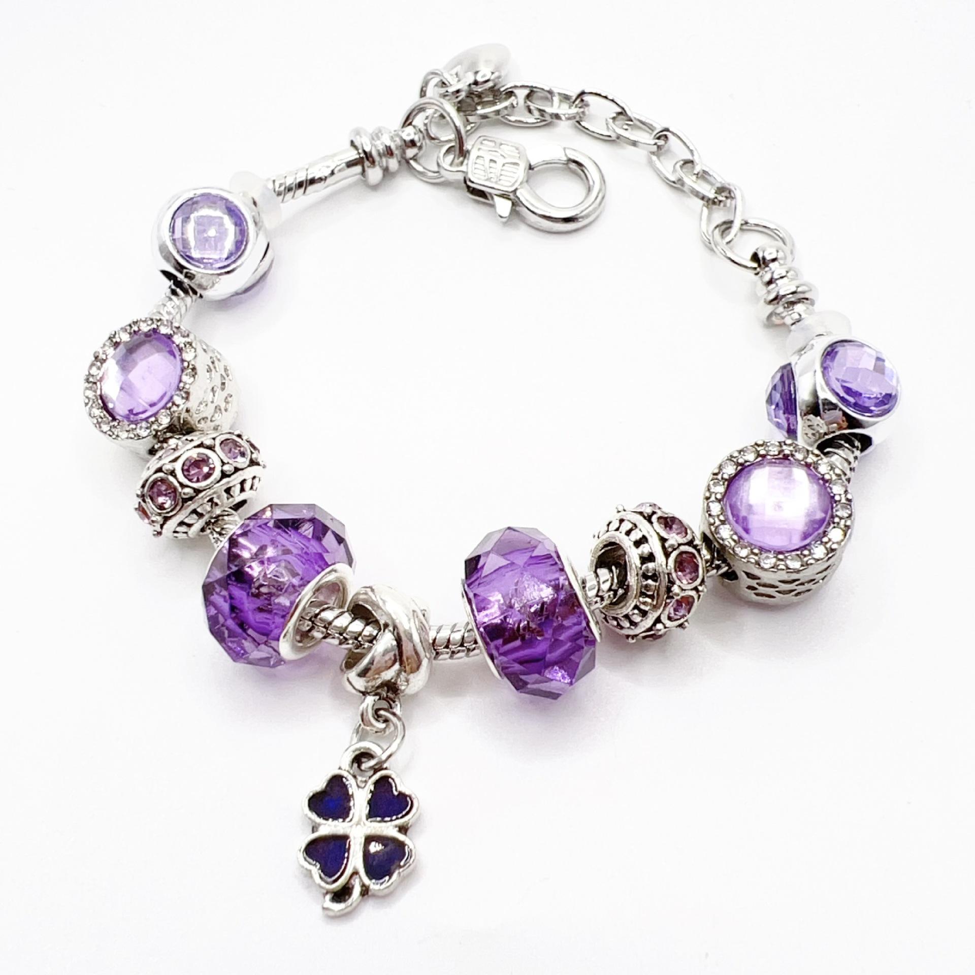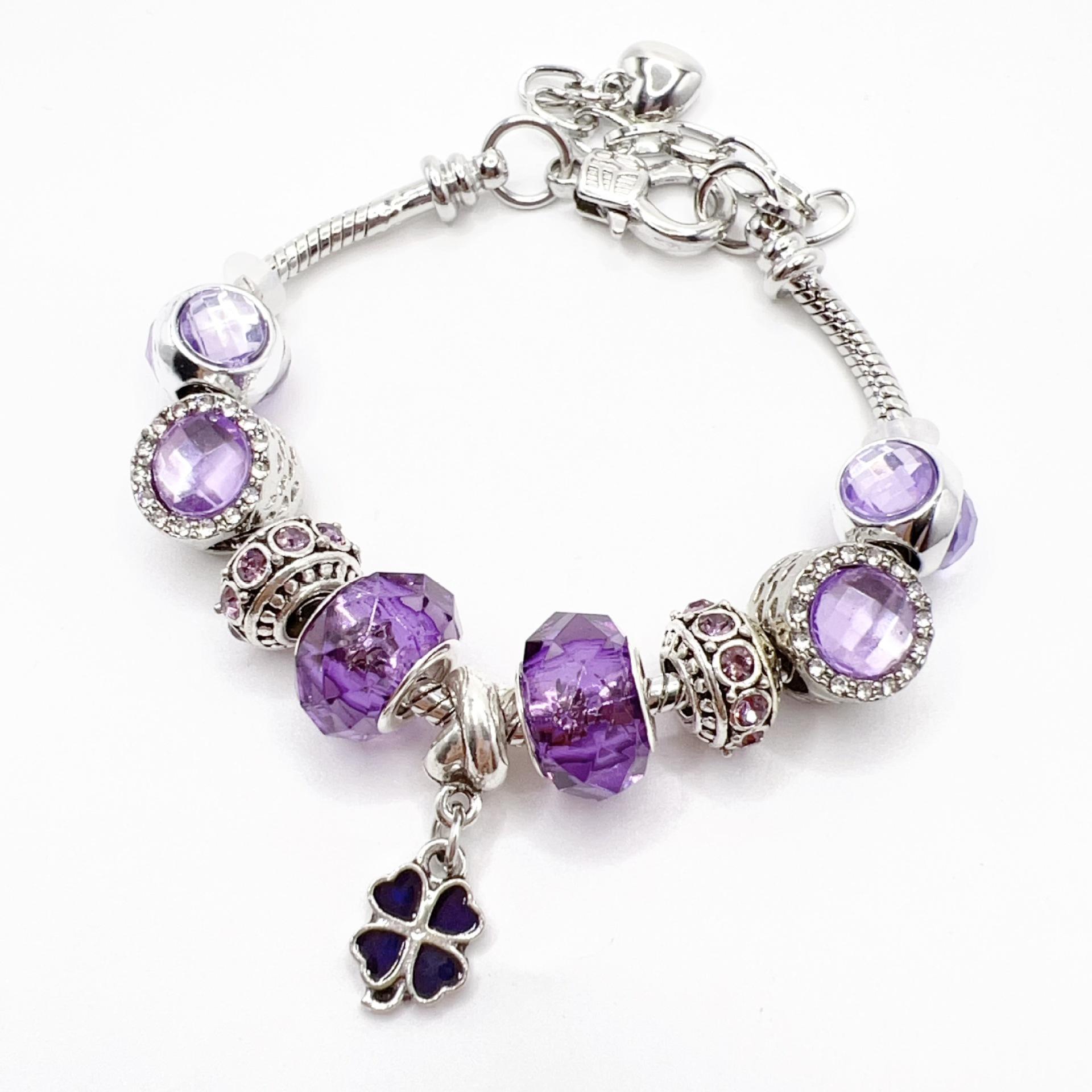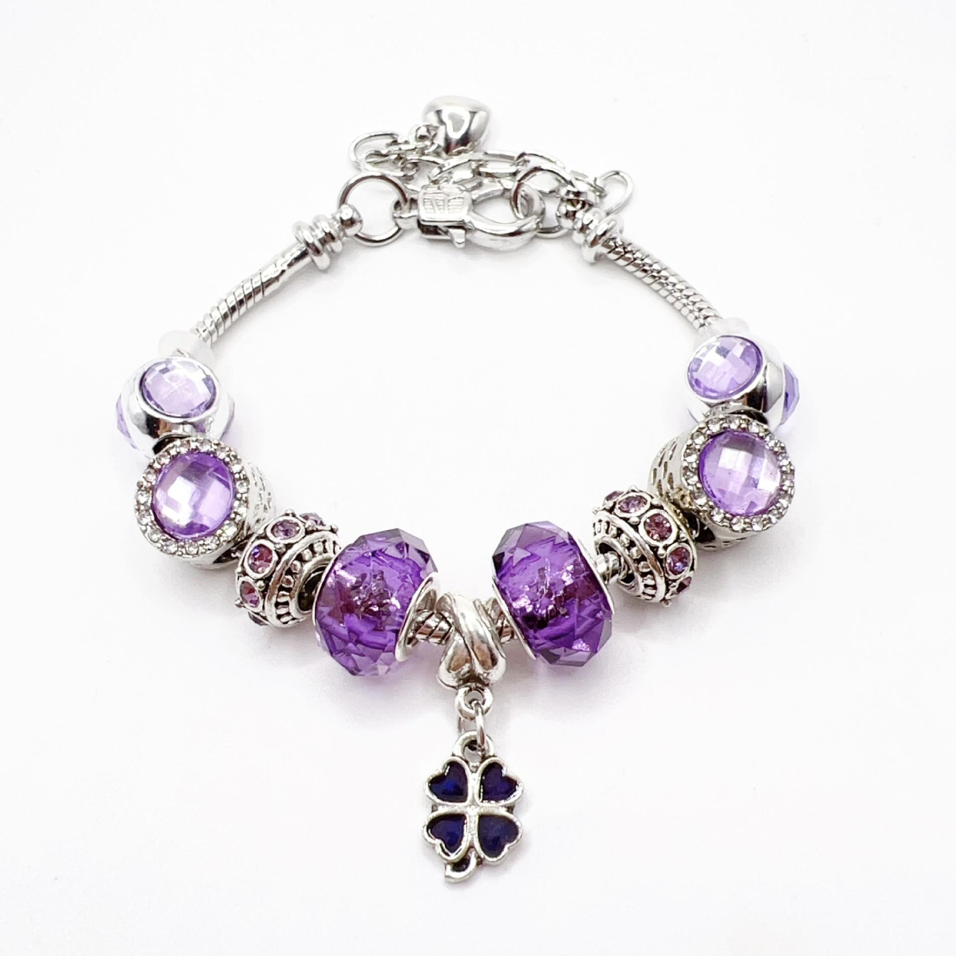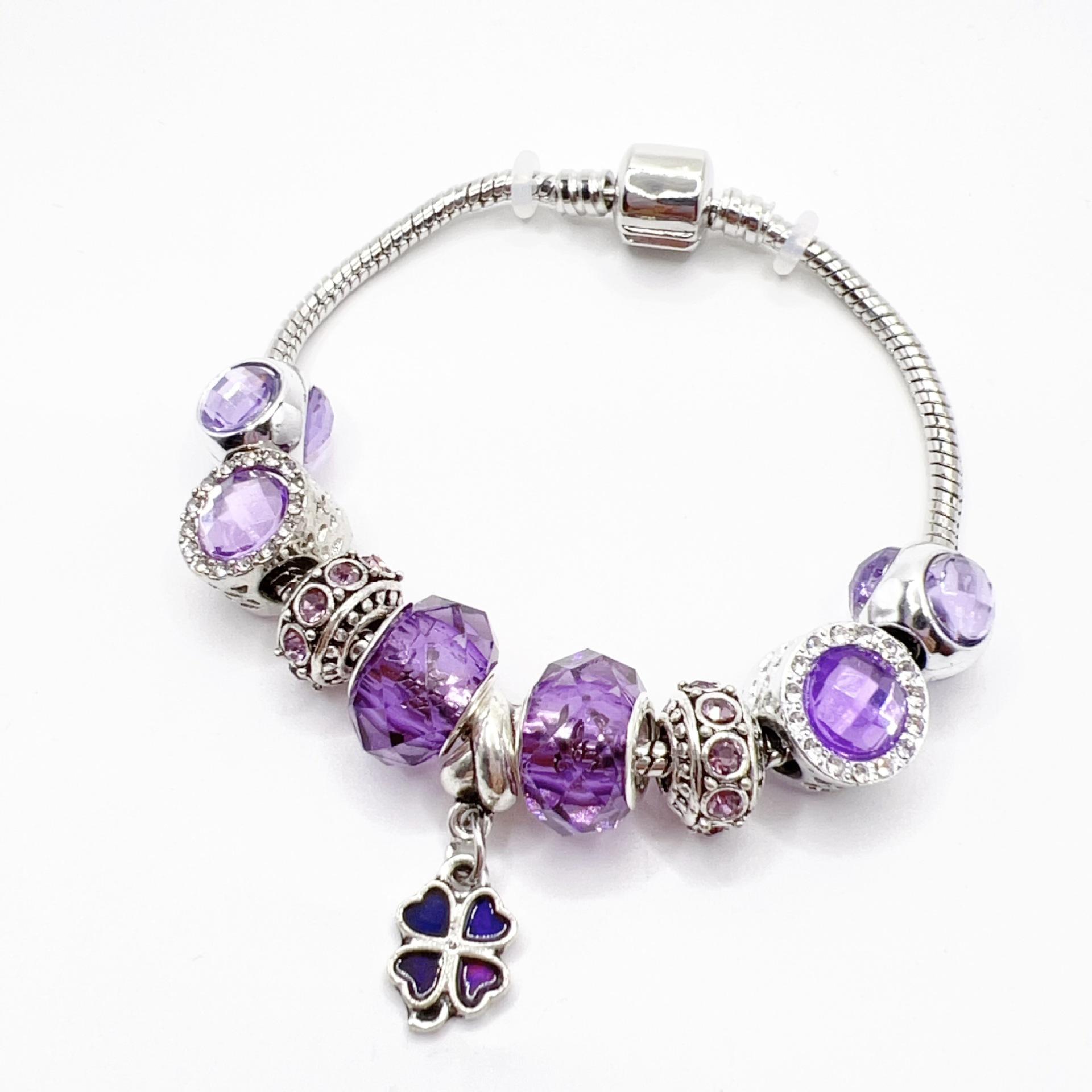 Venta caliente transfronteriza, pequeña pulsera Panjia de trébol de cuatro hojas morado fresco, bricolaje, cuentas de agujeros grandes, fabricantes de pulseras de joyería al por mayor