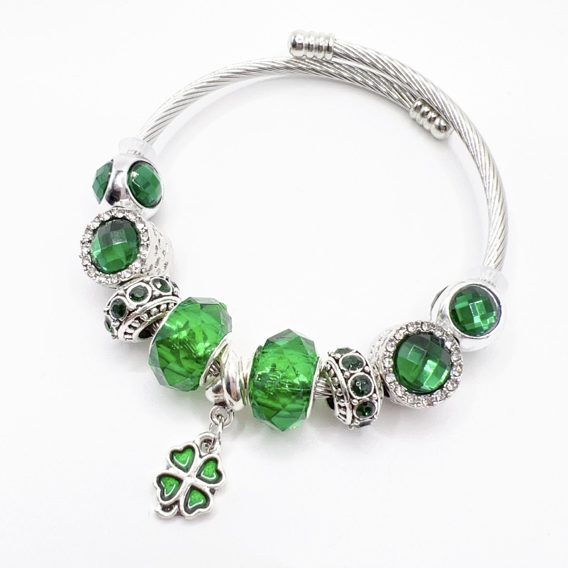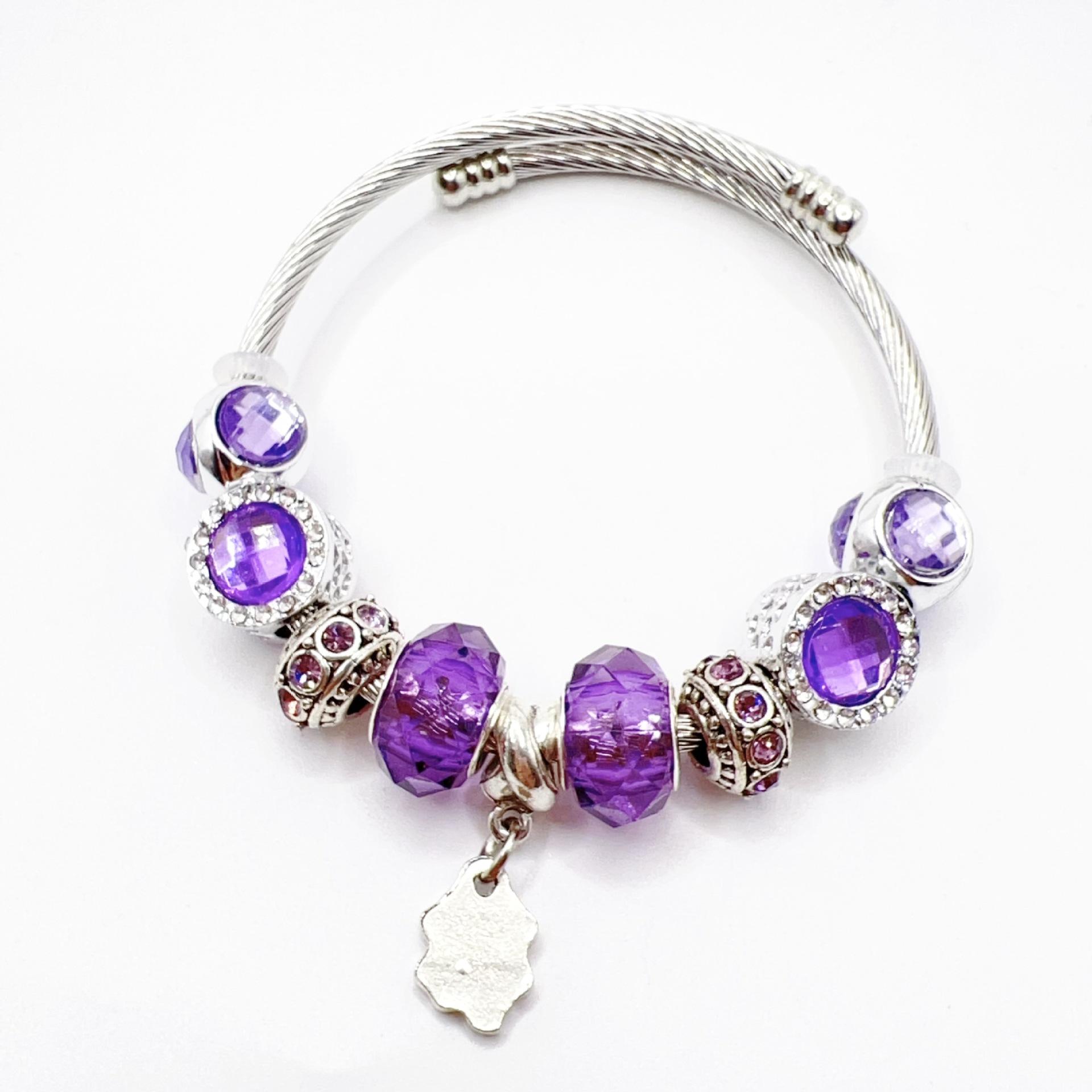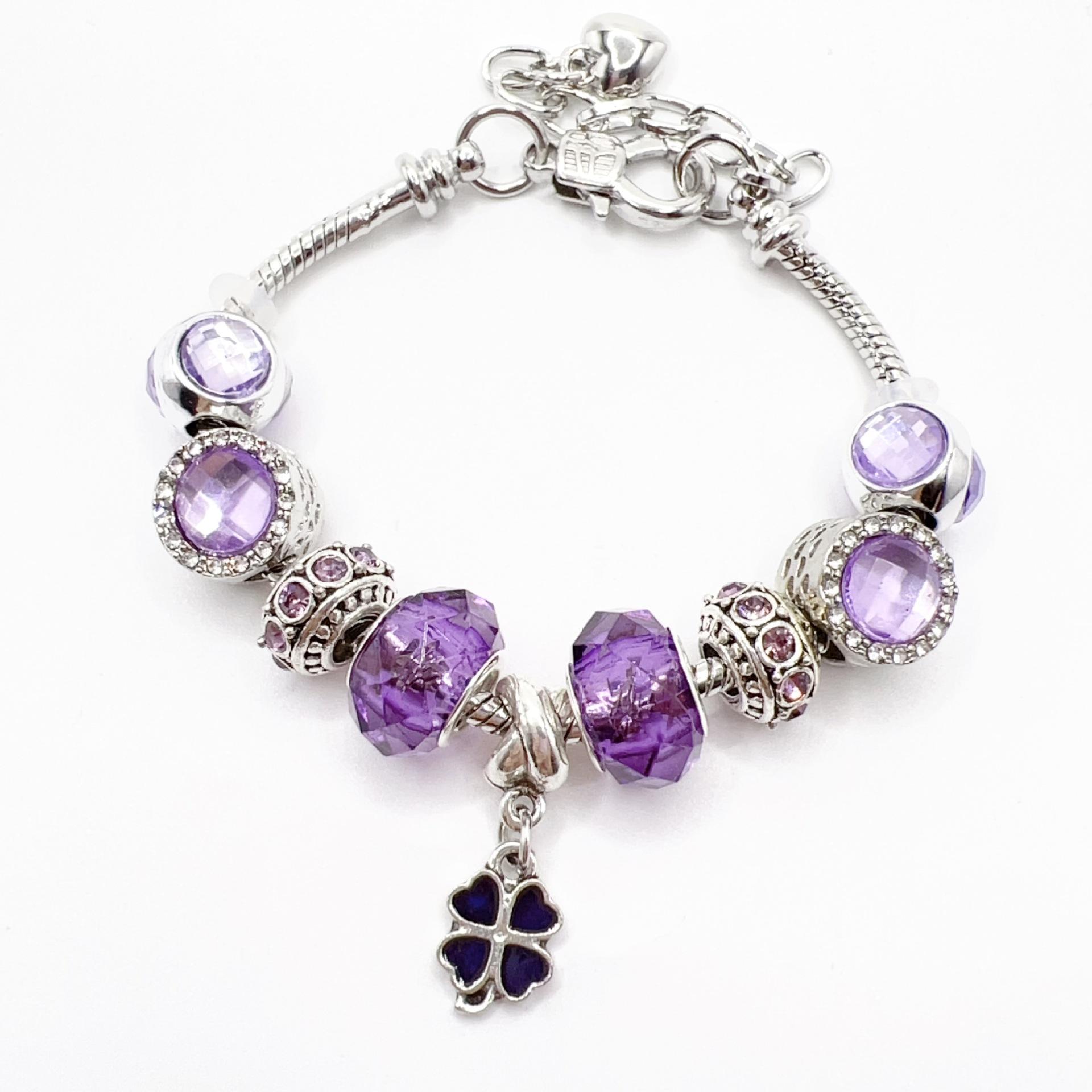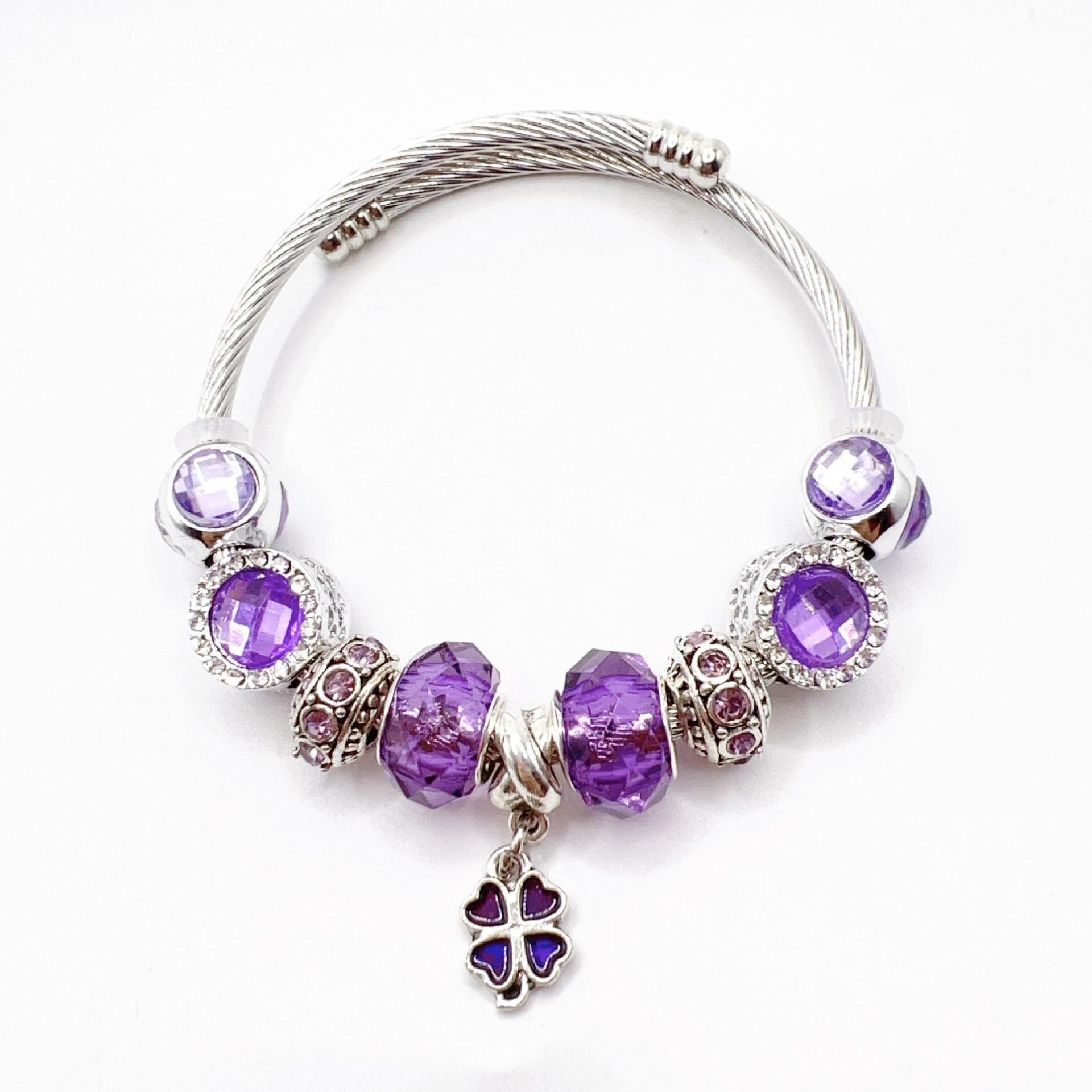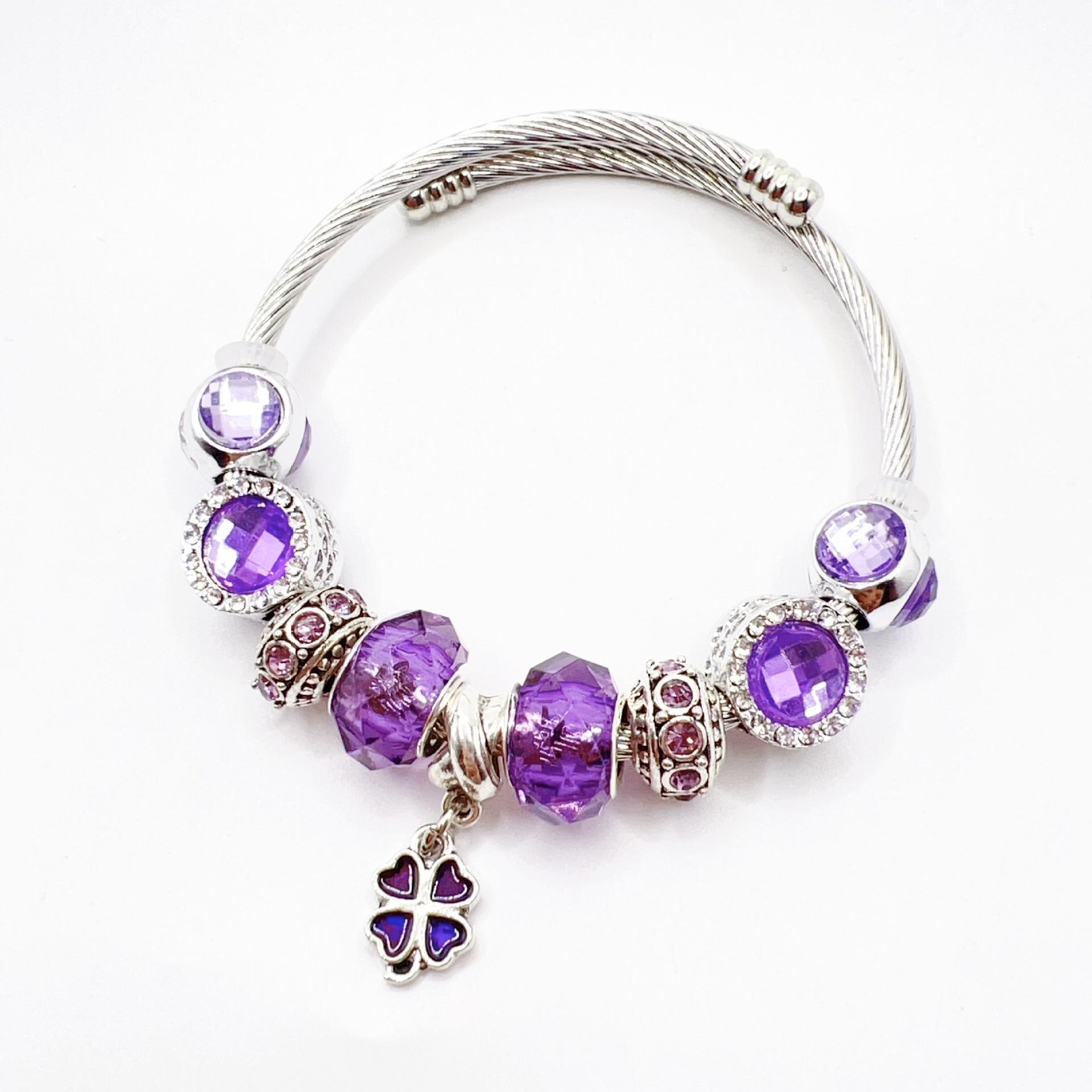 Venta caliente transfronteriza, pequeña pulsera Panjia de trébol de cuatro hojas morado fresco, bricolaje, cuentas de agujeros grandes, fabricantes de pulseras de joyería al por mayor