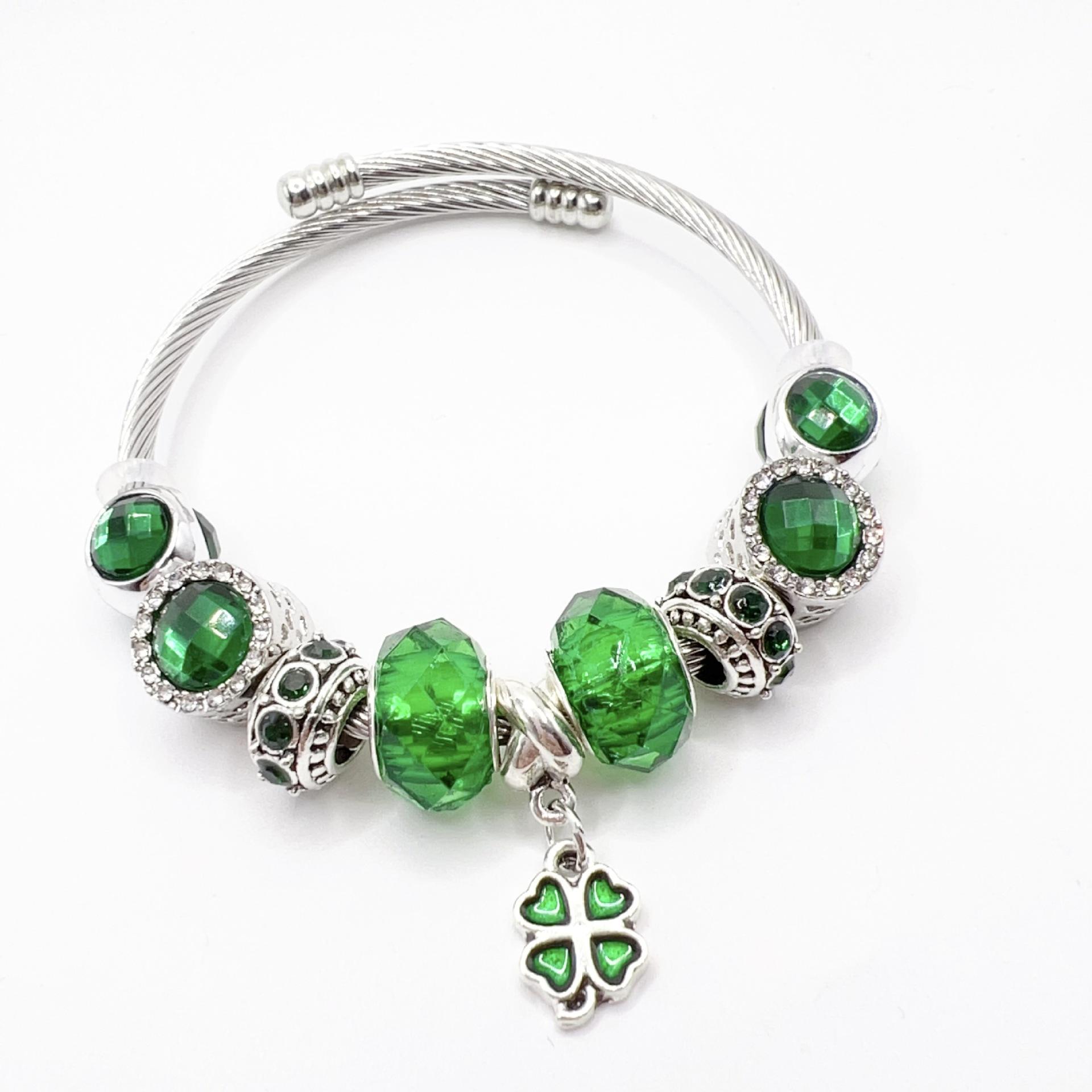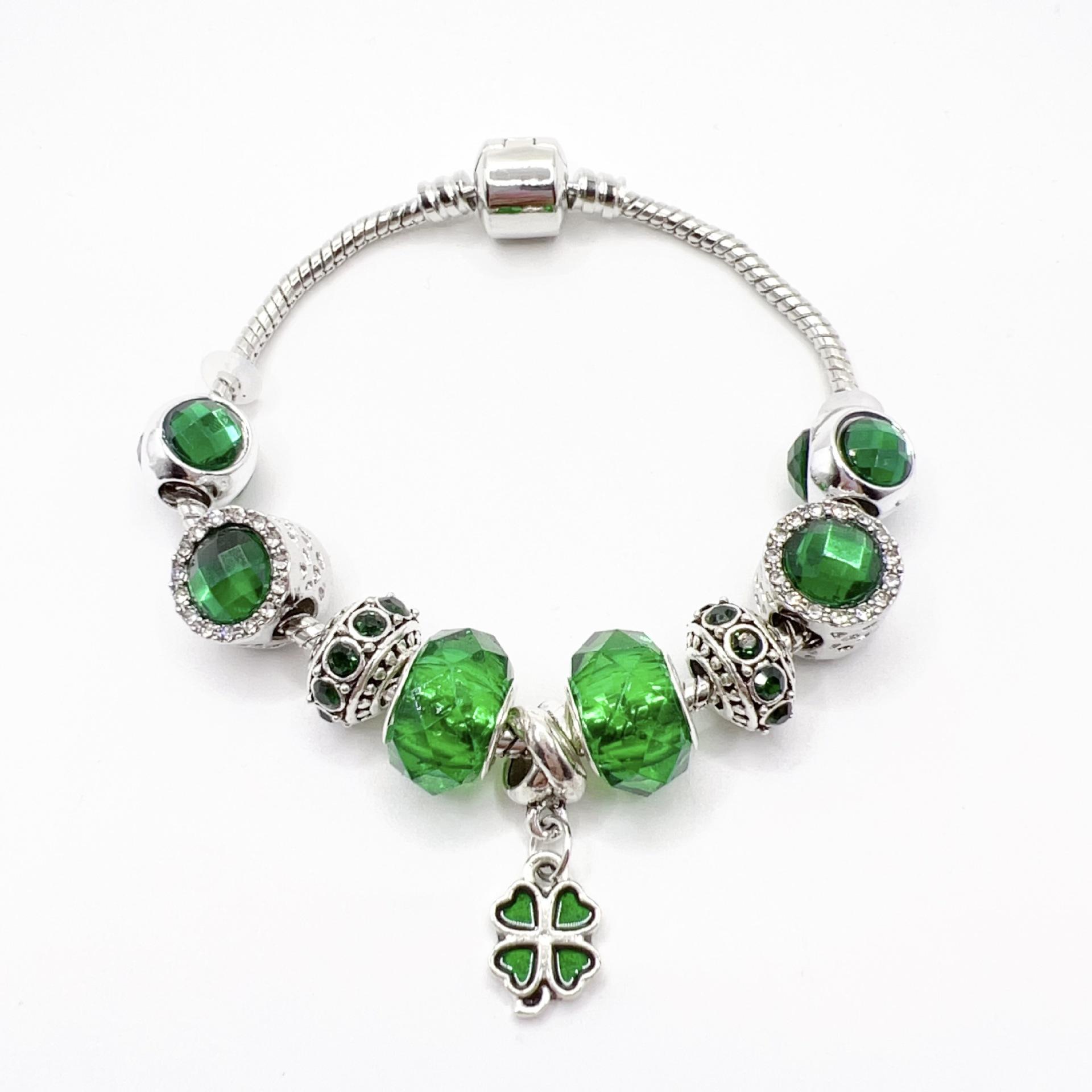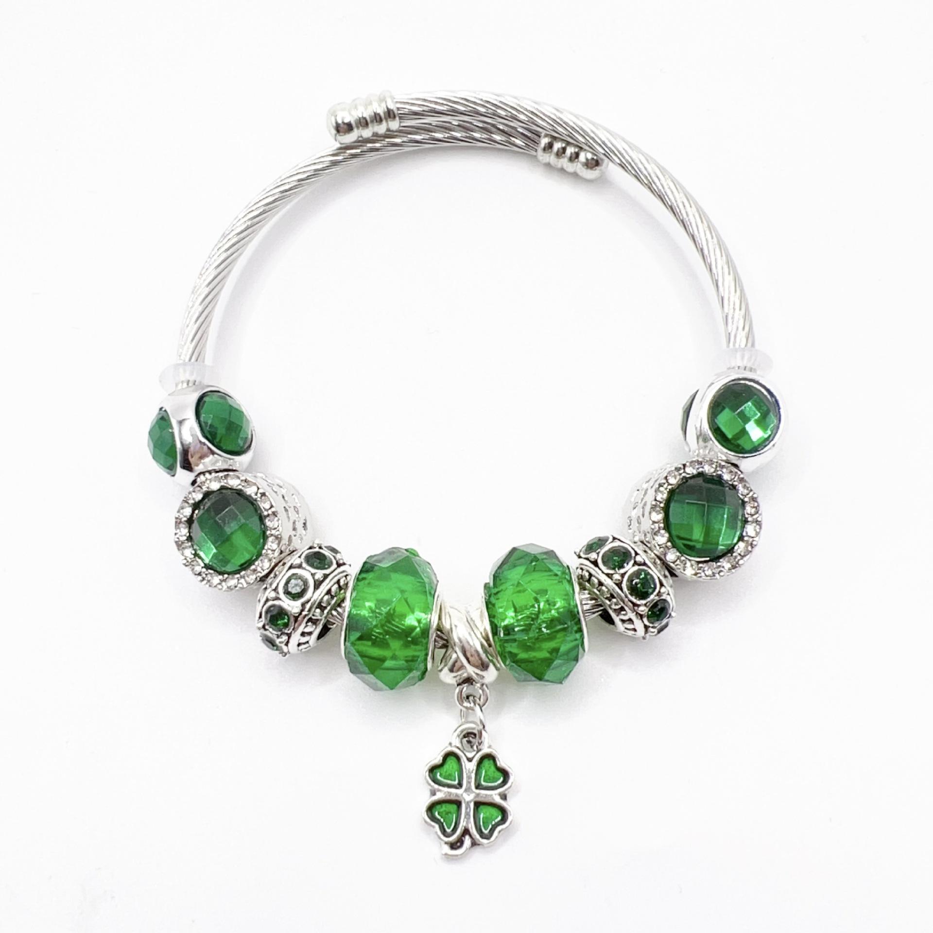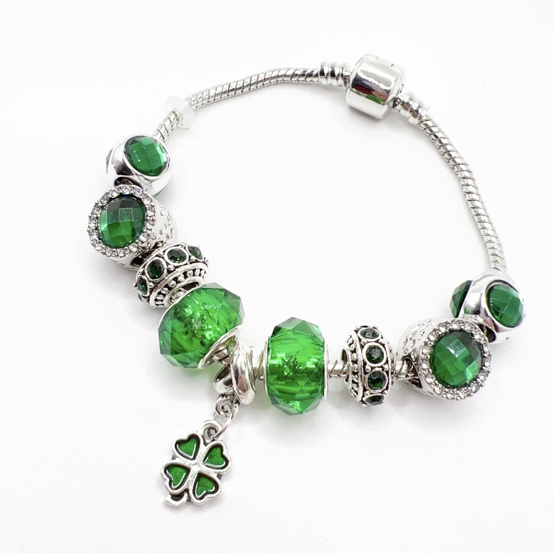 Venta caliente transfronteriza, pequeña pulsera Panjia de trébol de cuatro hojas morado fresco, bricolaje, cuentas de agujeros grandes, fabricantes de pulseras de joyería al por mayor