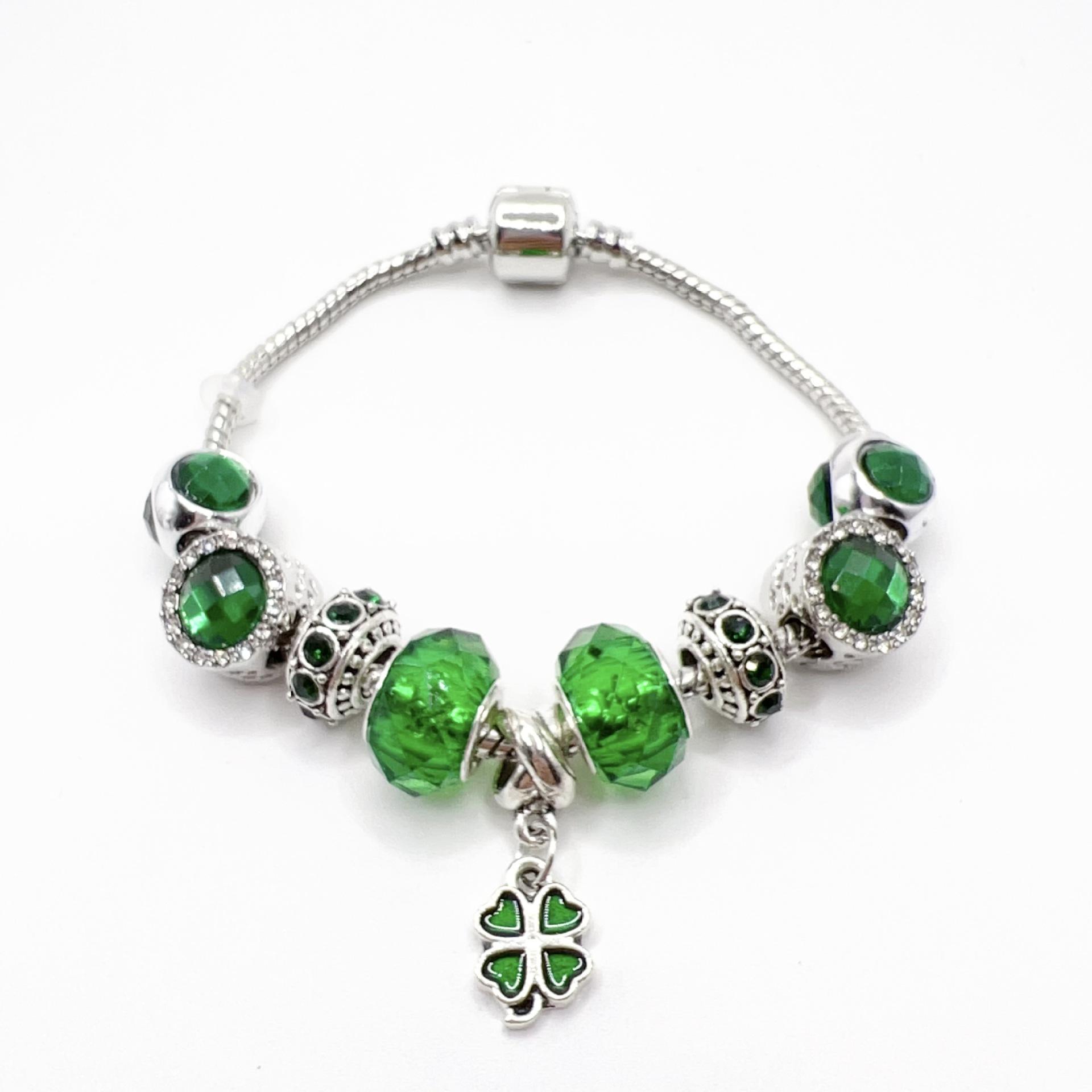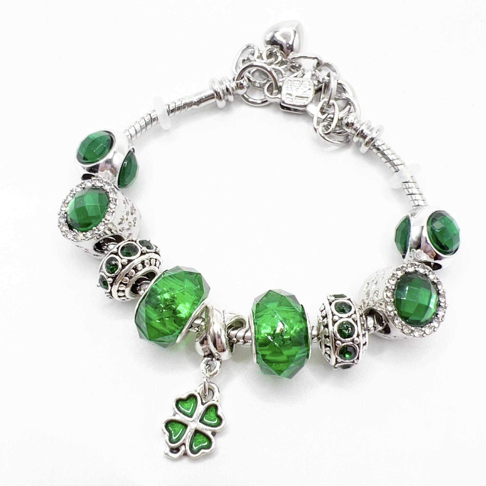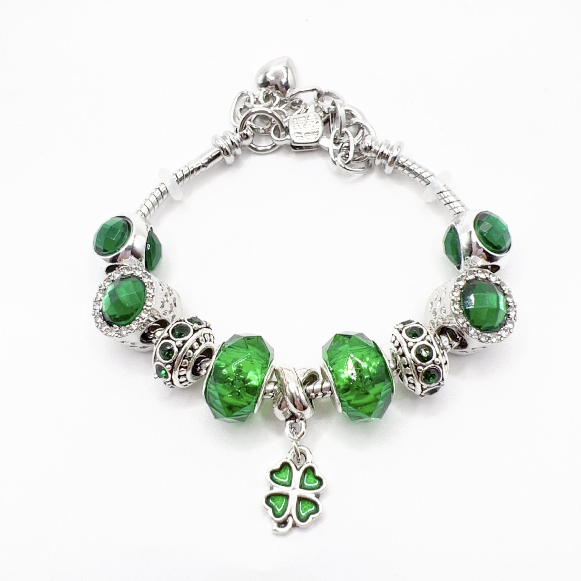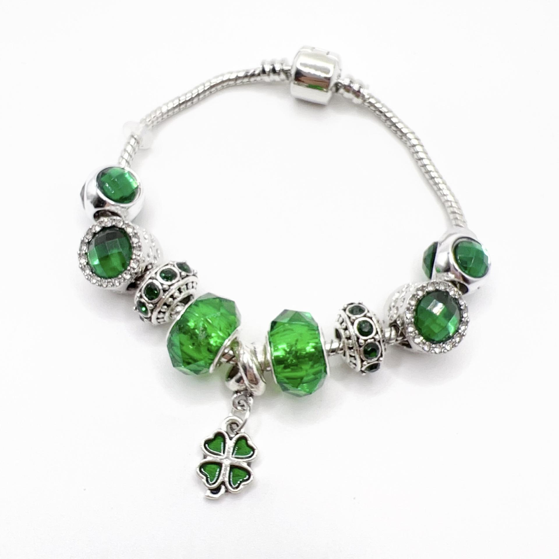 Venta caliente transfronteriza, pequeña pulsera Panjia de trébol de cuatro hojas morado fresco, bricolaje, cuentas de agujeros grandes, fabricantes de pulseras de joyería al por mayor
