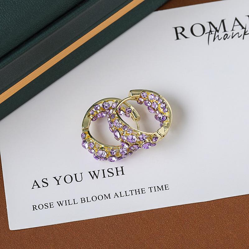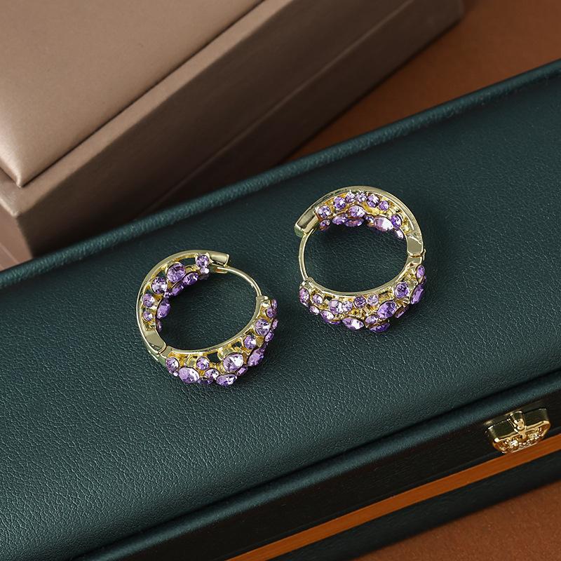 Pendientes de hada púrpura con diamantes huecos, elegantes y de alta gama, de estilo francés, retro, de lujo, para mujer.