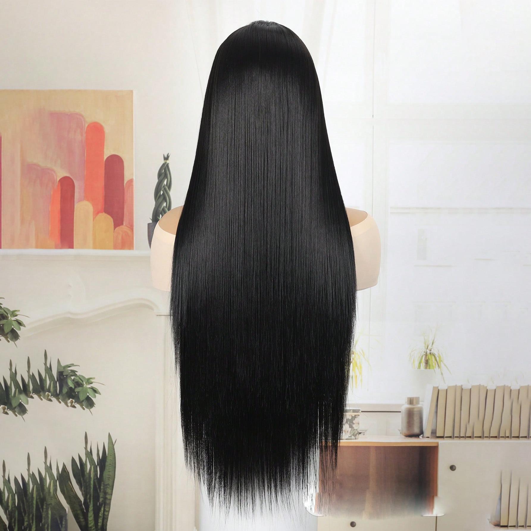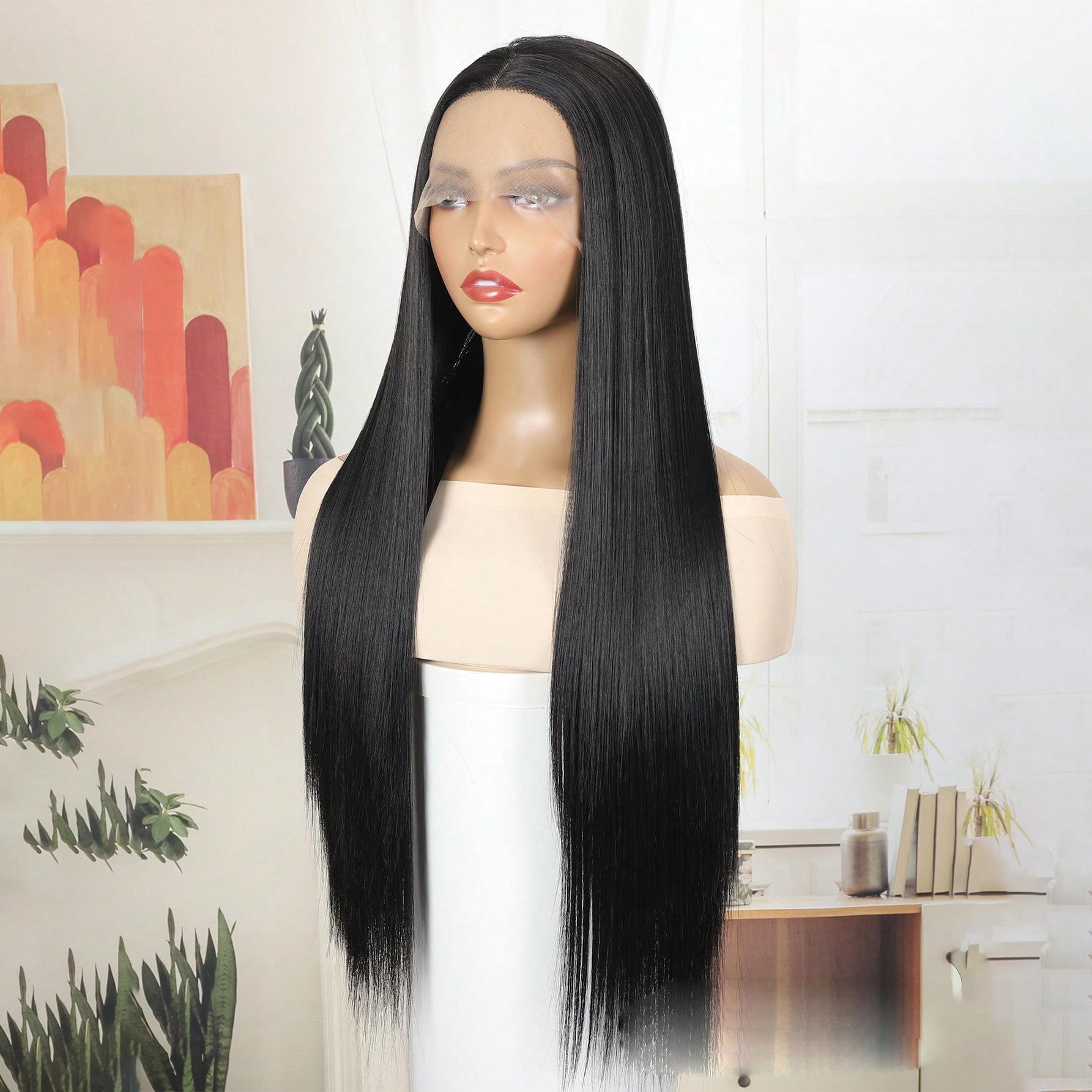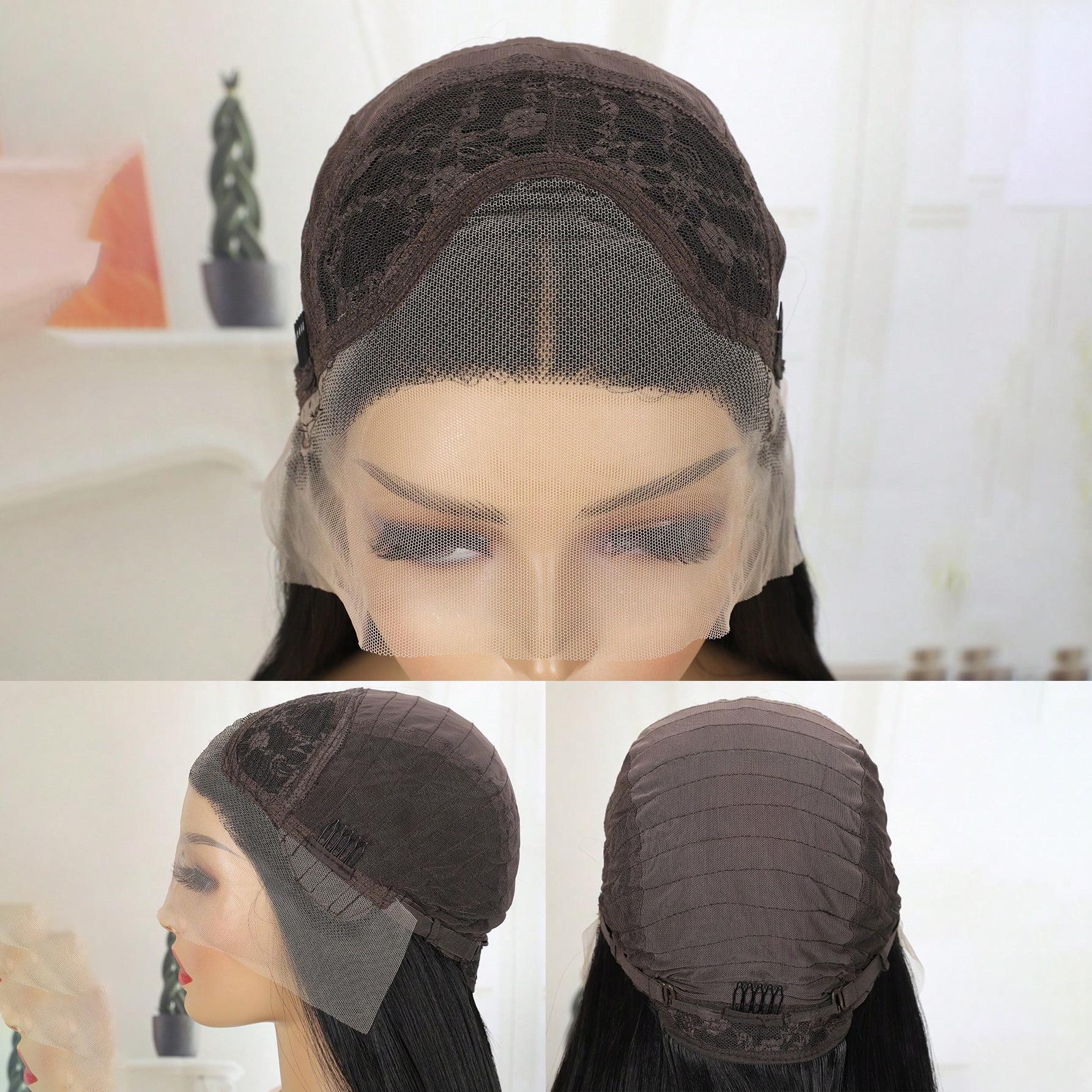 Peluca de encaje frontal transfronterizo, estilo europeo y americano, peluca de cabello largo y liso, pelucas femeninas de cabello de seda de alta temperatura, peluca de encaje frontal, cubierta para la cabeza