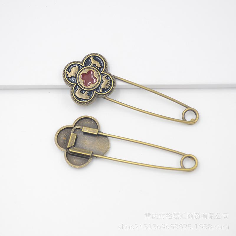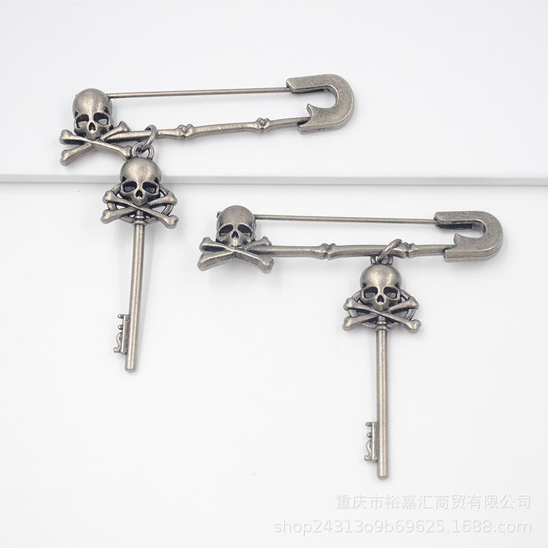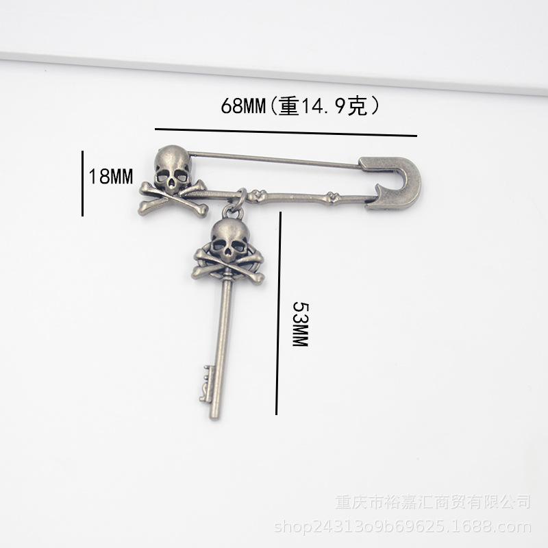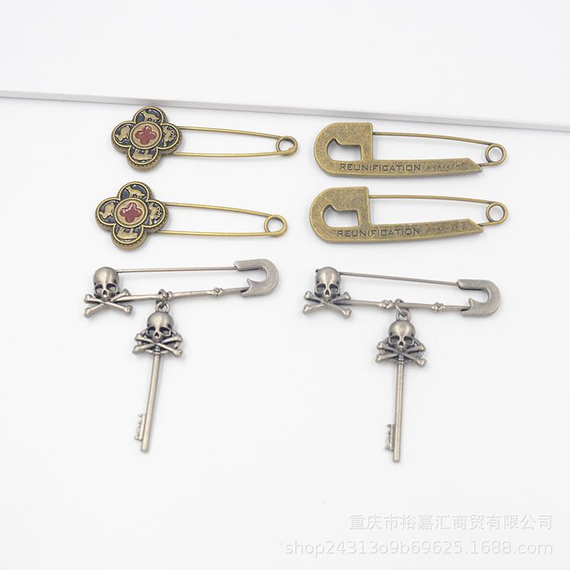 Nuevo Broche de Trébol de Cuatro Hojas con Letra de Bronce Pin de Llave de Calavera Broche Elegante Versátil Accesorios de Ropa