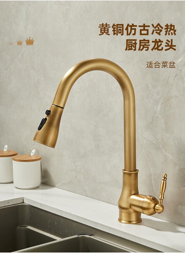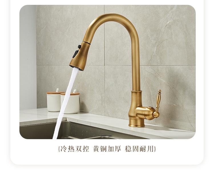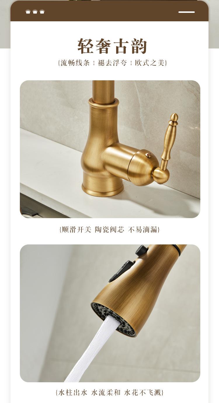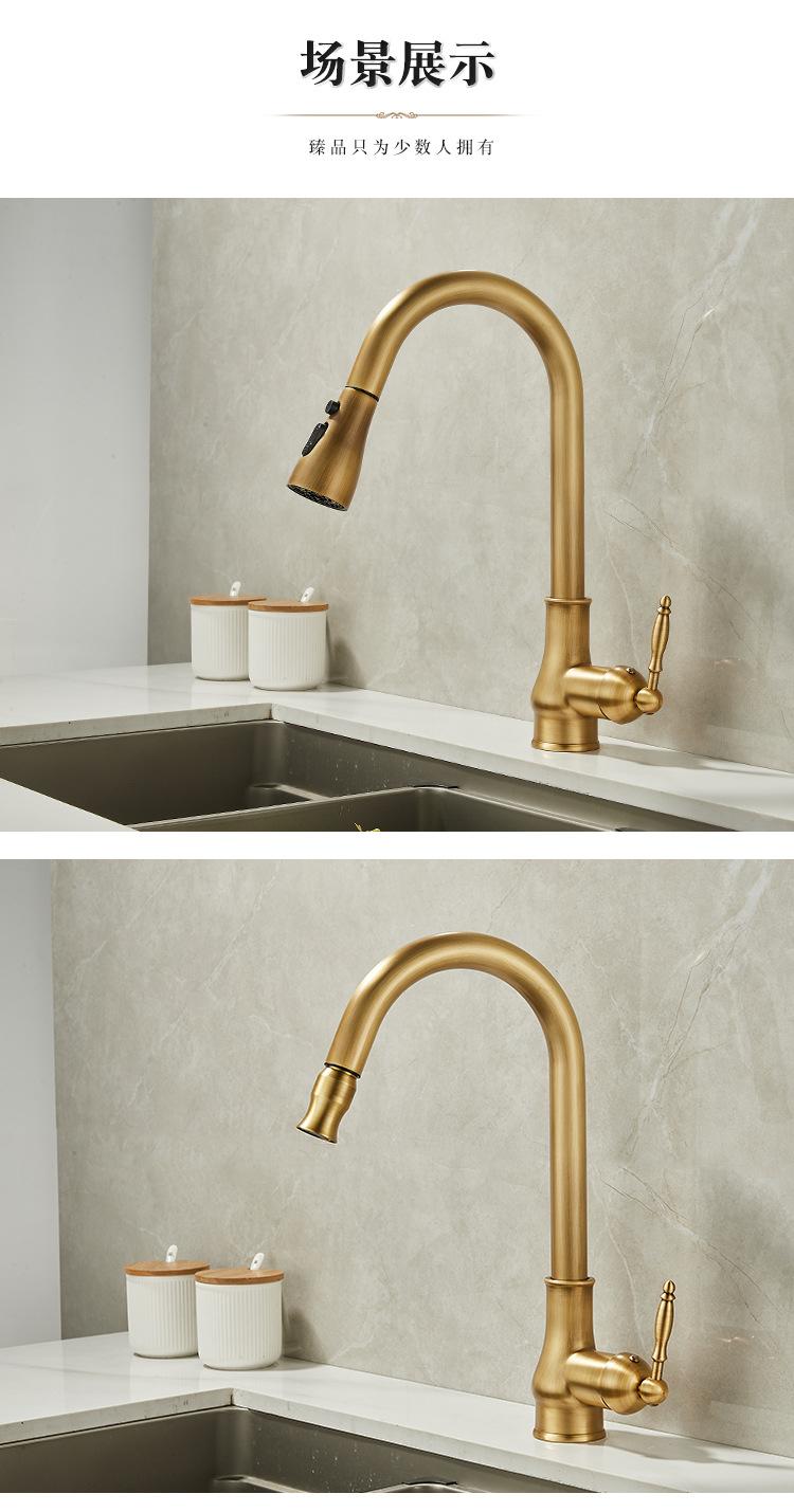 Grifo de Cocina Extraíble de Lujo Ligero Retro Cobre Francés Transfronterizo Fregadero Doméstico Lavabo para Verduras Grifo Caliente y Frío a Prueba de Salpicaduras