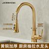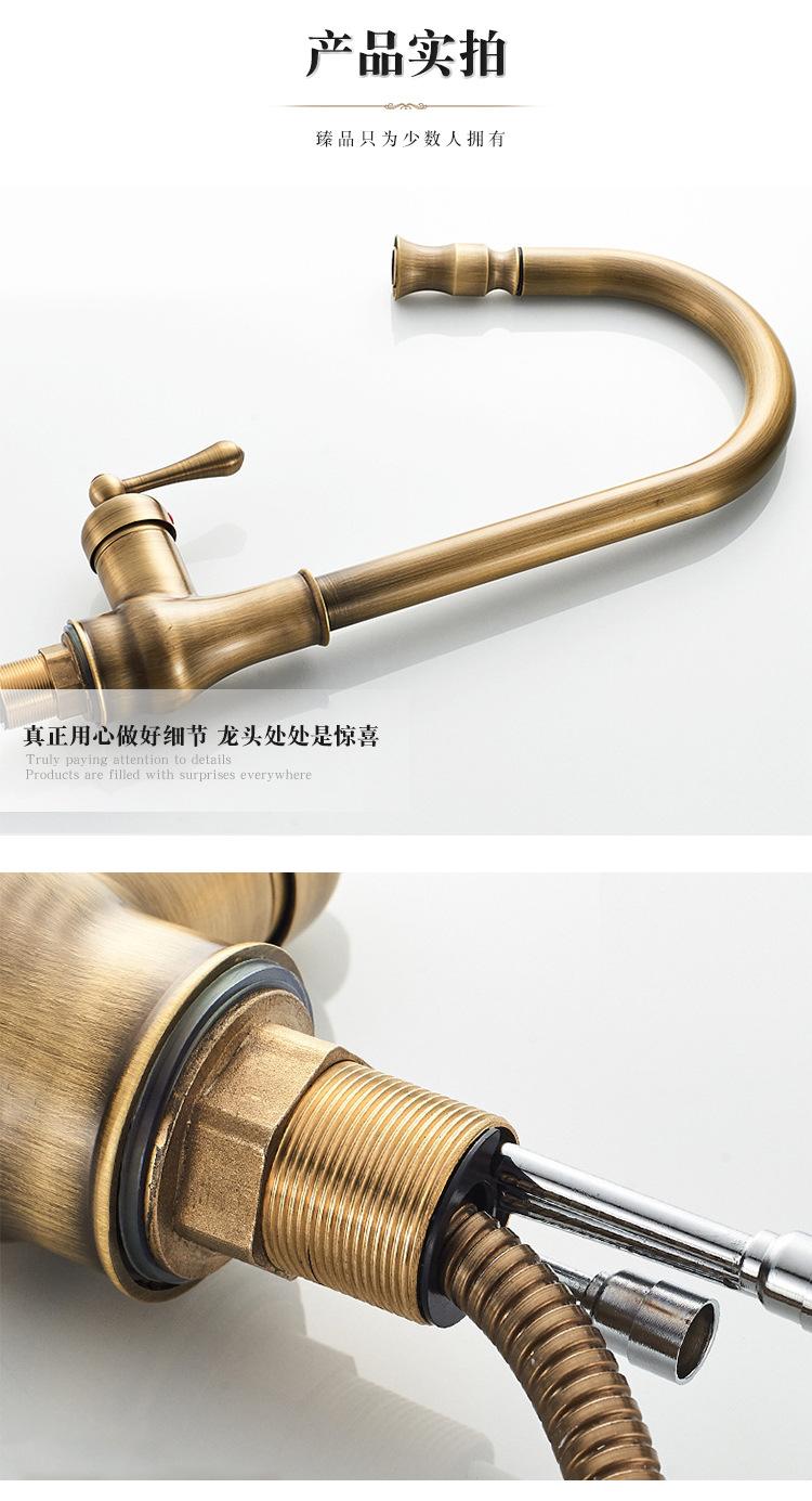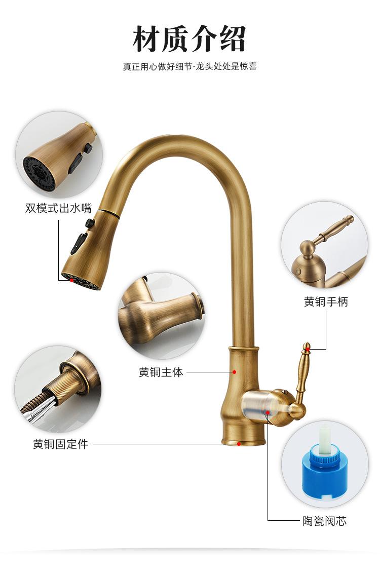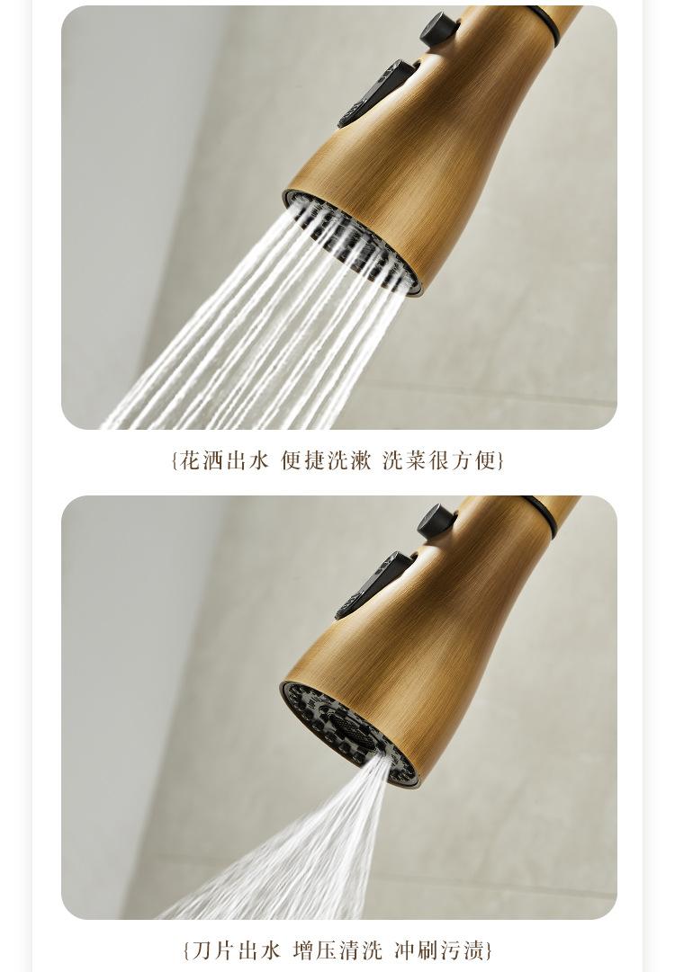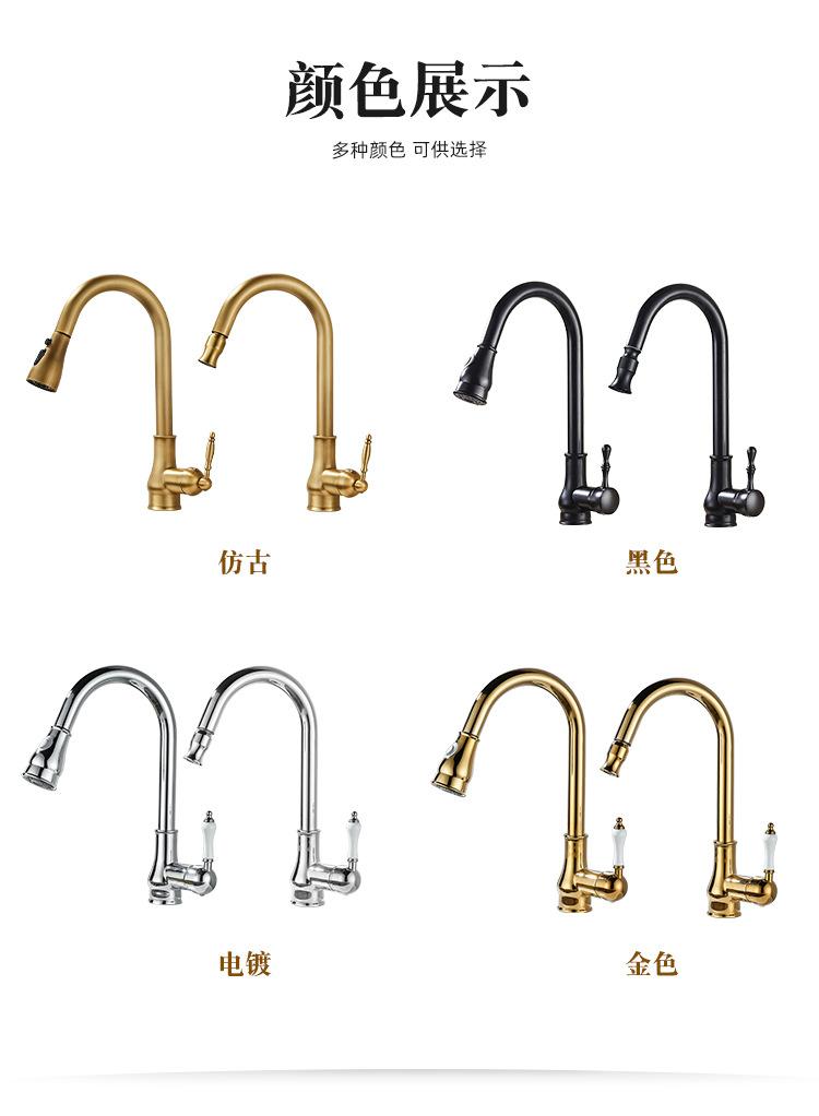 Grifo de Cocina Extraíble de Lujo Ligero Retro Cobre Francés Transfronterizo Fregadero Doméstico Lavabo para Verduras Grifo Caliente y Frío a Prueba de Salpicaduras