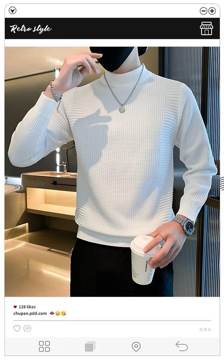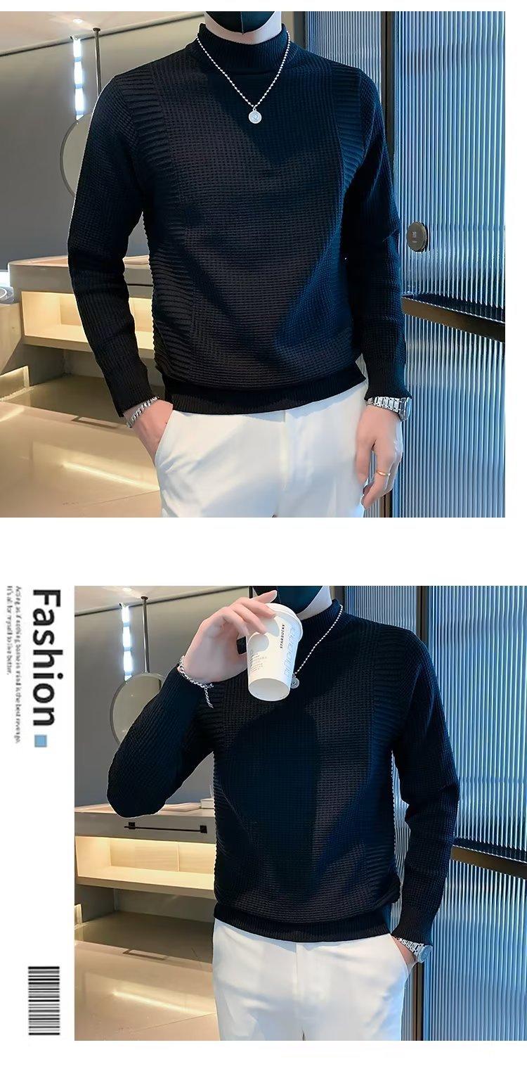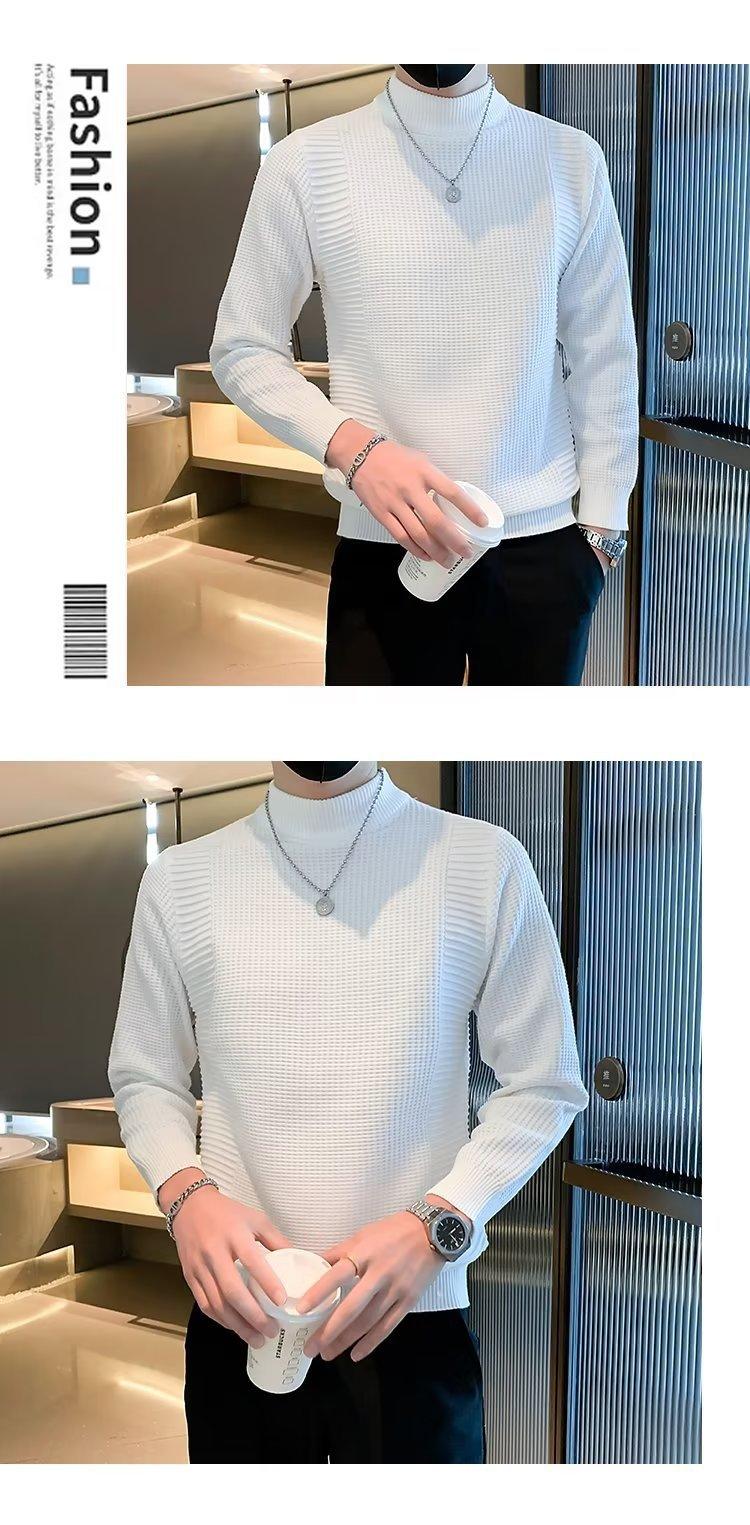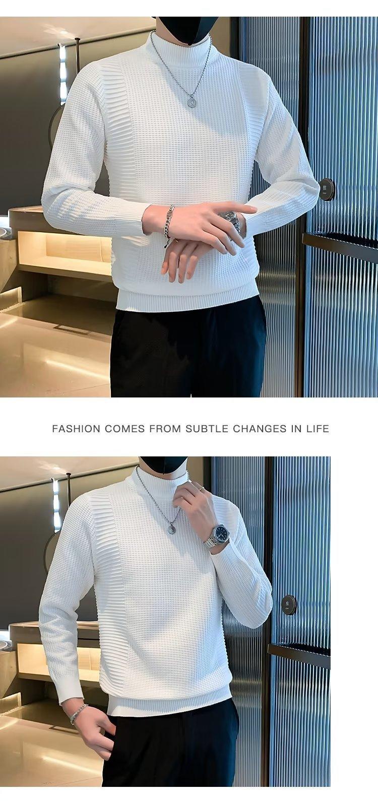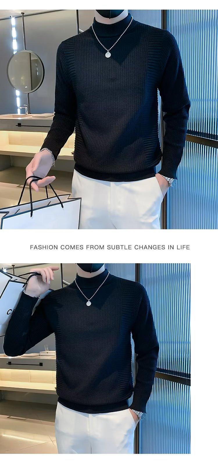 Suéter de medio cuello alto para hombre primavera y otoño color sólido casual suéter de fondo japonés moderno simple guapo suéter pulóver